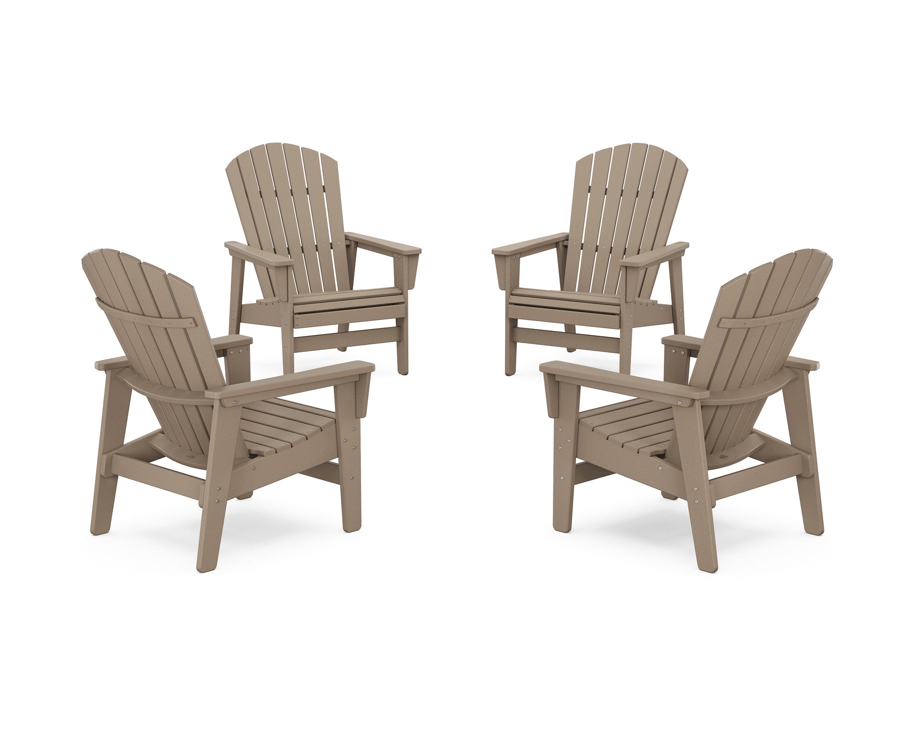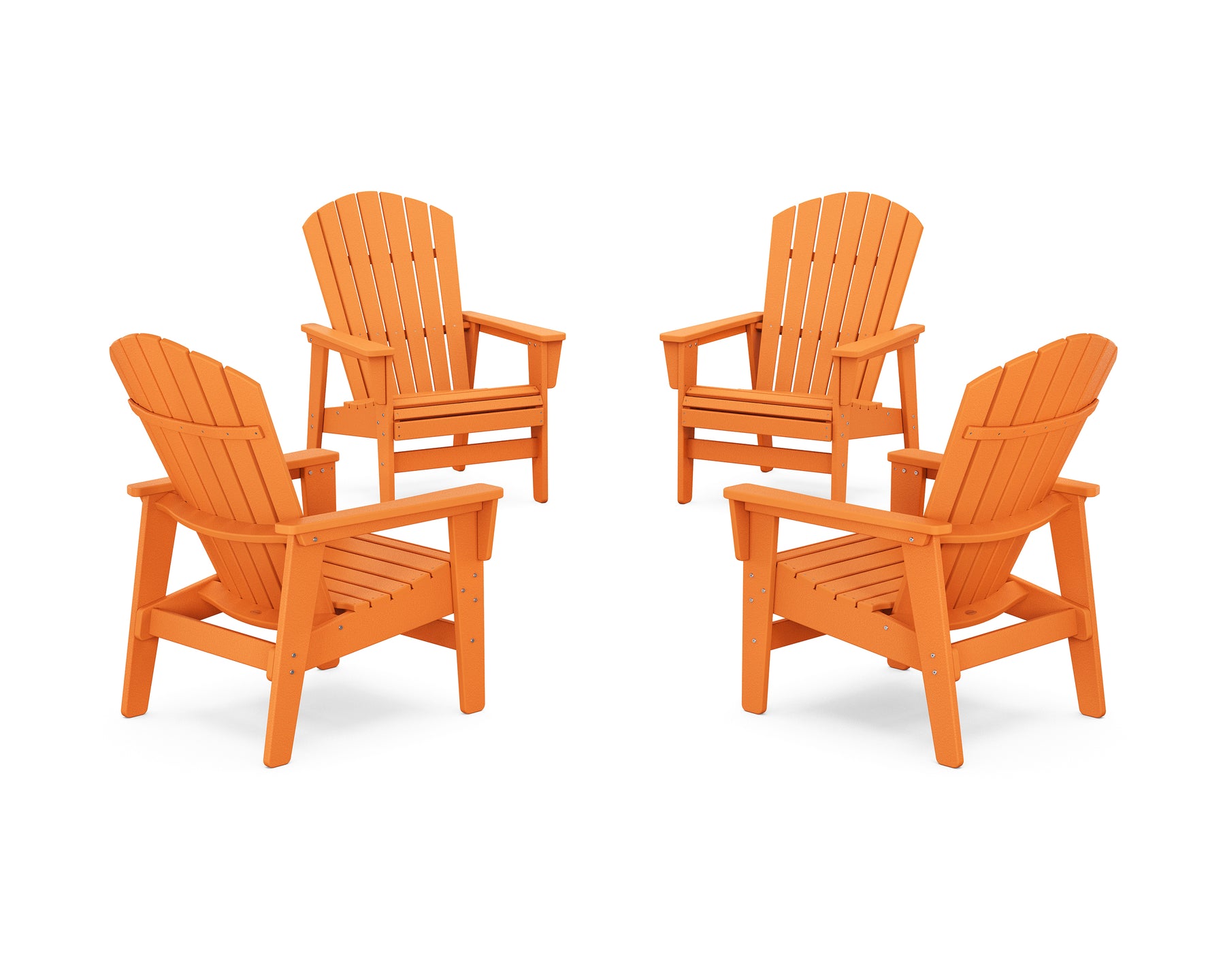 Extra comfort, support, style: Our 4-Piece Nautical Grand Upright Adirondack Chair Conversation Set is all that and more. Made to sit anywhere and fit anyone, each chair has a higher, wider seat and supreme sturdiness. The backrests are designed at a slight lean, ideal for getting up to grab a speaker or another drink. Plus, they hold double the standard weight capacity for peace of mind.