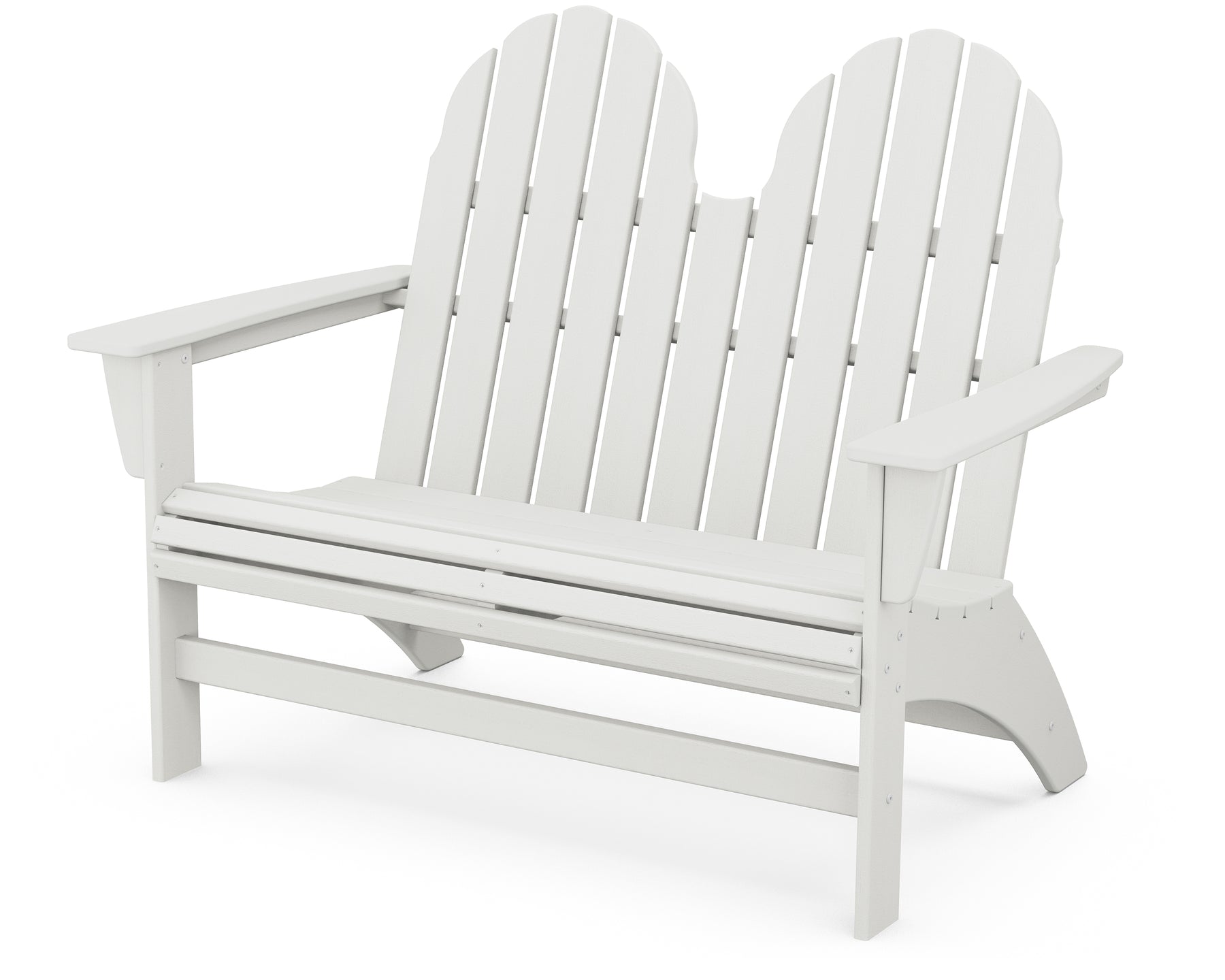 The Vineyard Adirondack Bench seats two and features a comfortably curved seat and waterfall front. This classic, coastal Adirondack back design and sleek leg profile will look great in any outdoor space. Pair this all-weather bench with any POLYWOOD side table to make a cozy set that will look great on your porch or back patio.