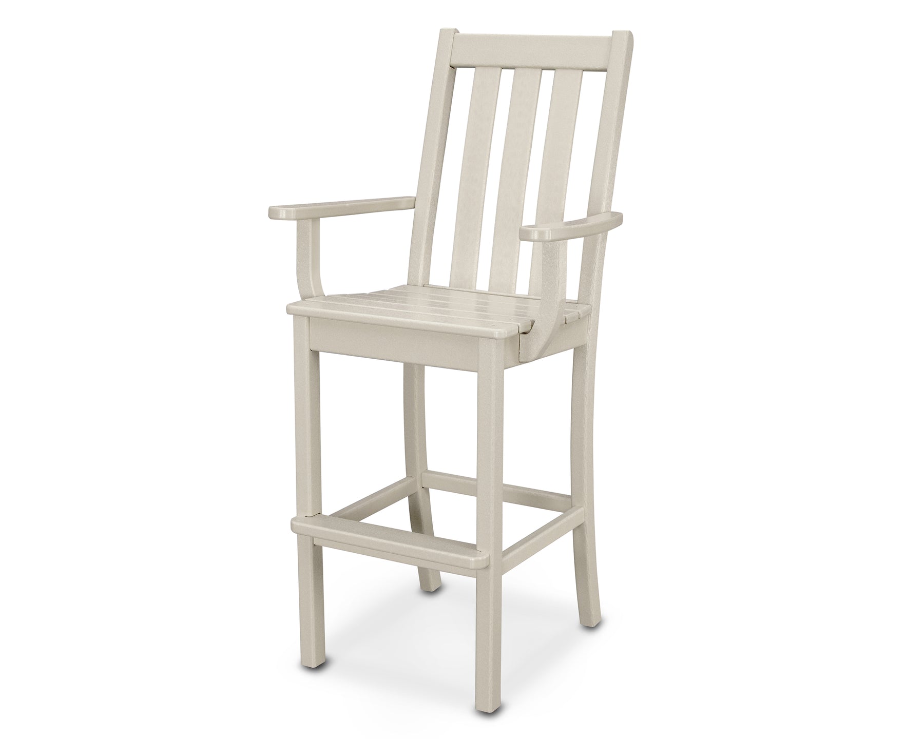 Our charming Vineyard Bar Arm Chair does alfresco entertaining right, serving up outdoor durability with a side of refined style. The contoured seat meets a gently reclined backrest, inviting you to sit back with a glass of Sauvignon Blanc as conversations go well past the last course.