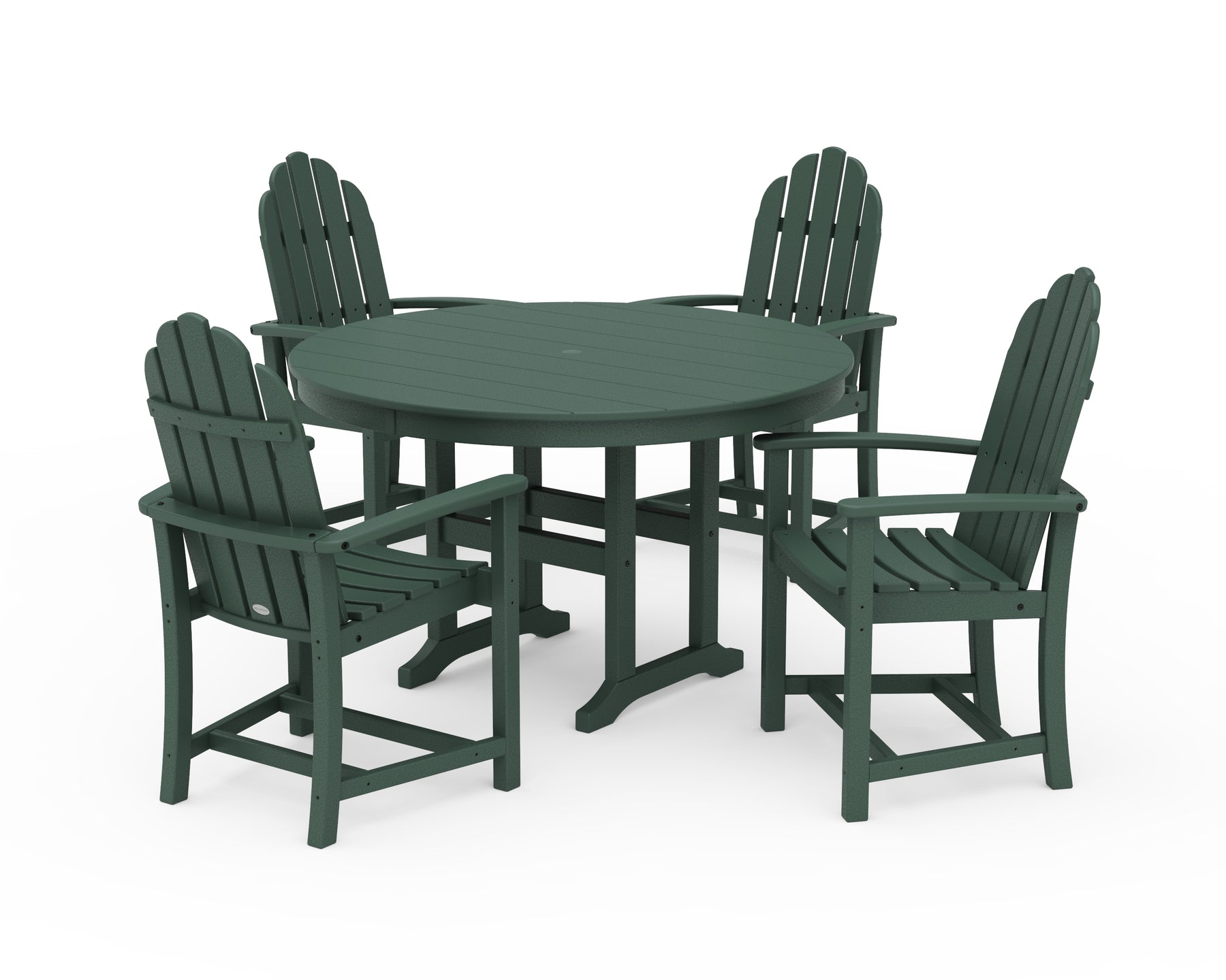 • Includes (4) Classic Adirondack Dining Chairs and (1) Round 48" Dining Table