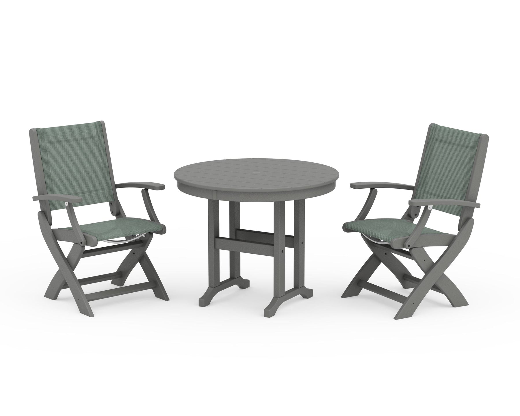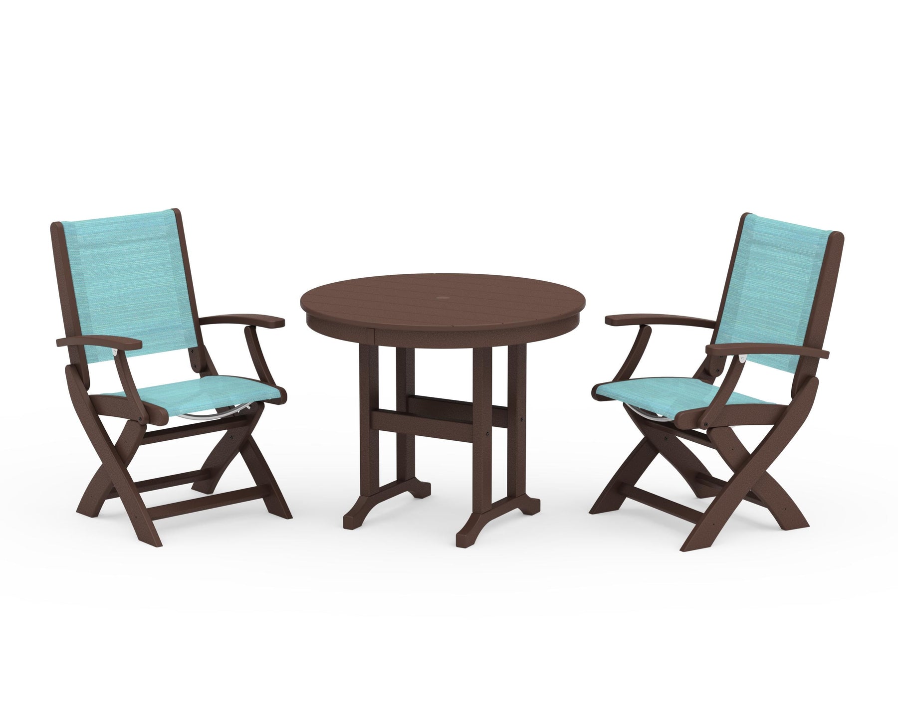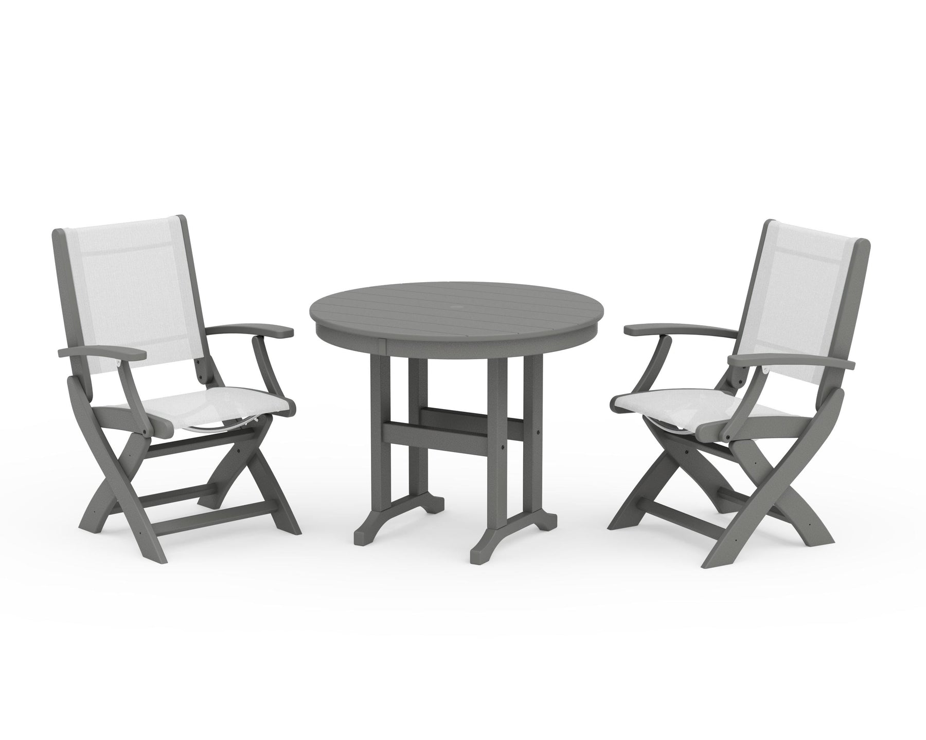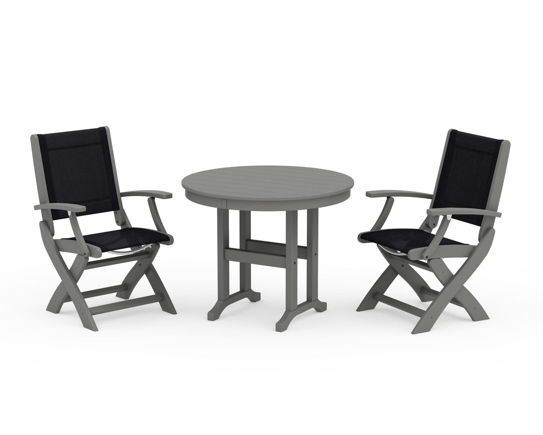 POLYWOOD® Coastal Folding Chair 3-Piece Round Dining Set