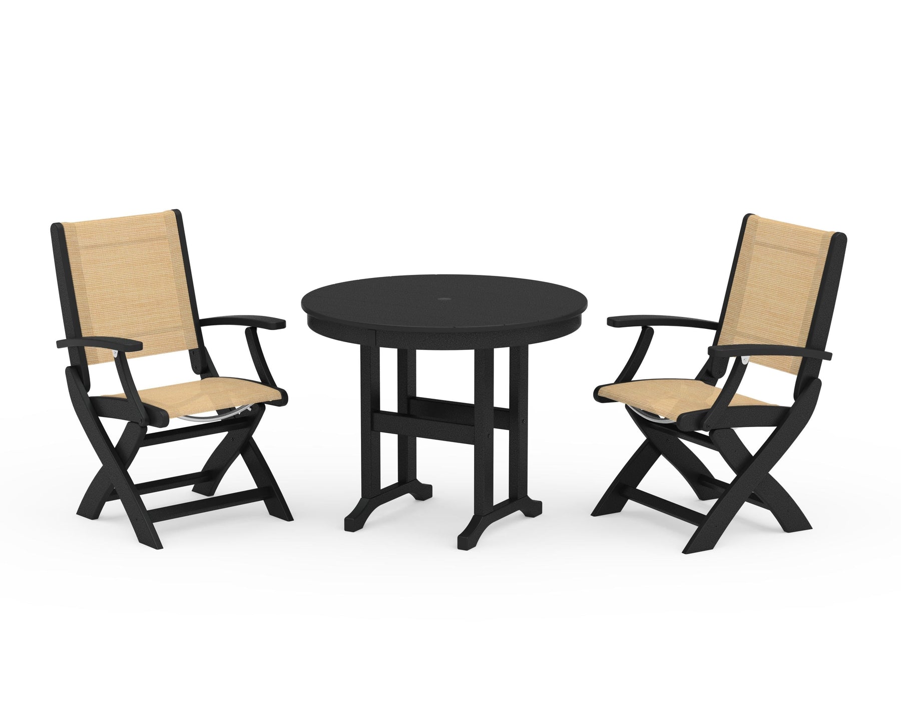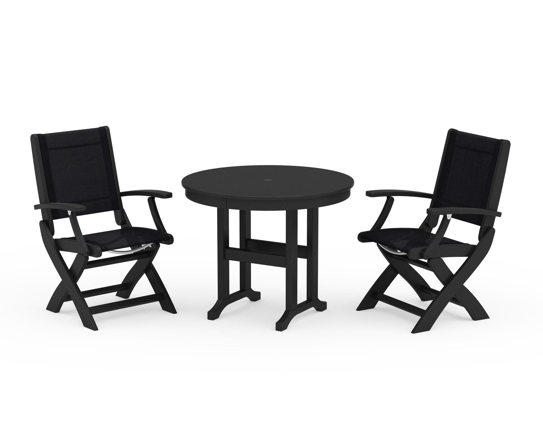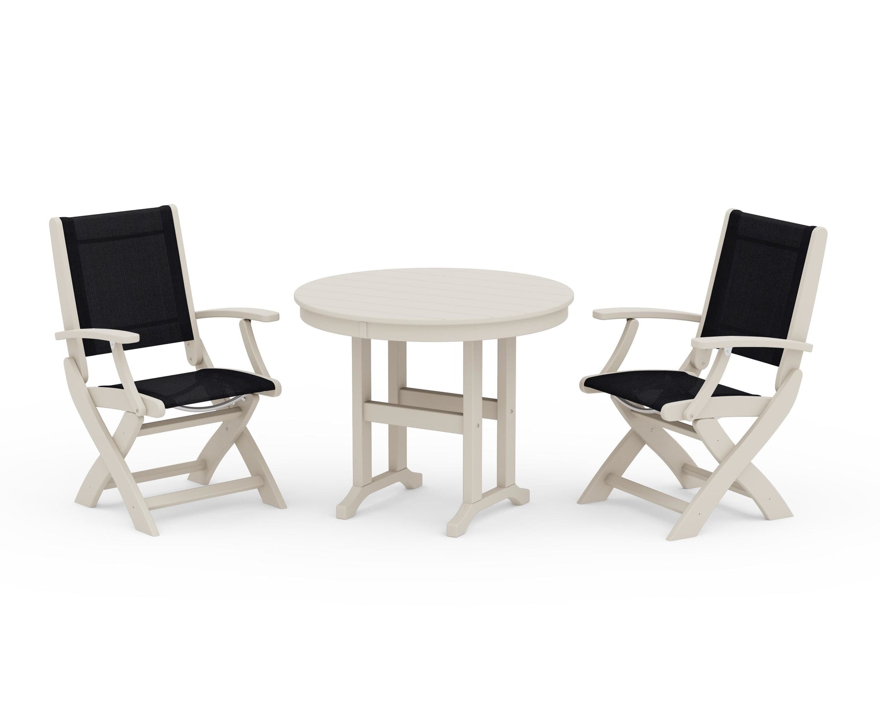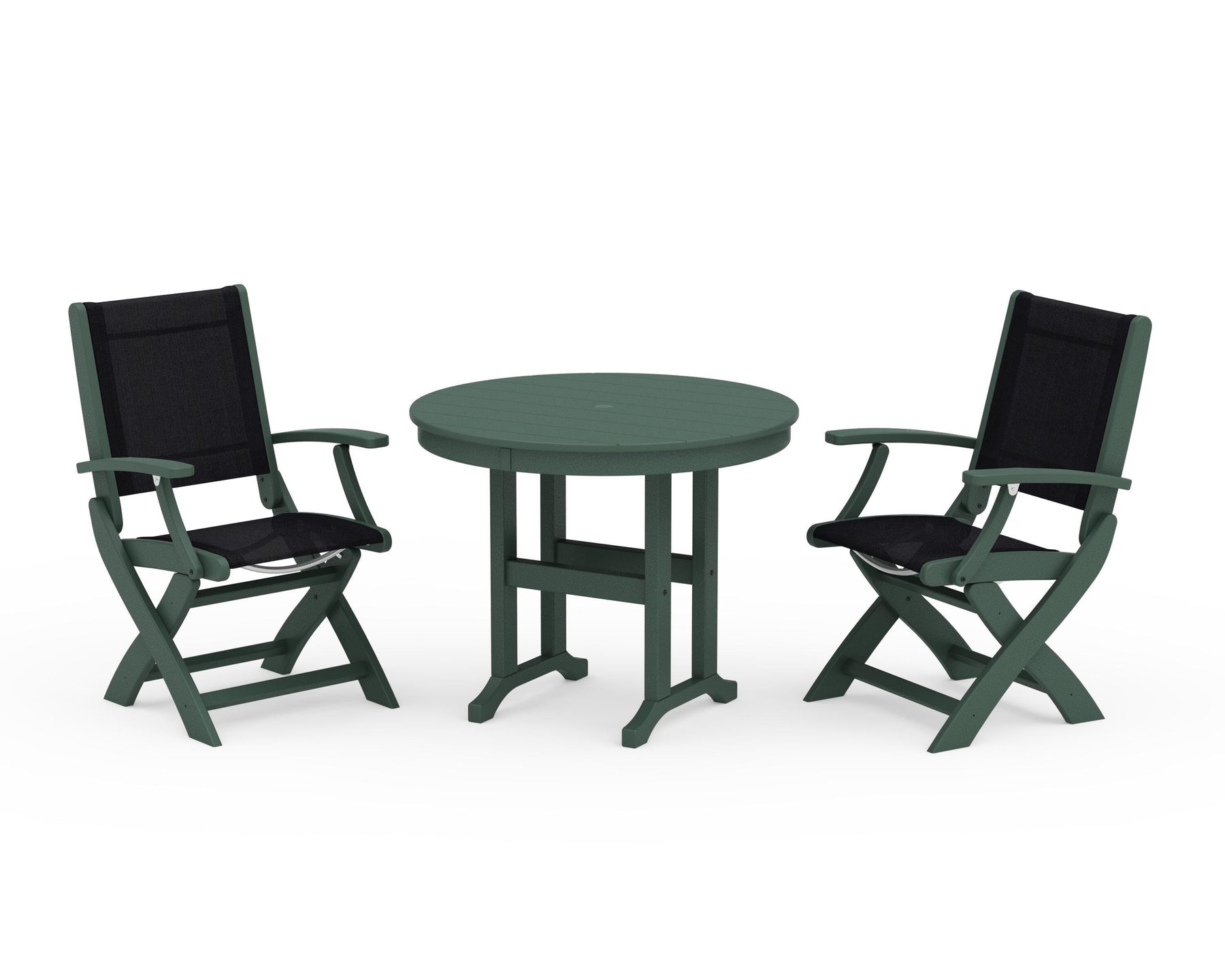 POLYWOOD® Coastal Folding Chair 3-Piece Round Dining Set
