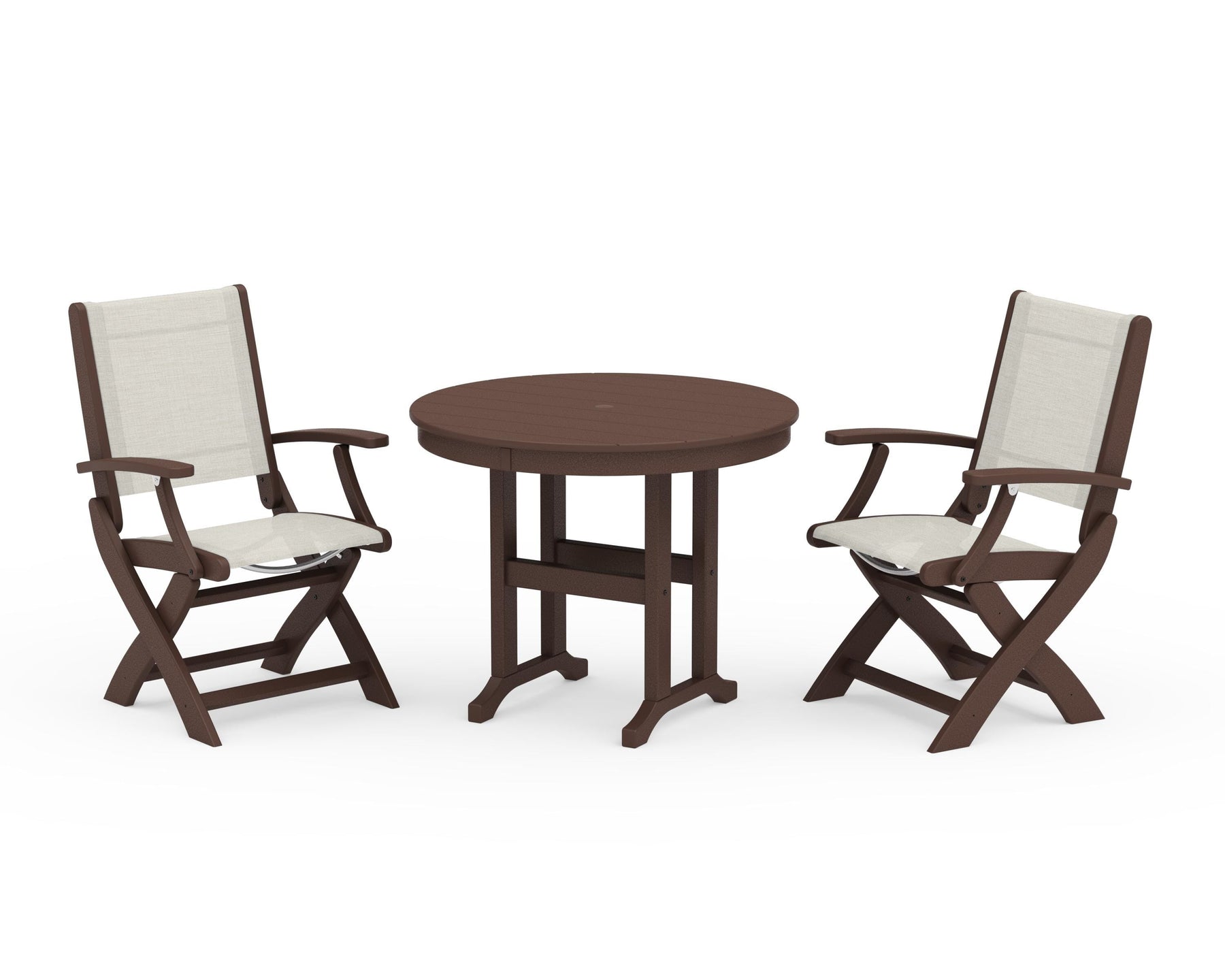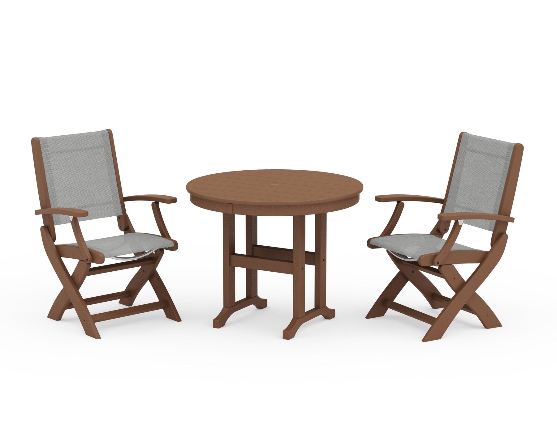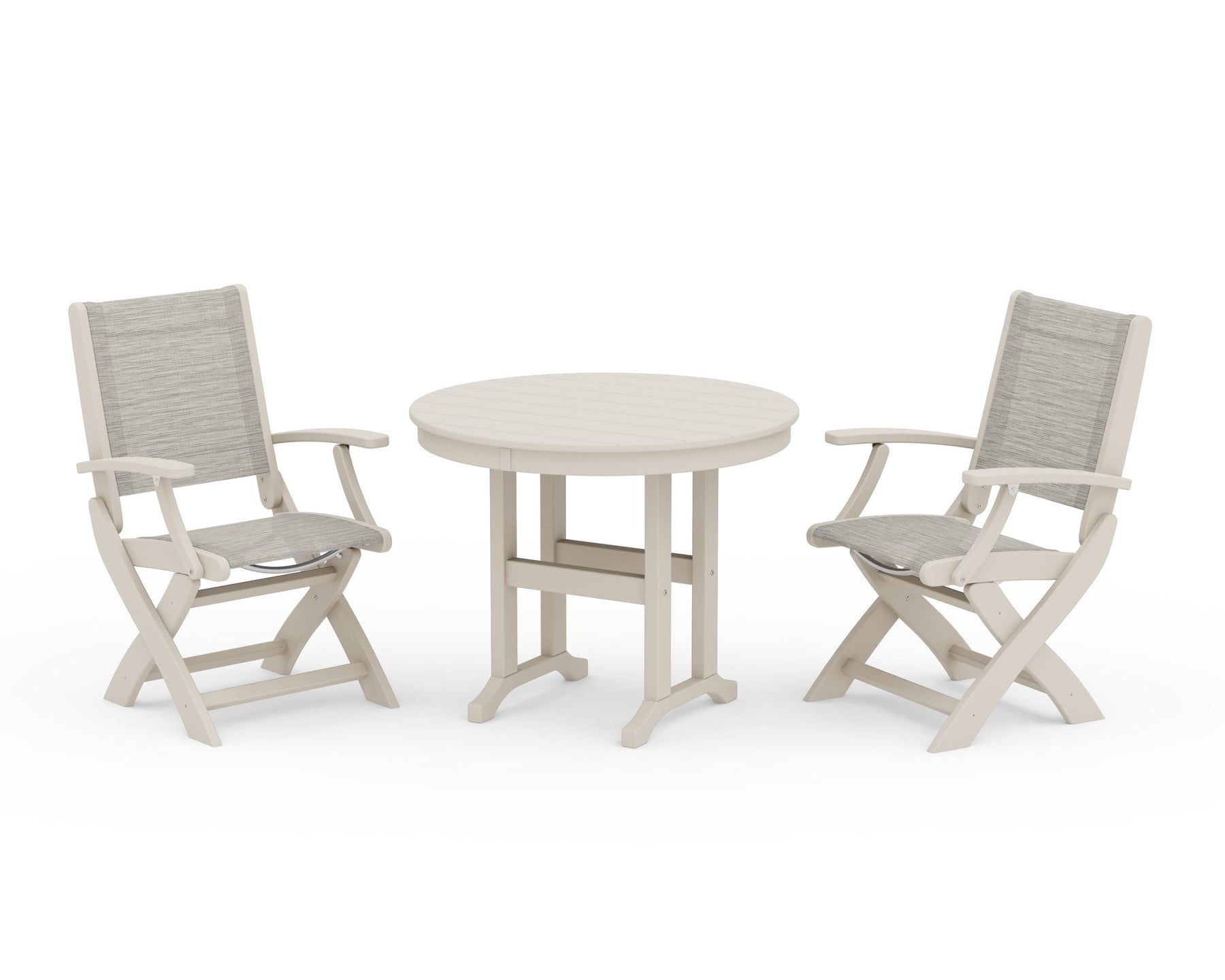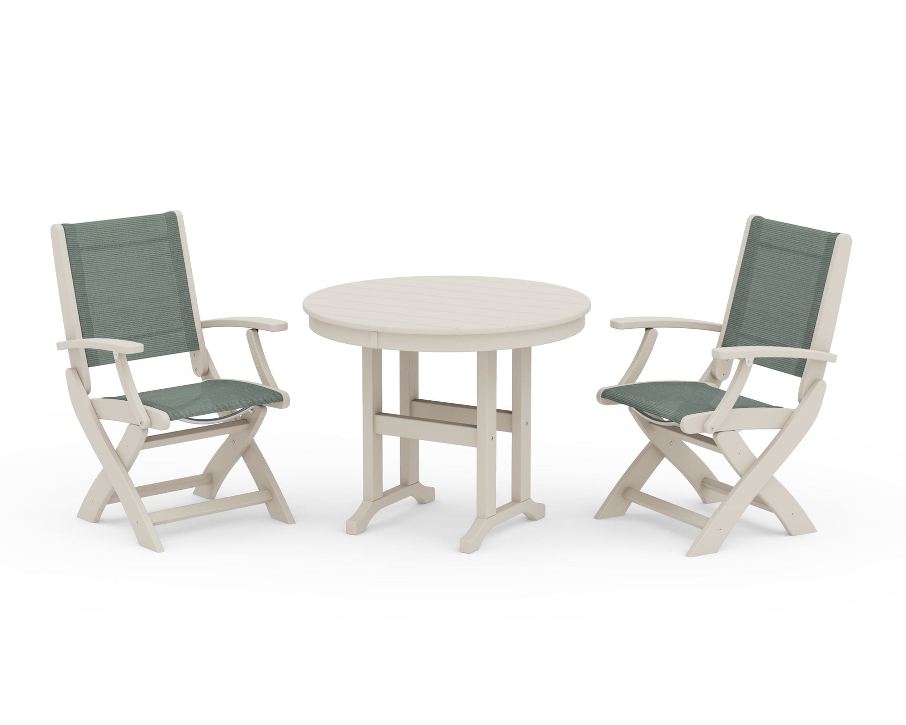 POLYWOOD® Coastal Folding Chair 3-Piece Round Dining Set