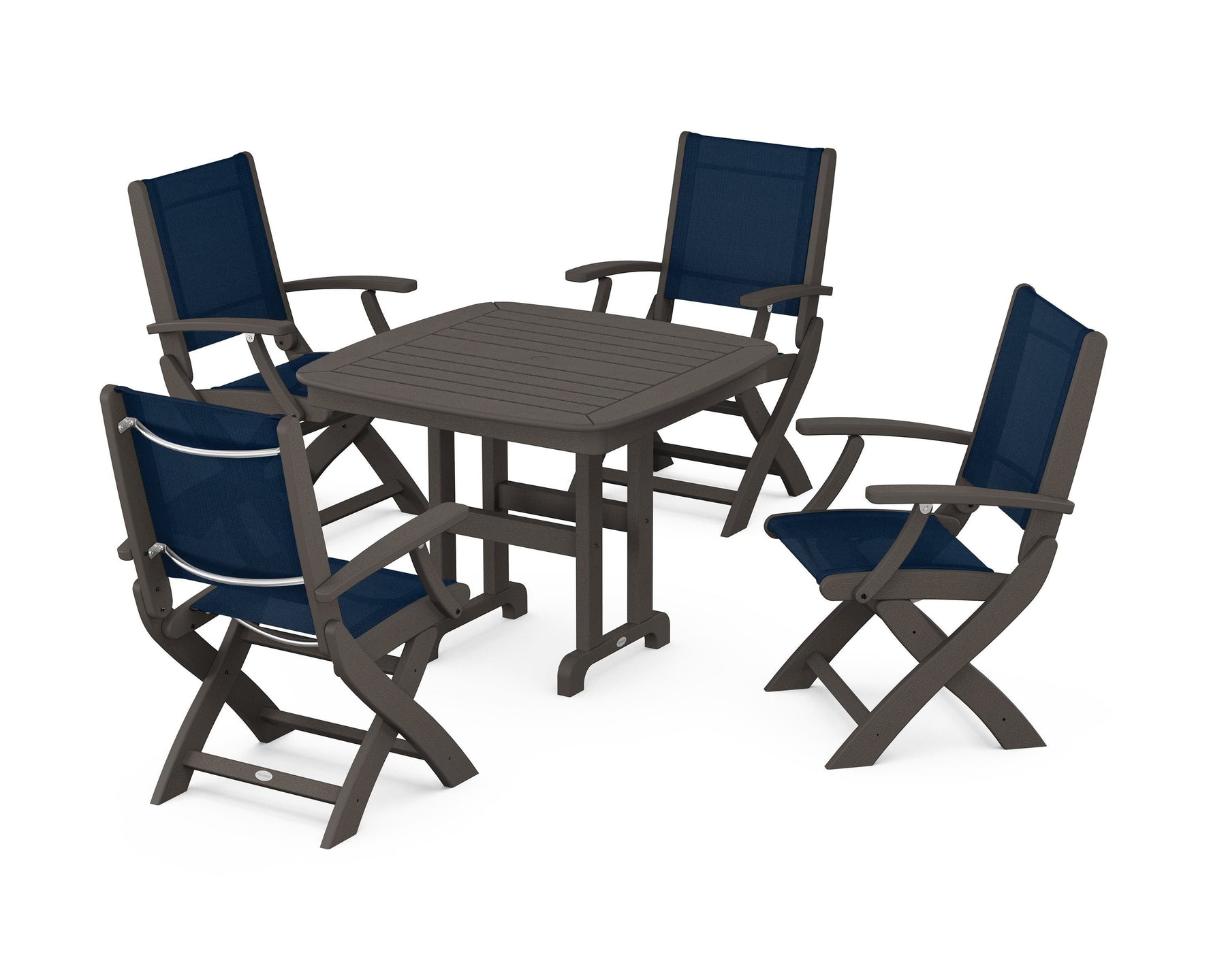 POLYWOOD® Coastal Folding Chair 5-Piece Dining Set