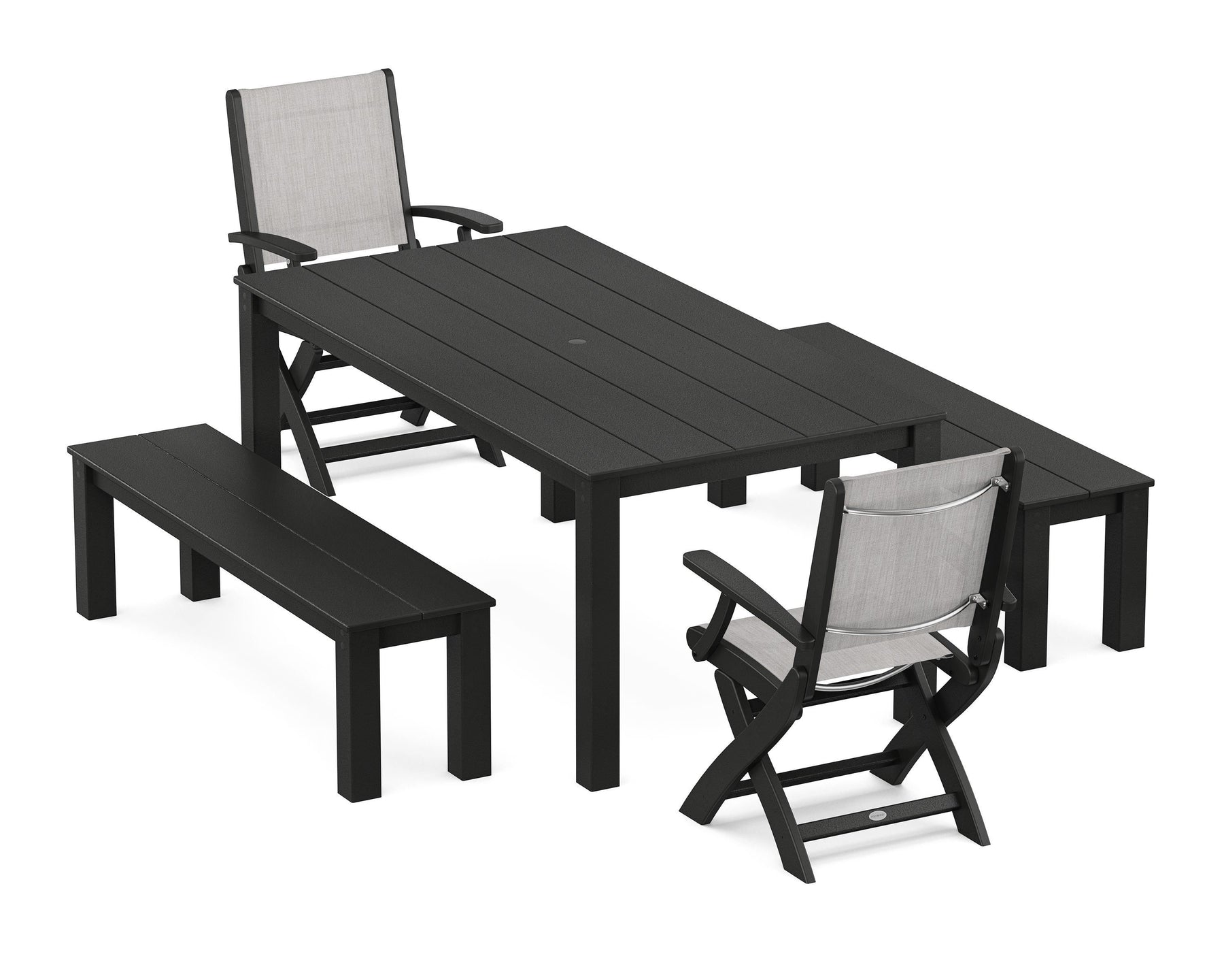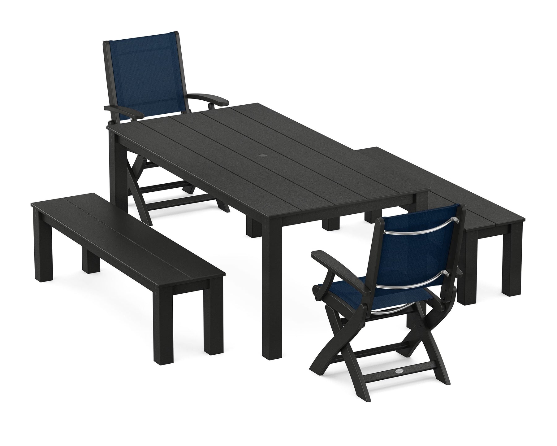 POLYWOOD® Coastal Folding Chair 5-Piece Parsons Dining Set with Benches