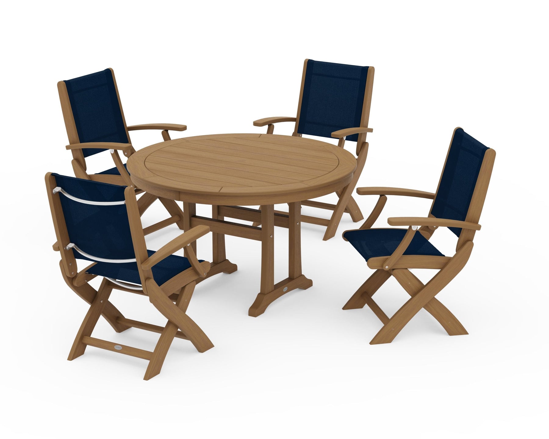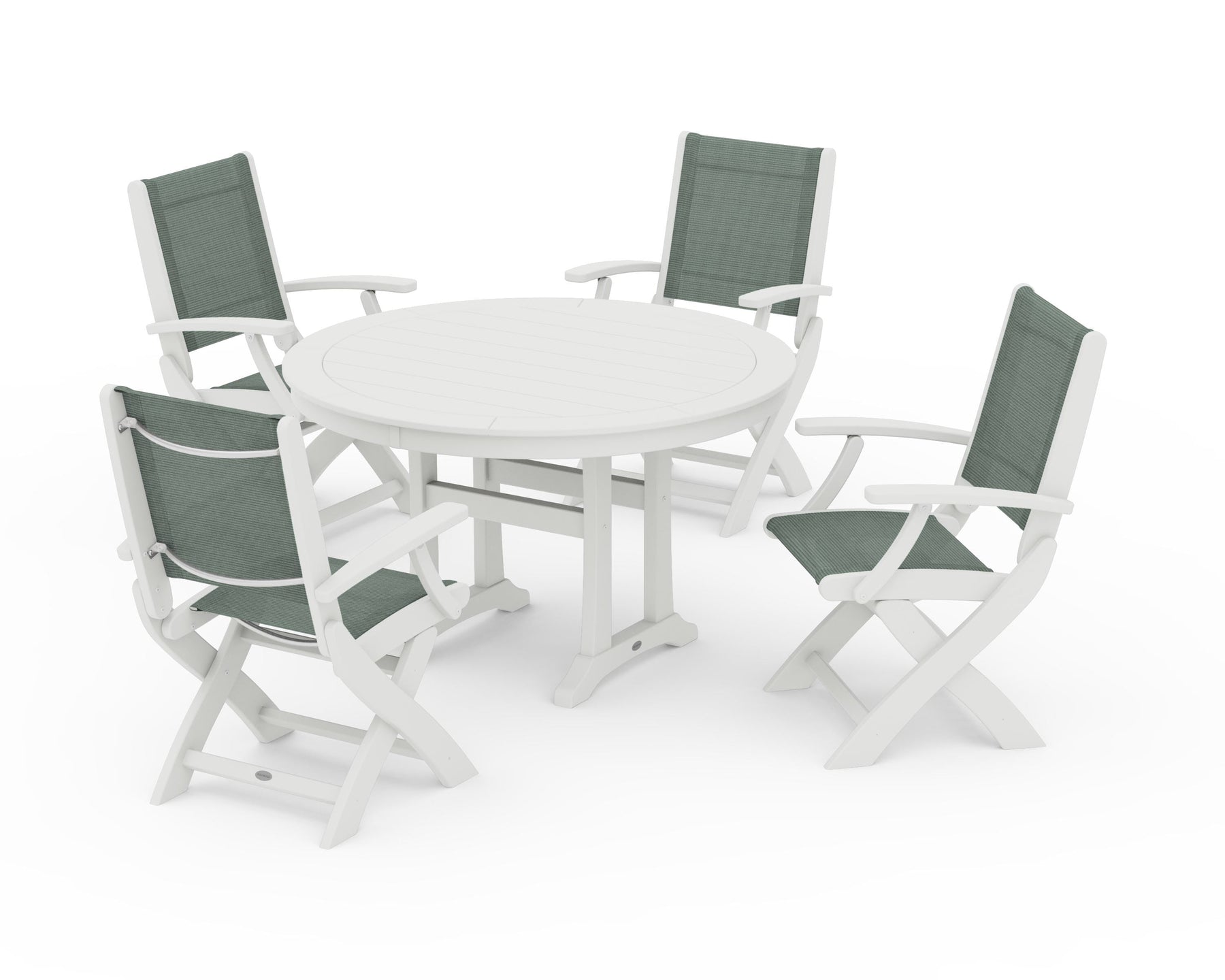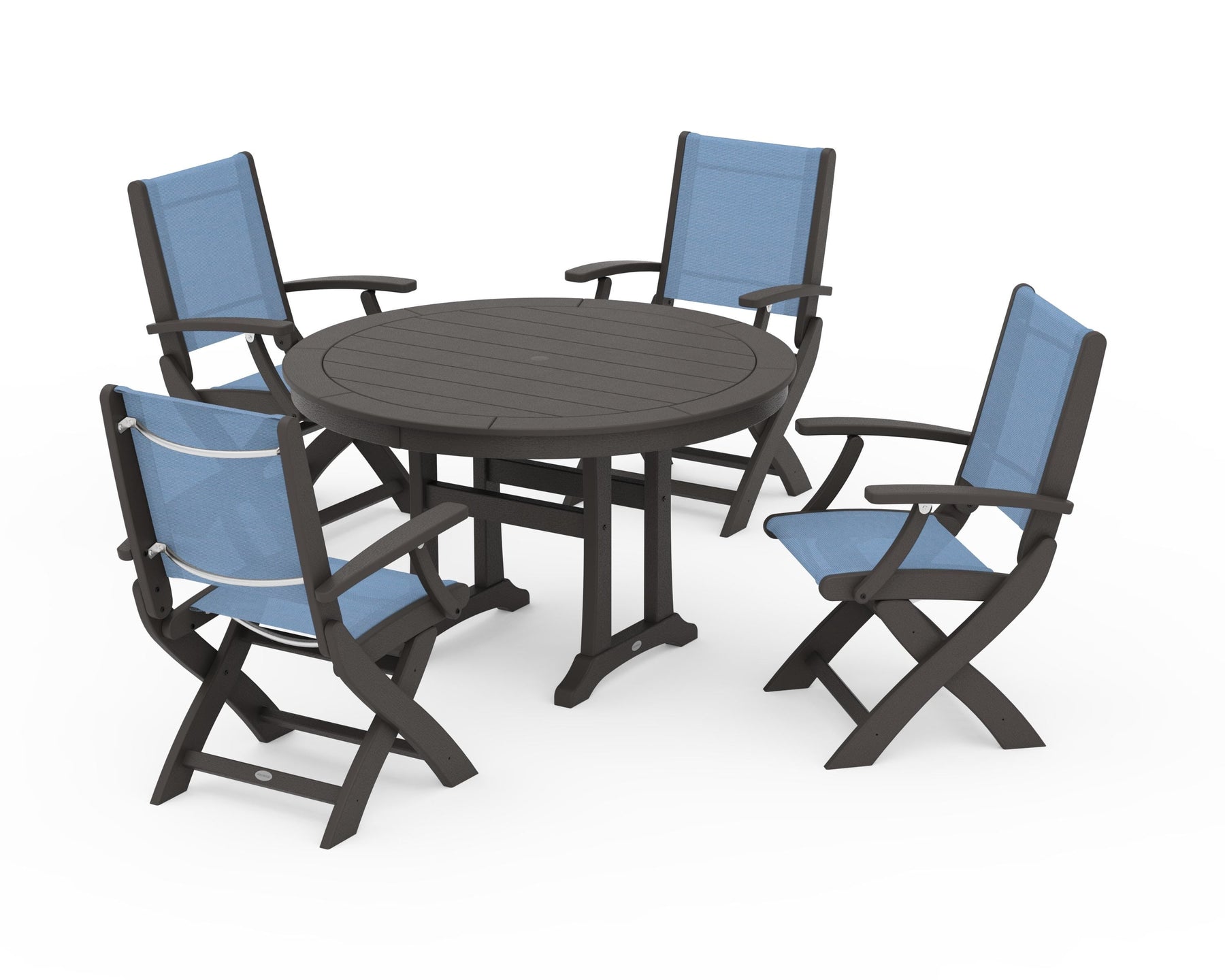 POLYWOOD® Coastal Folding Chair 5-Piece Round Dining Set with Trestle Legs