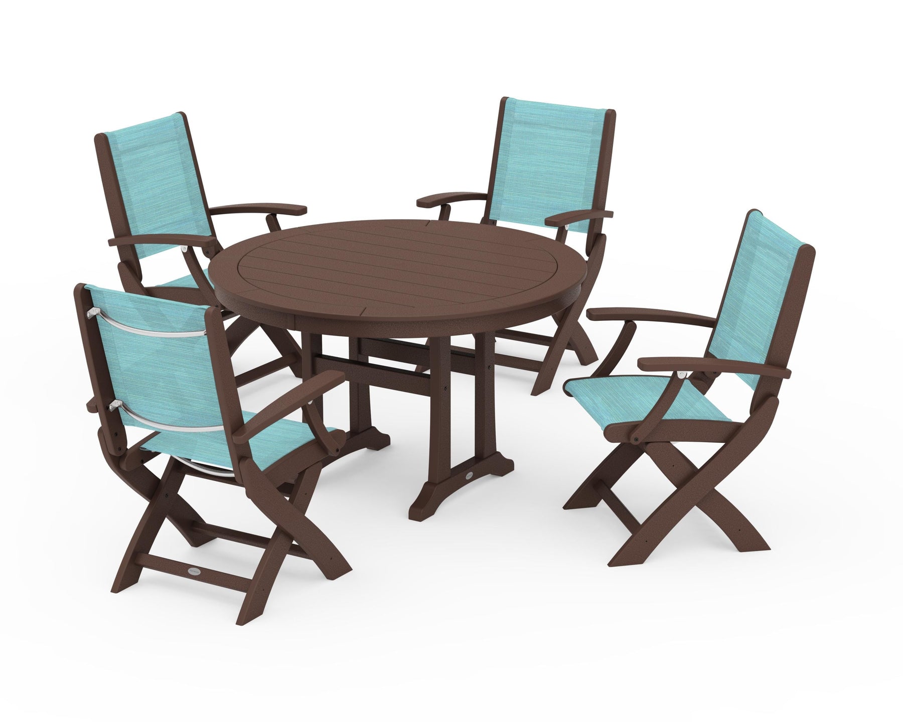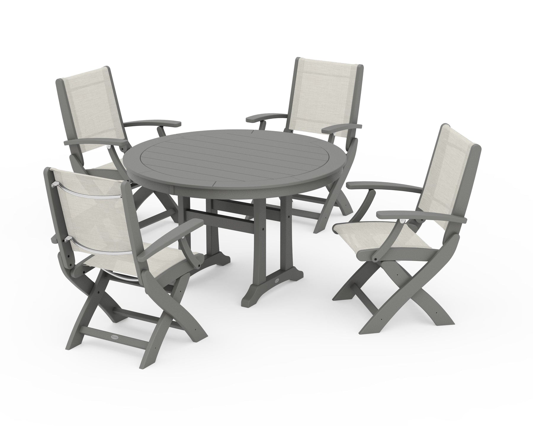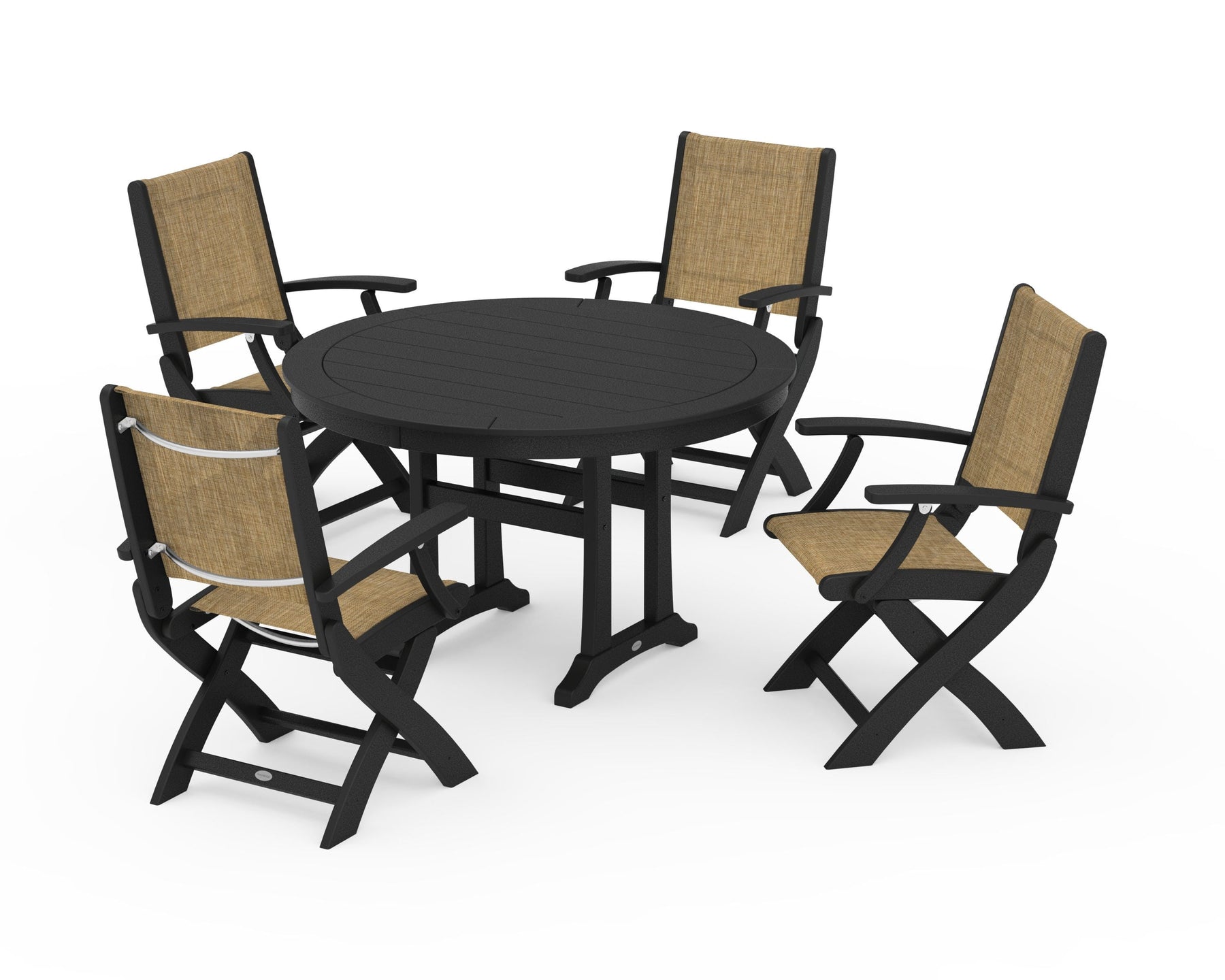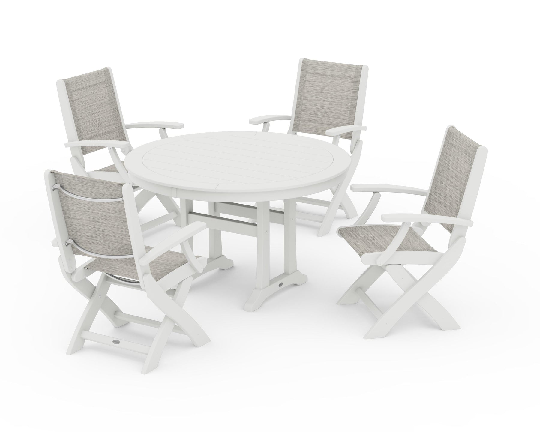 POLYWOOD® Coastal Folding Chair 5-Piece Round Dining Set with Trestle Legs