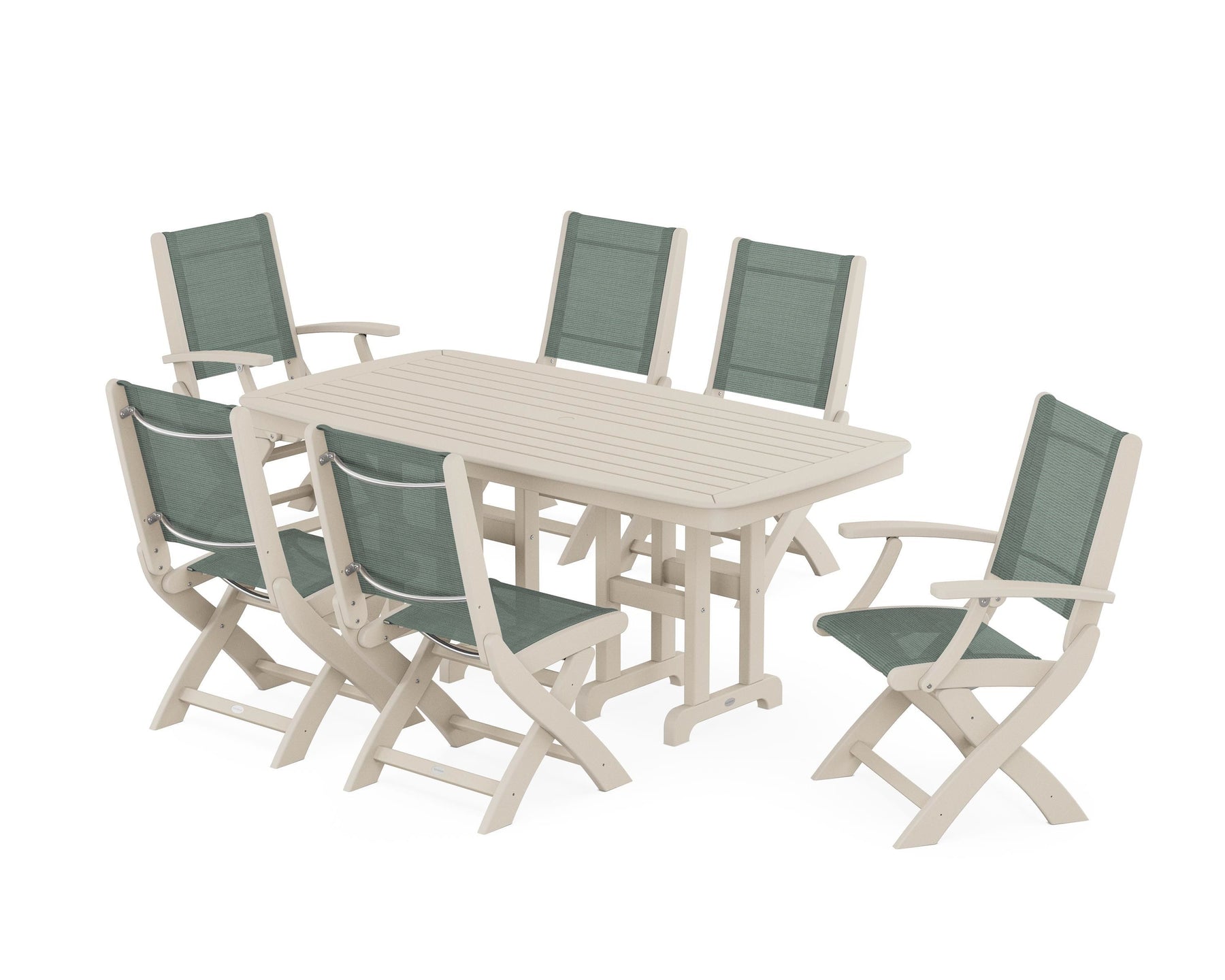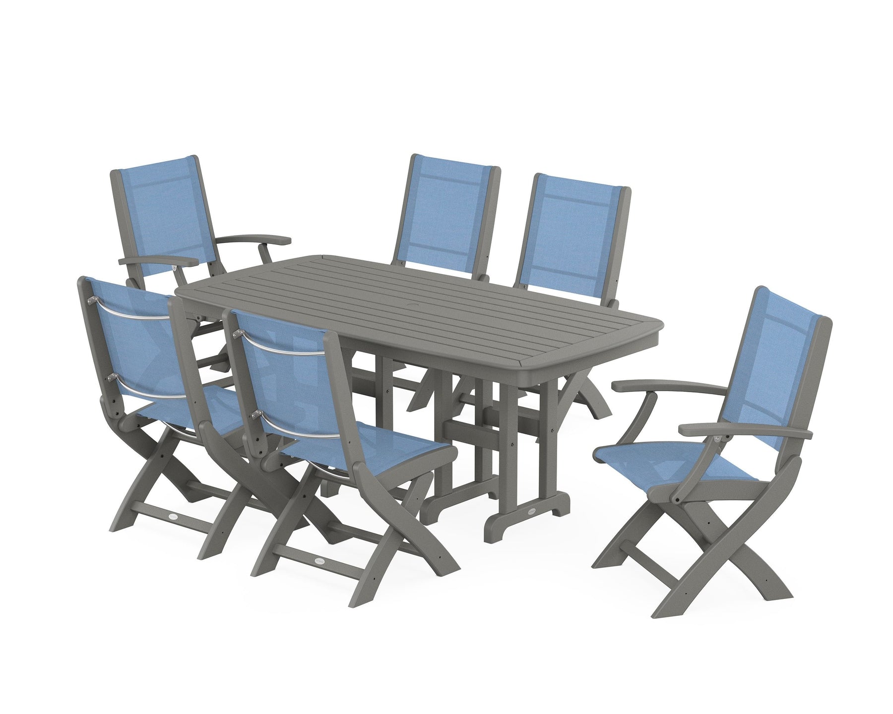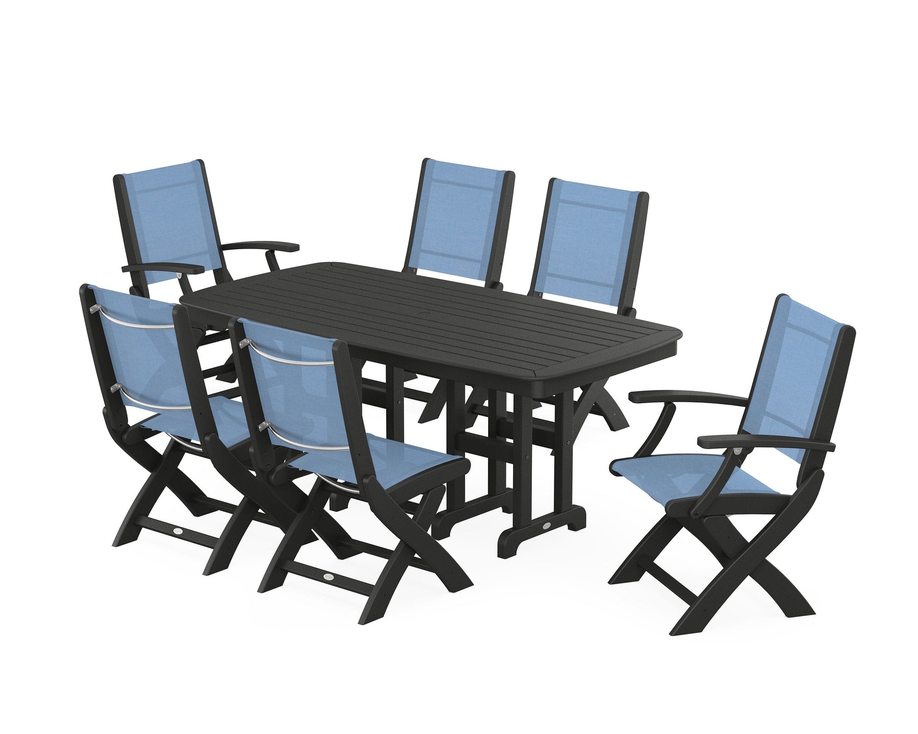POLYWOOD® Coastal Folding Chair 7-Piece Dining Set