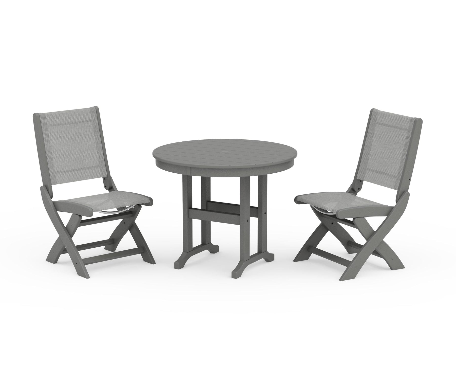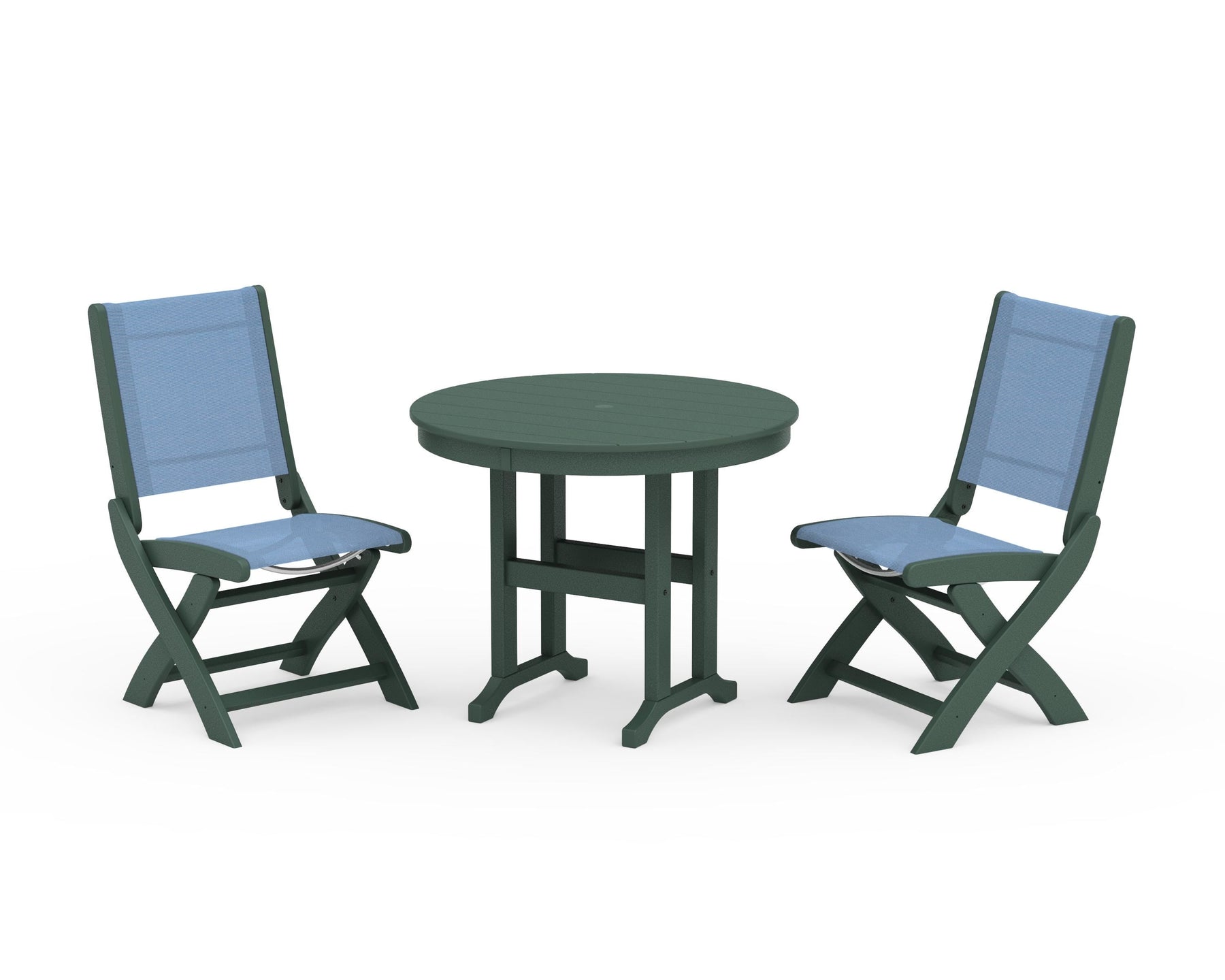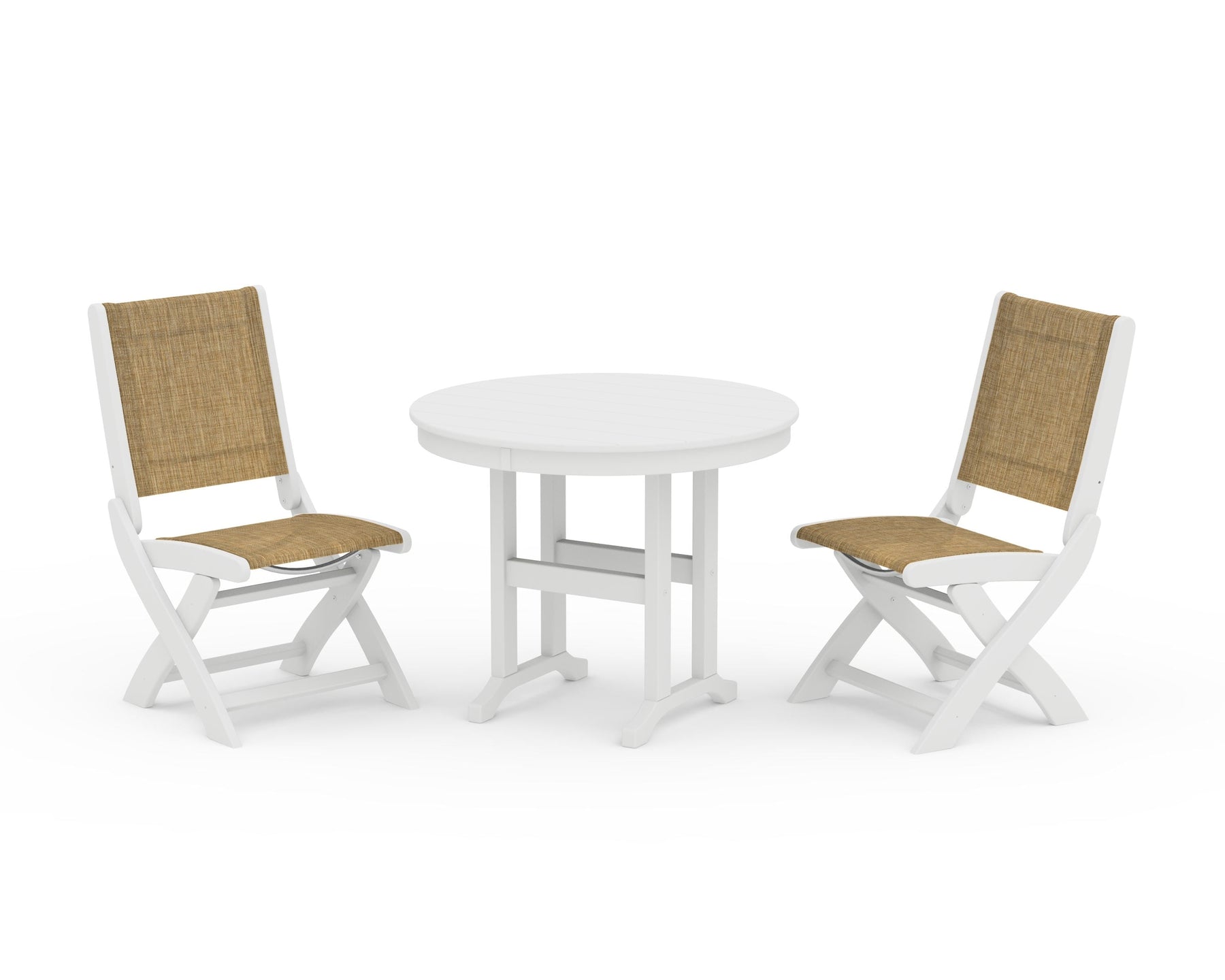 POLYWOOD® Coastal Folding Side Chair 3-Piece Round Dining Set