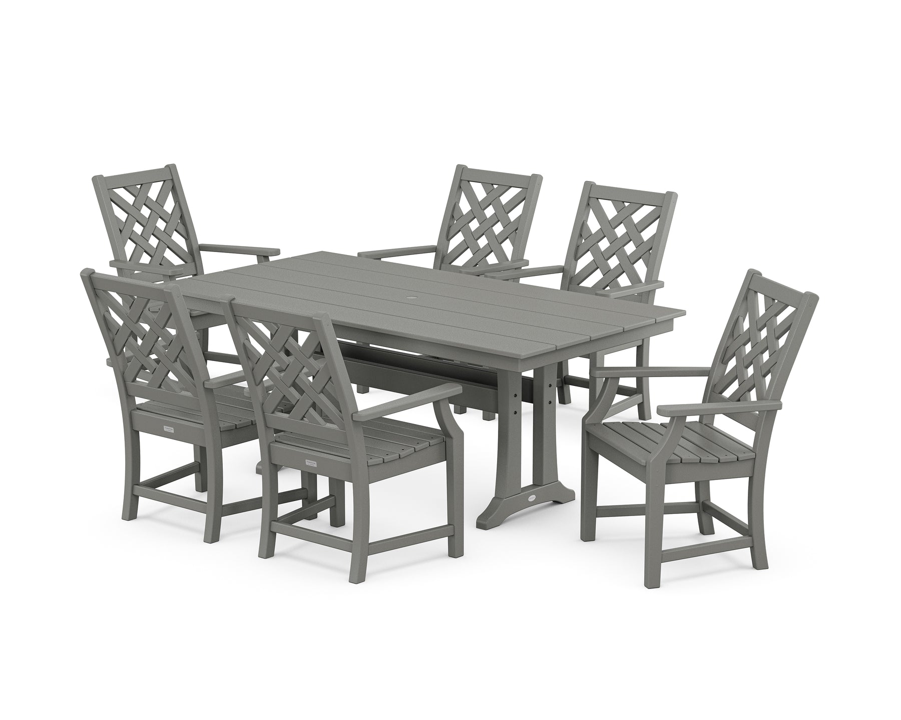 POLYWOOD® Wovendale Arm Chair 7-Piece Farmhouse Dining Set with Trestle Legs