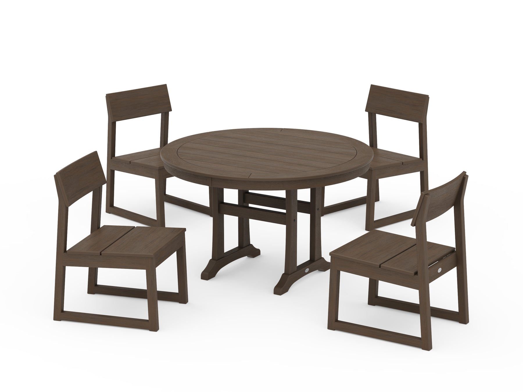POLYWOOD® EDGE Side Chair 5-Piece Round Dining Set With Trestle Legs