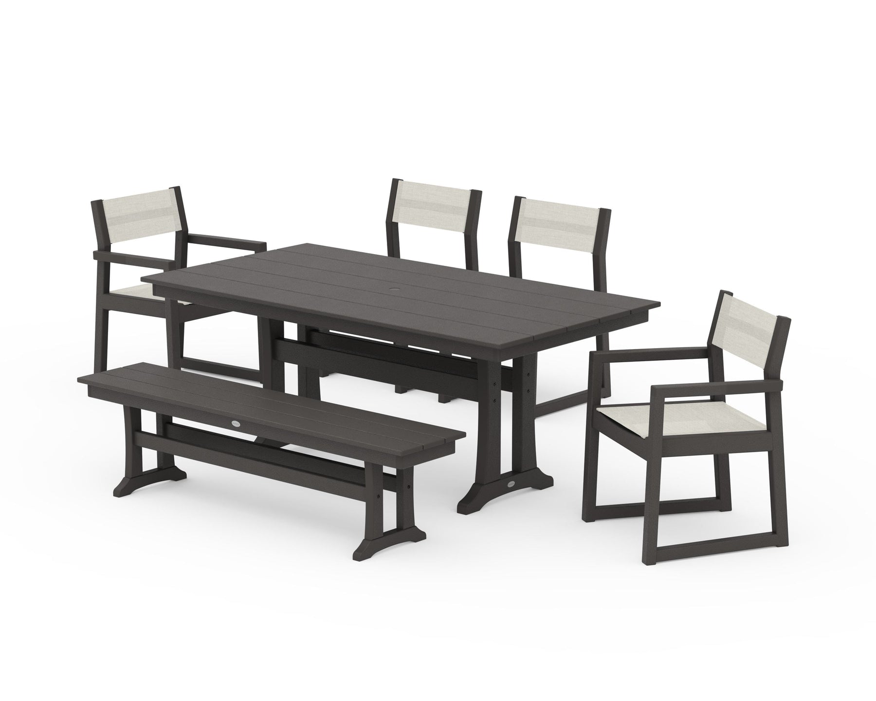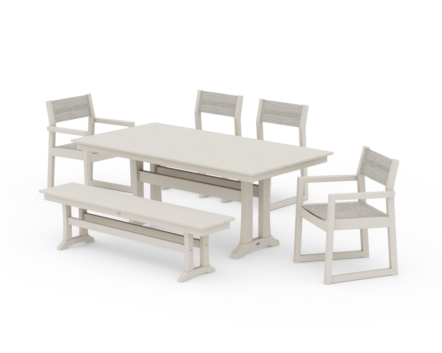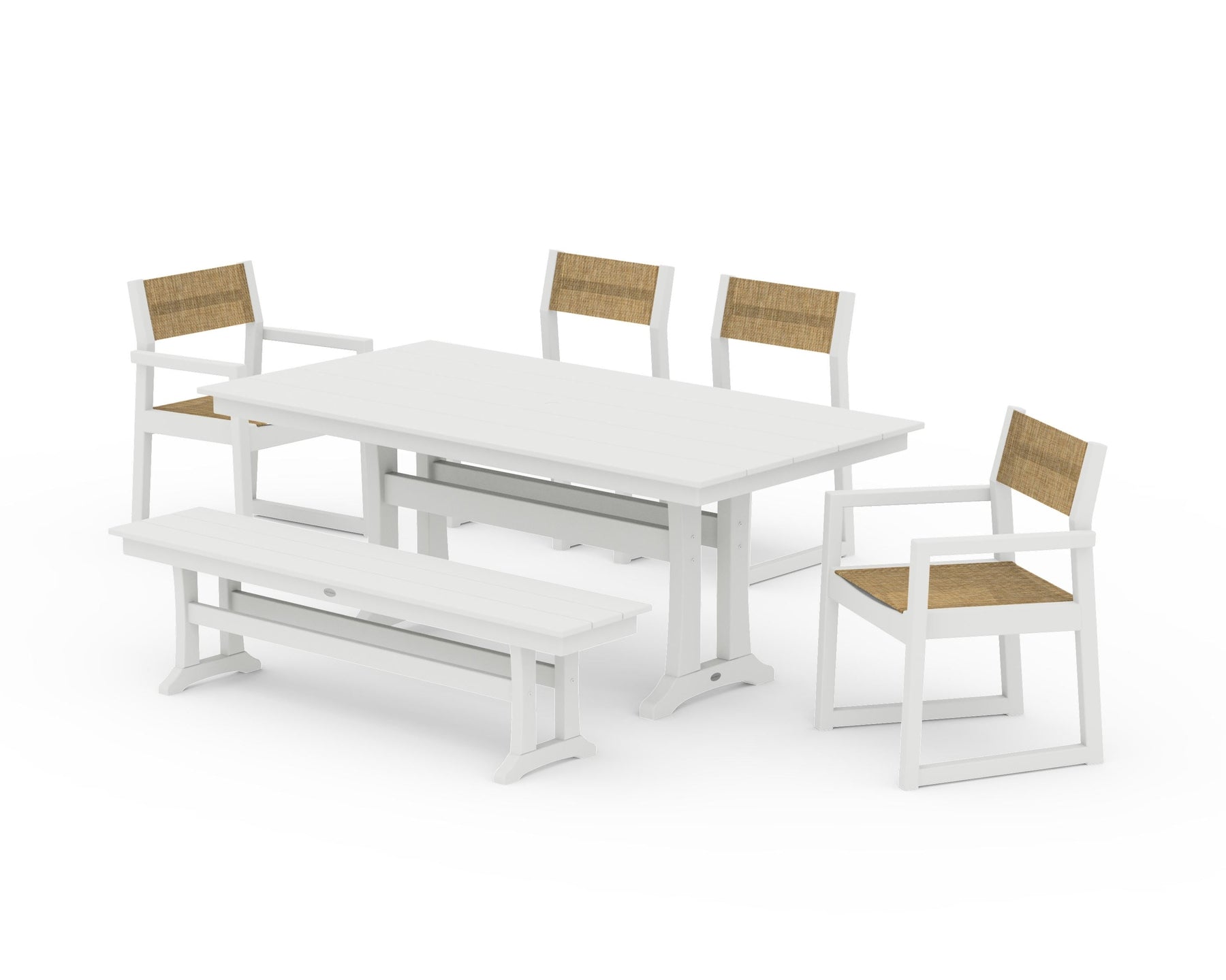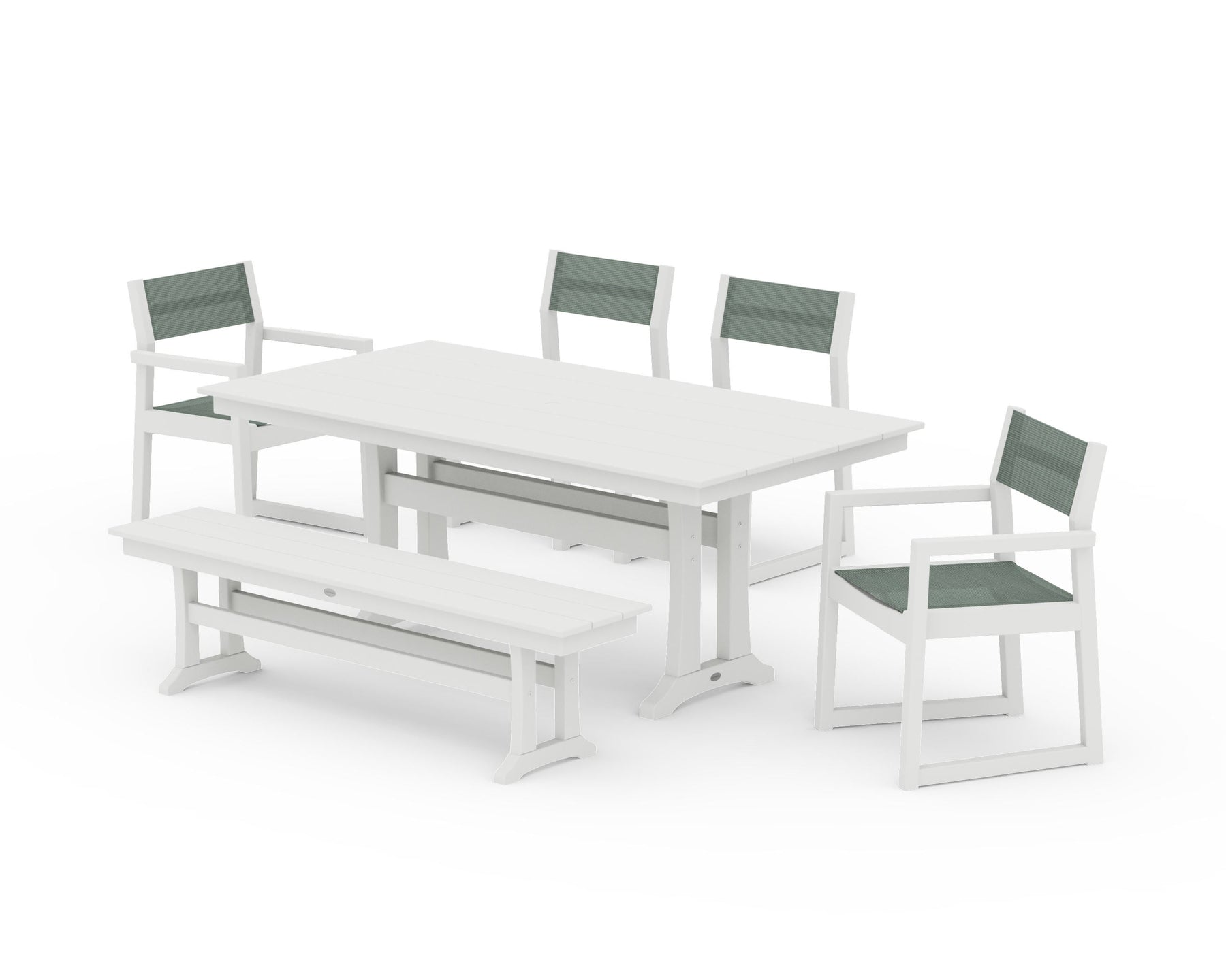 POLYWOOD® EDGE Sling 6-Piece Farmhouse Dining Set With Trestle Legs