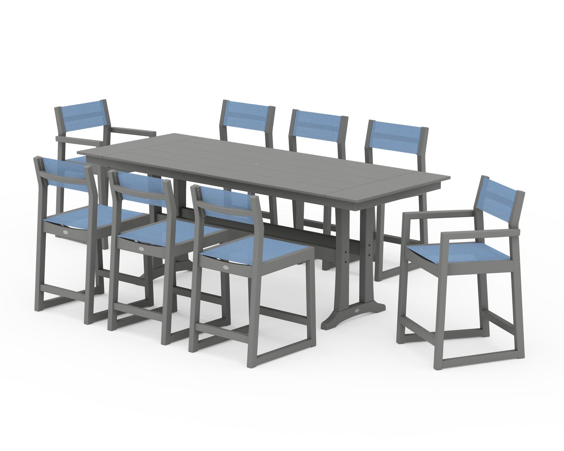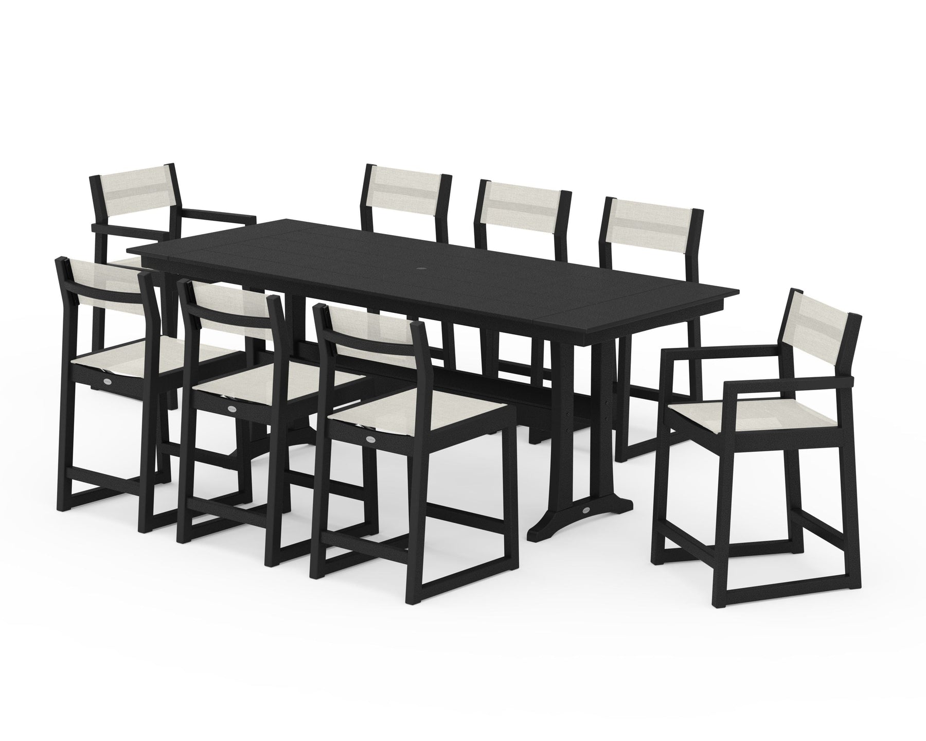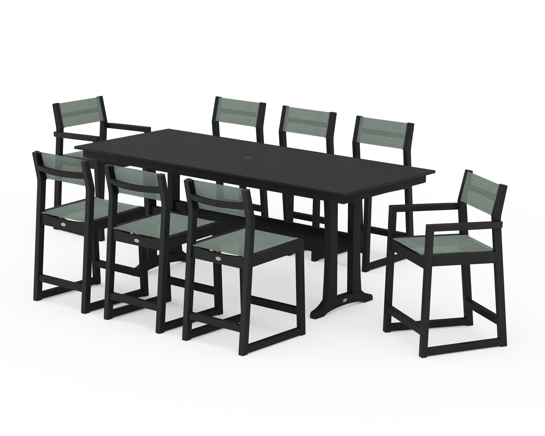 POLYWOOD® EDGE Sling 9-Piece Farmhouse Counter Set with Trestle Legs