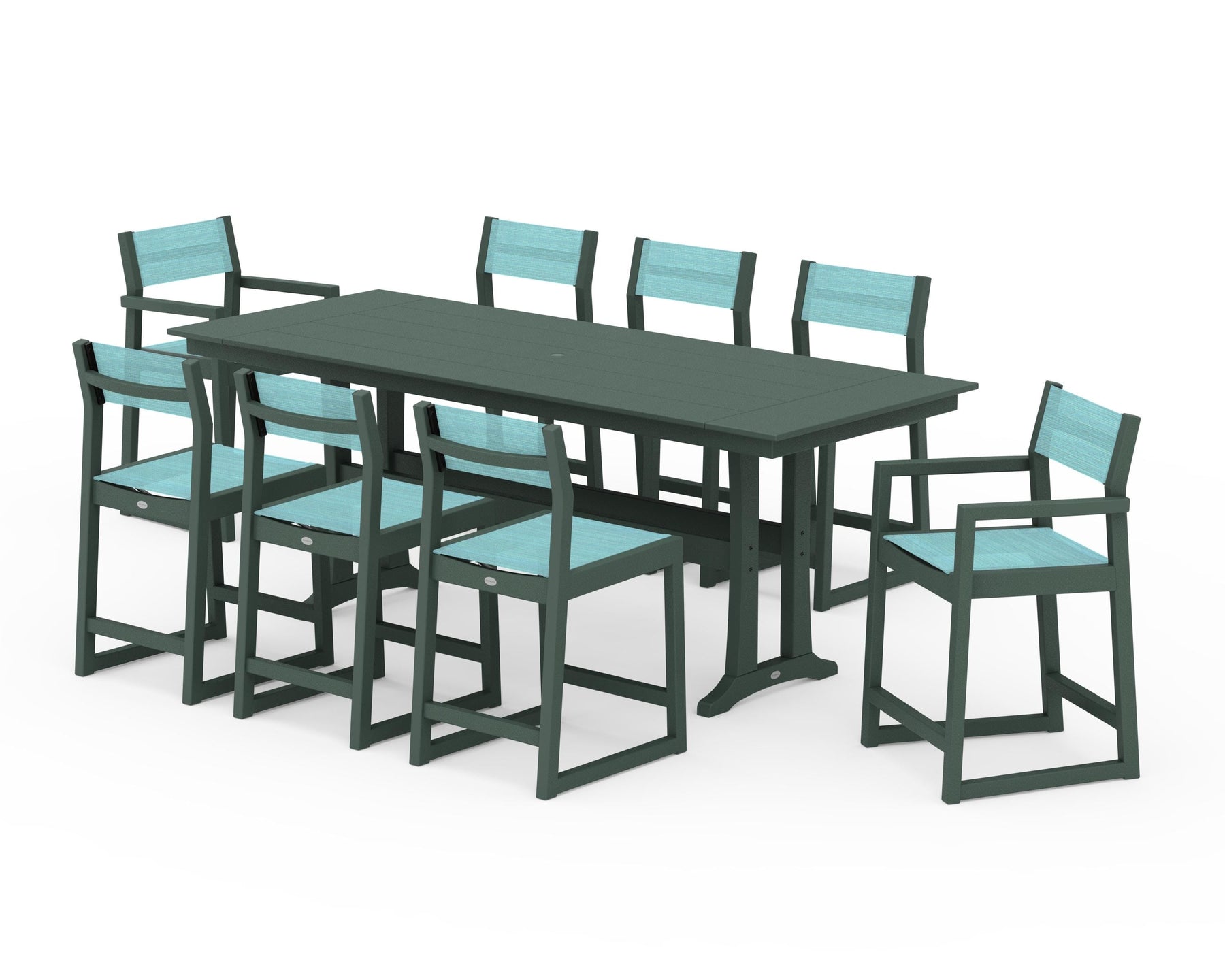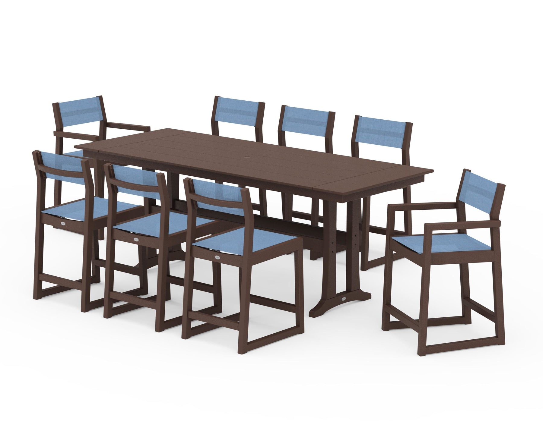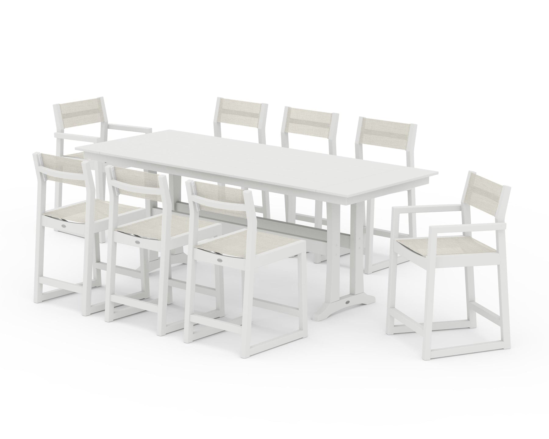 POLYWOOD® EDGE Sling 9-Piece Farmhouse Counter Set with Trestle Legs