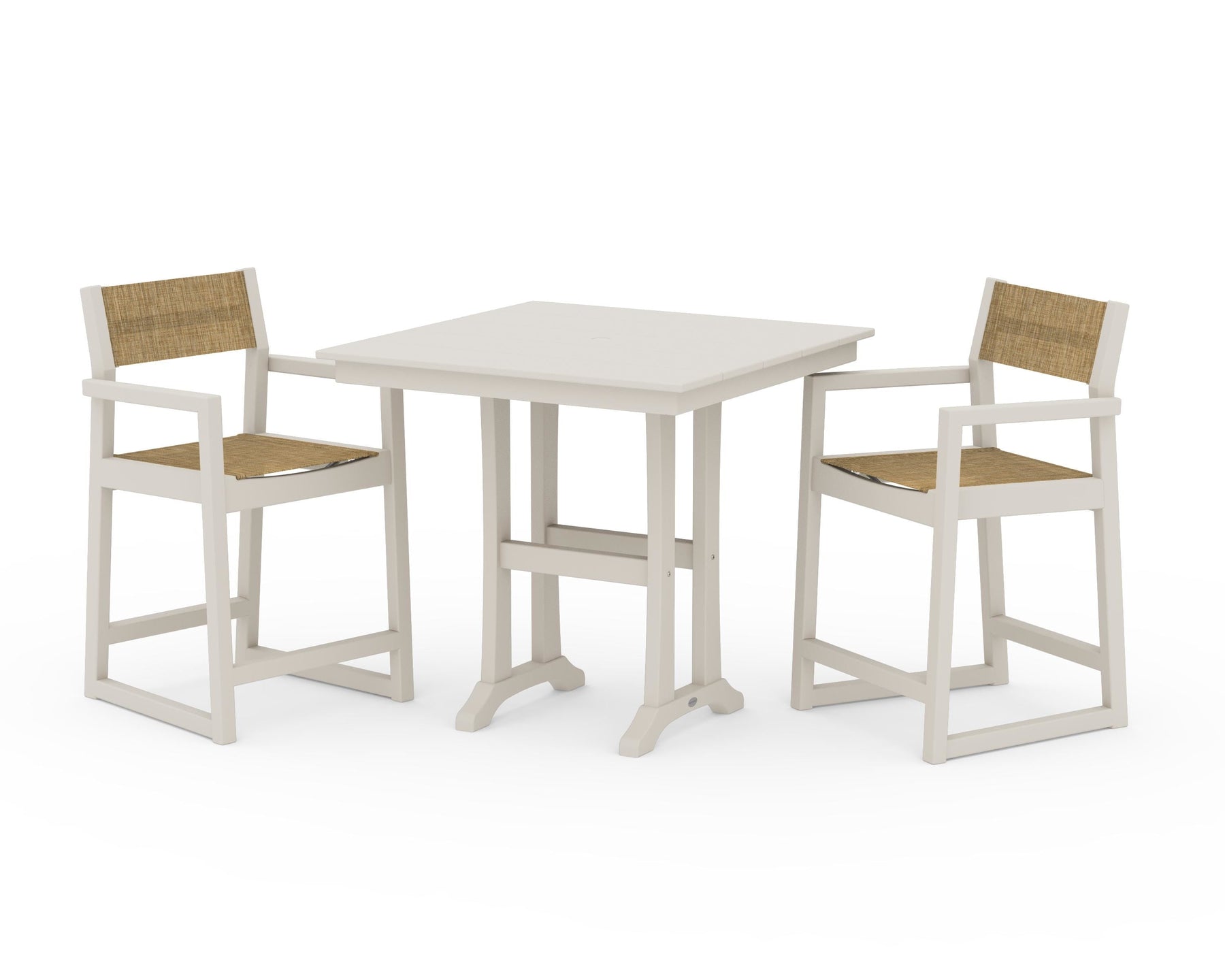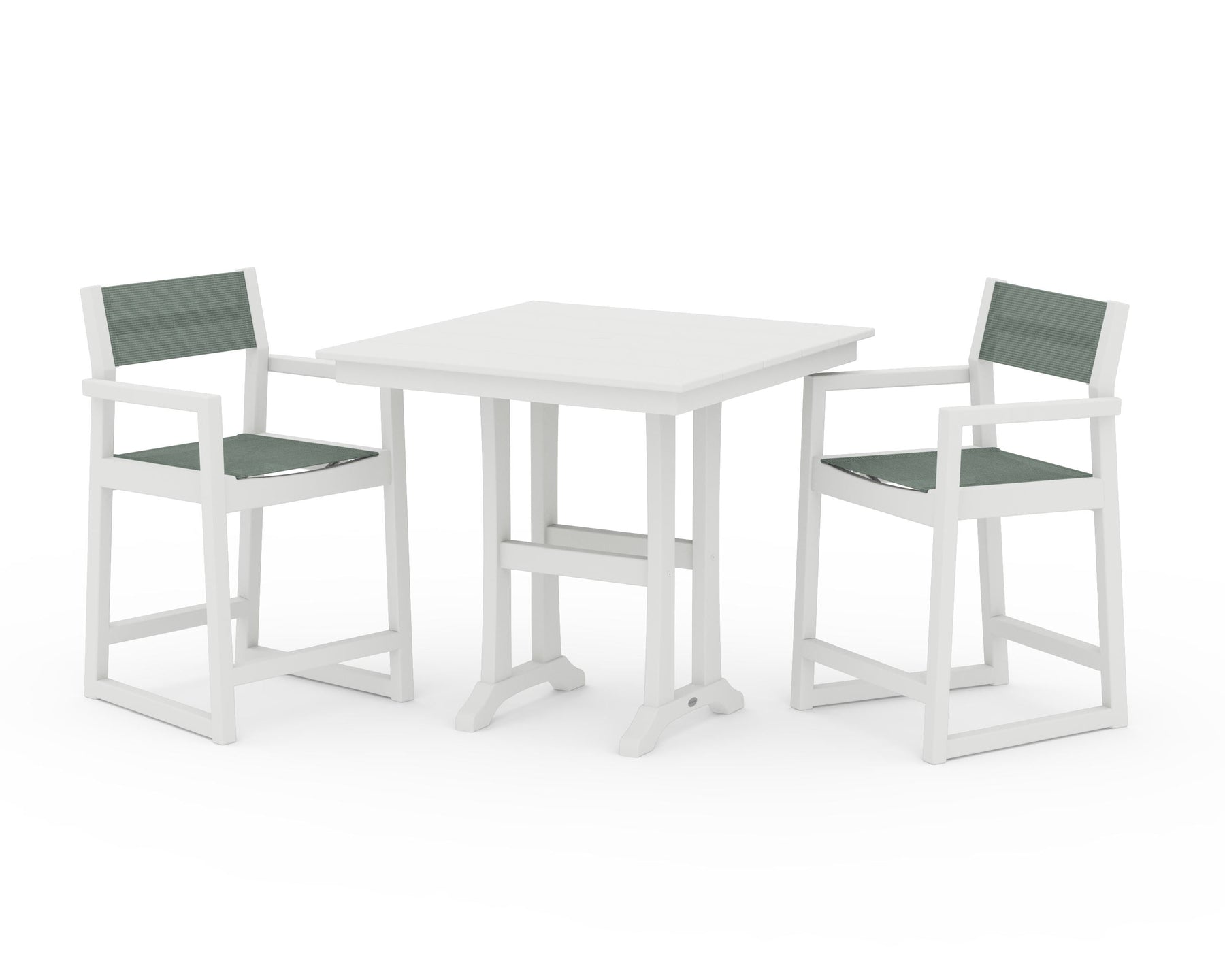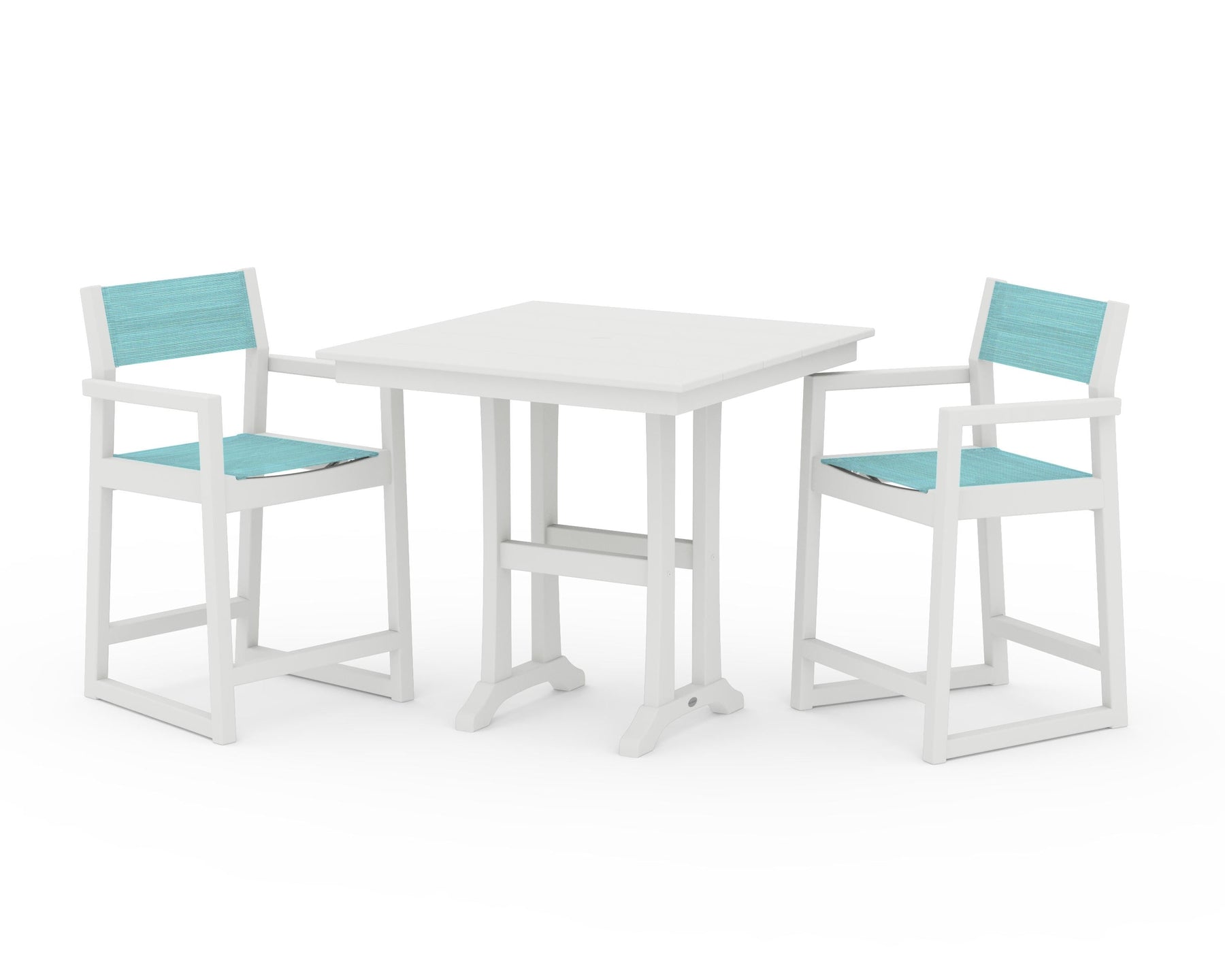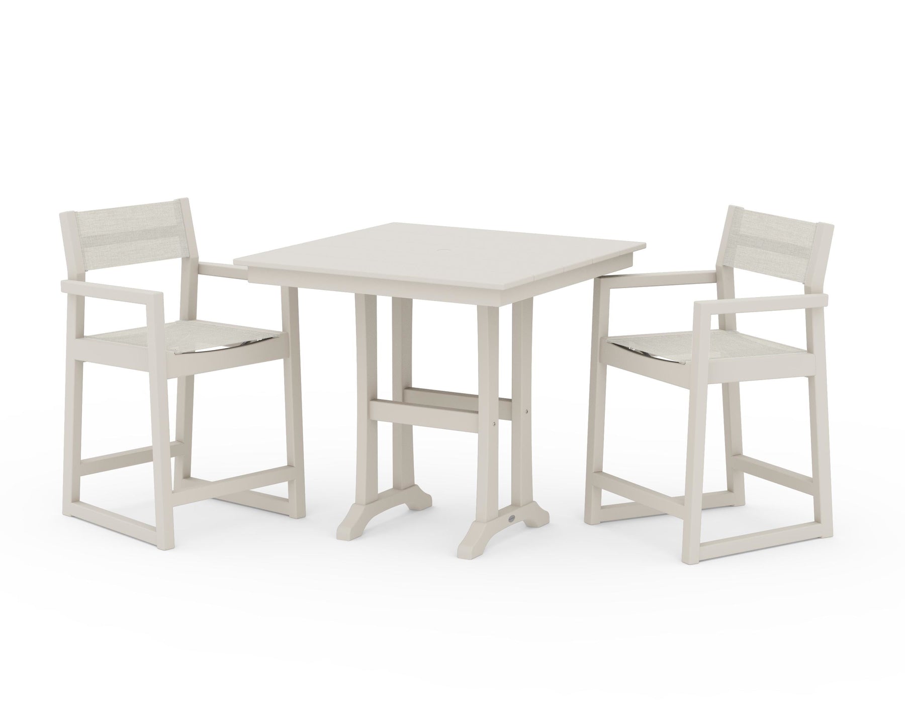 Entertain with ease and spend your evenings outside around the EDGE Sling Arm Chair 3-Piece Farmhouse Counter Set with Trestle Legs. This all-weather set is great for small spaces and features a sleek design made for the modern home. The breathable sling seating offers comfort, enduring support, and resort-inspired style.