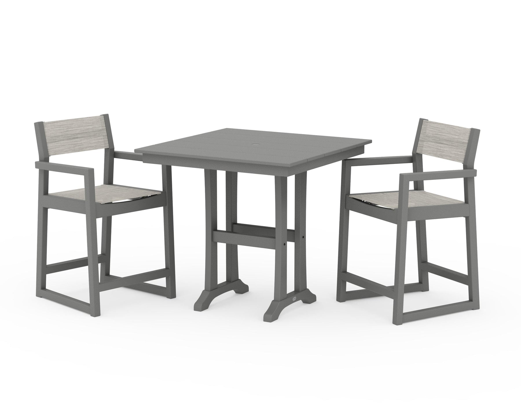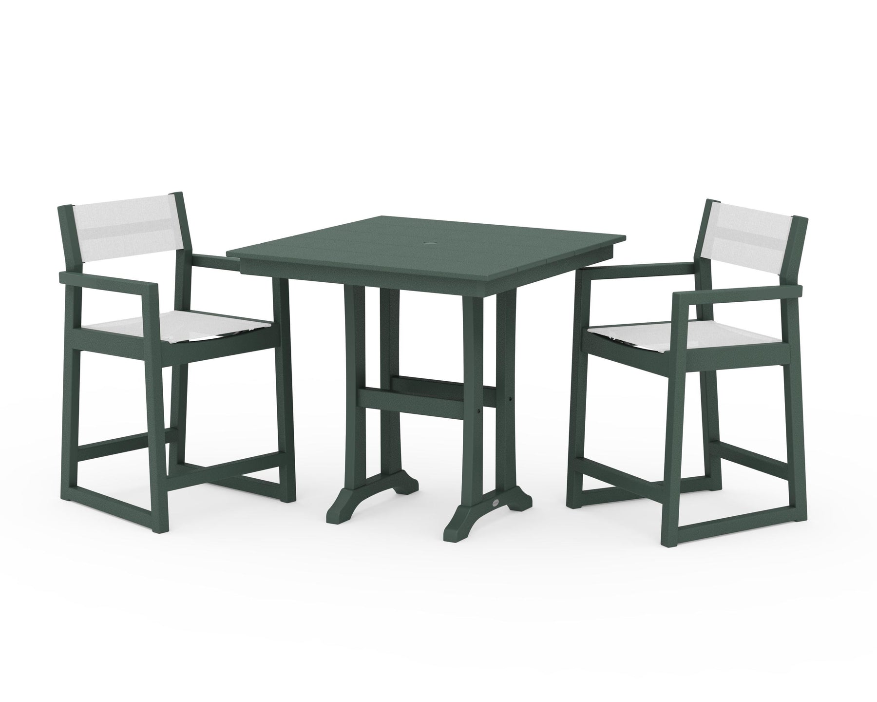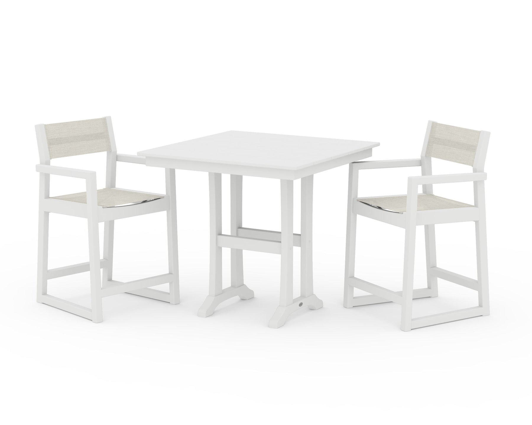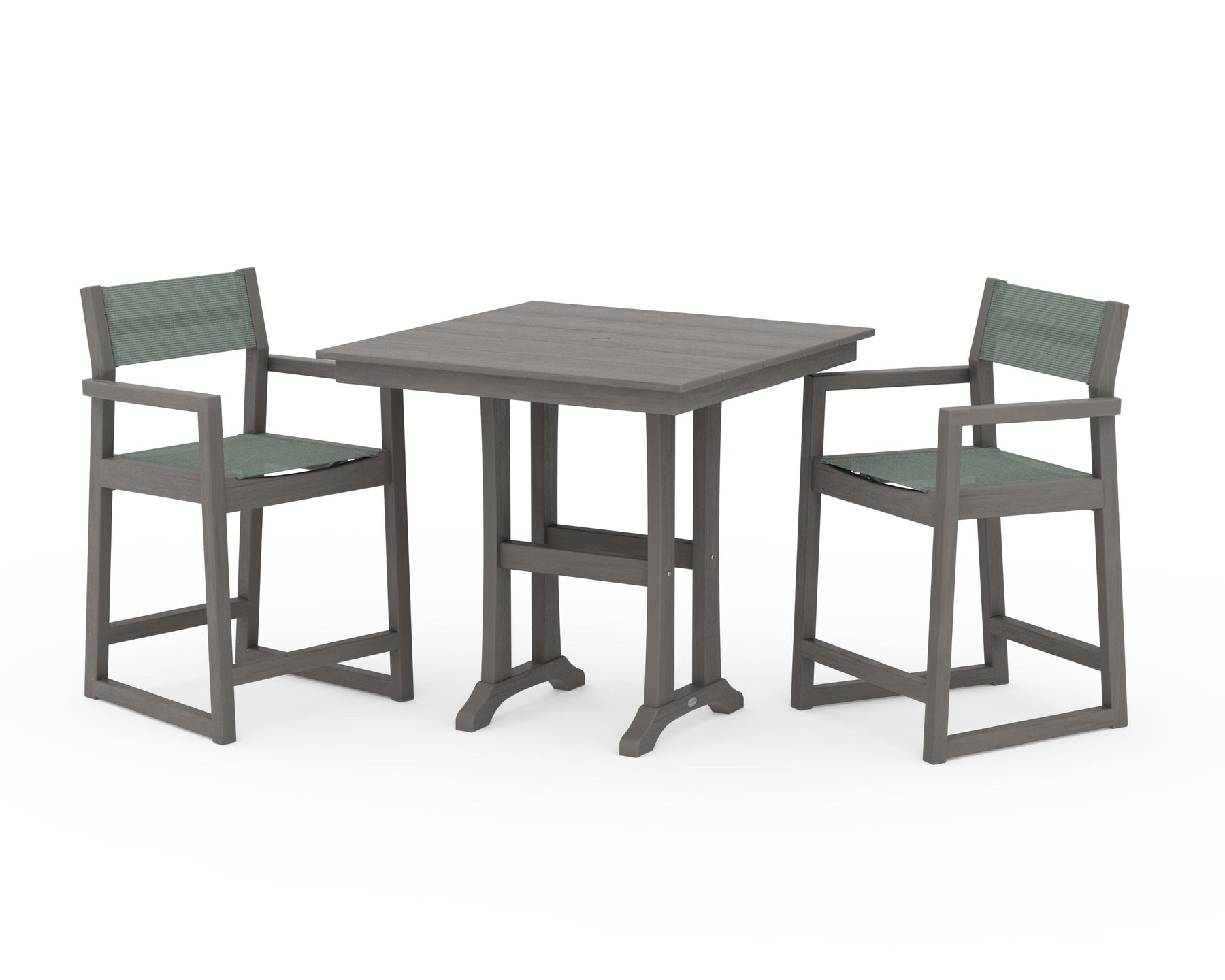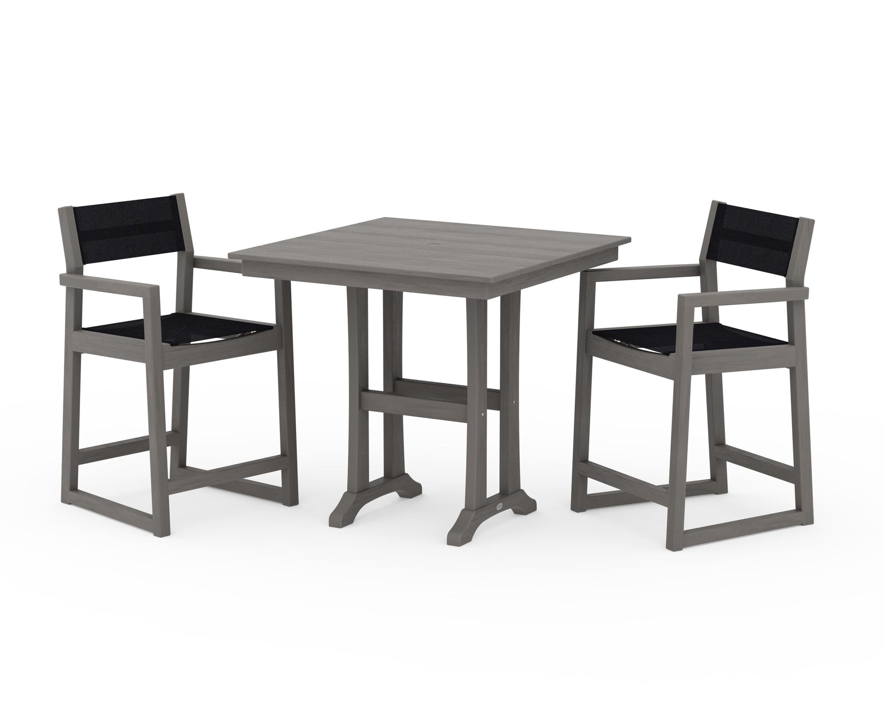 POLYWOOD® EDGE Sling Arm Chair 3-Piece Farmhouse Counter Set with Trestle Legs