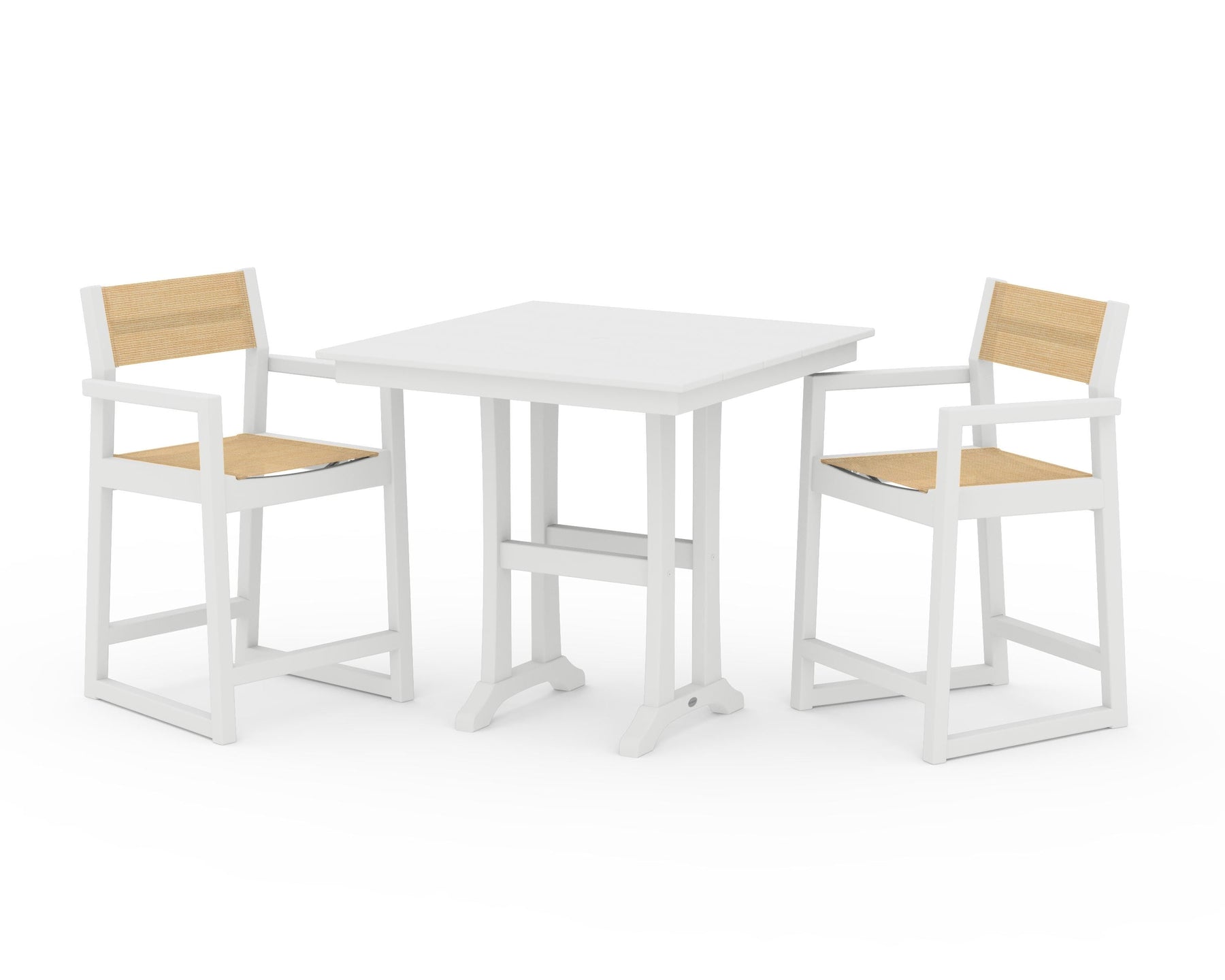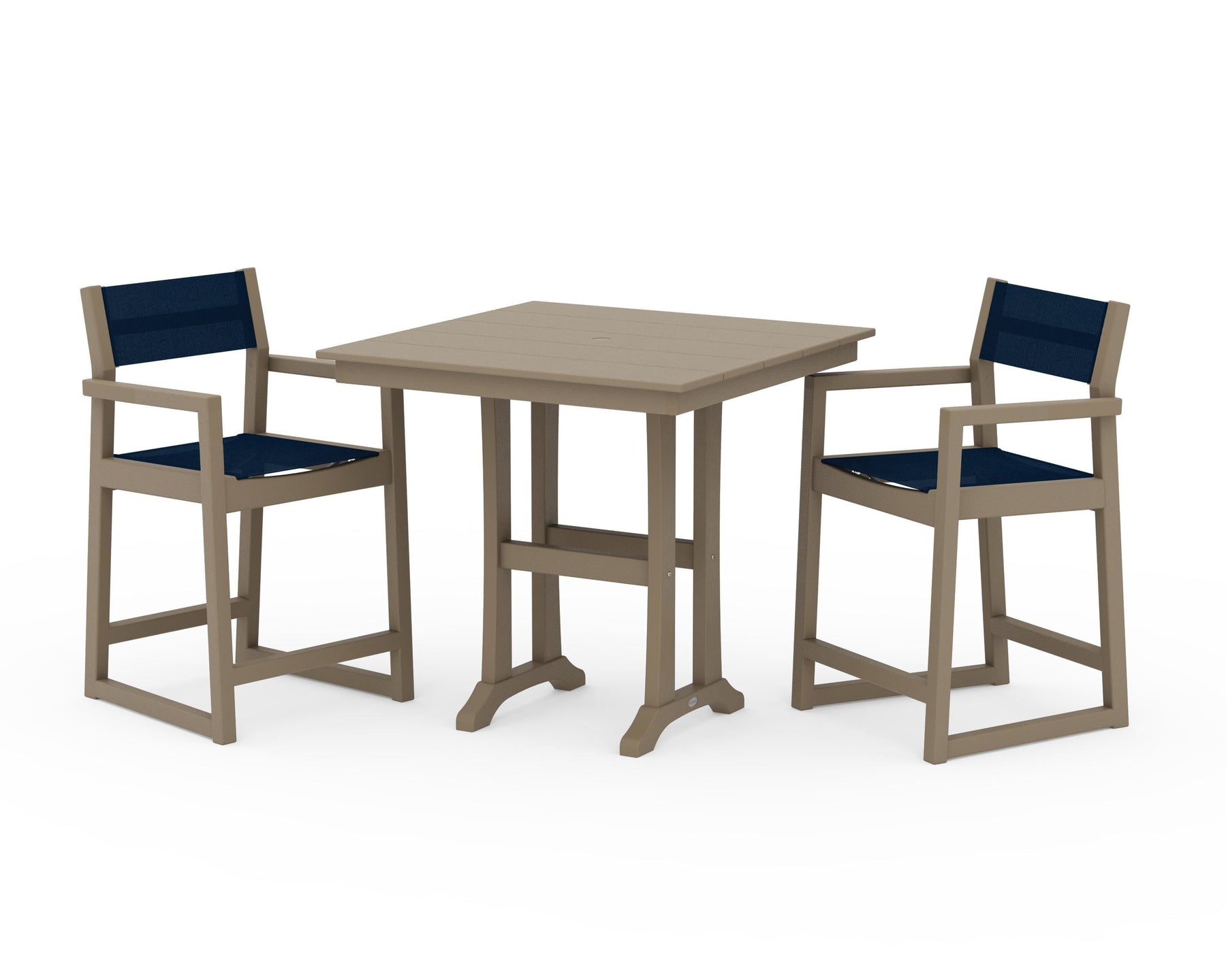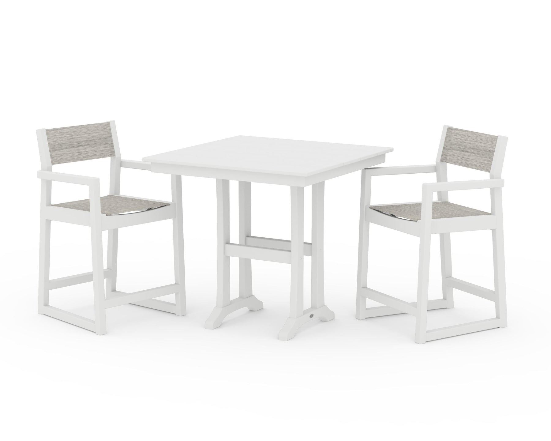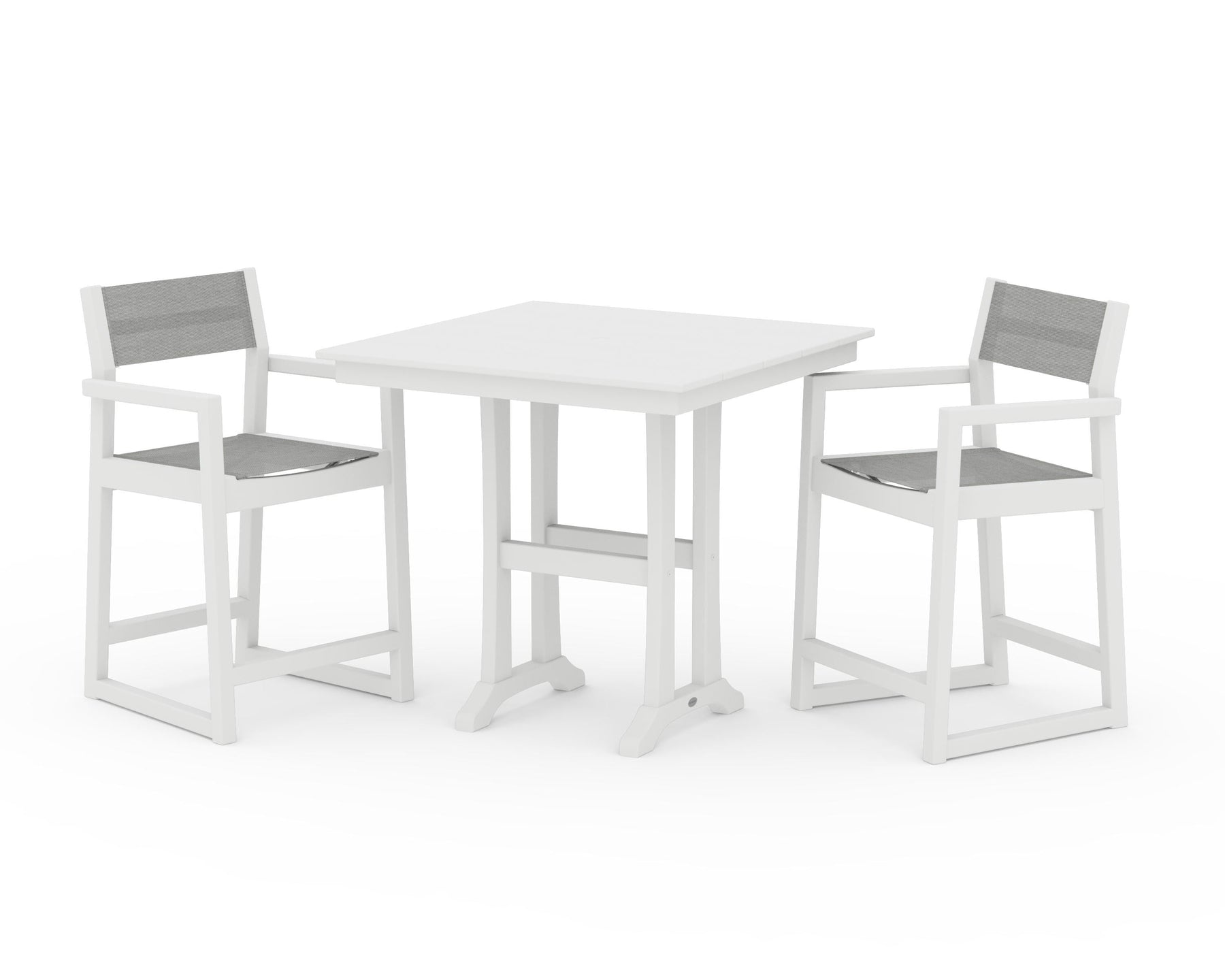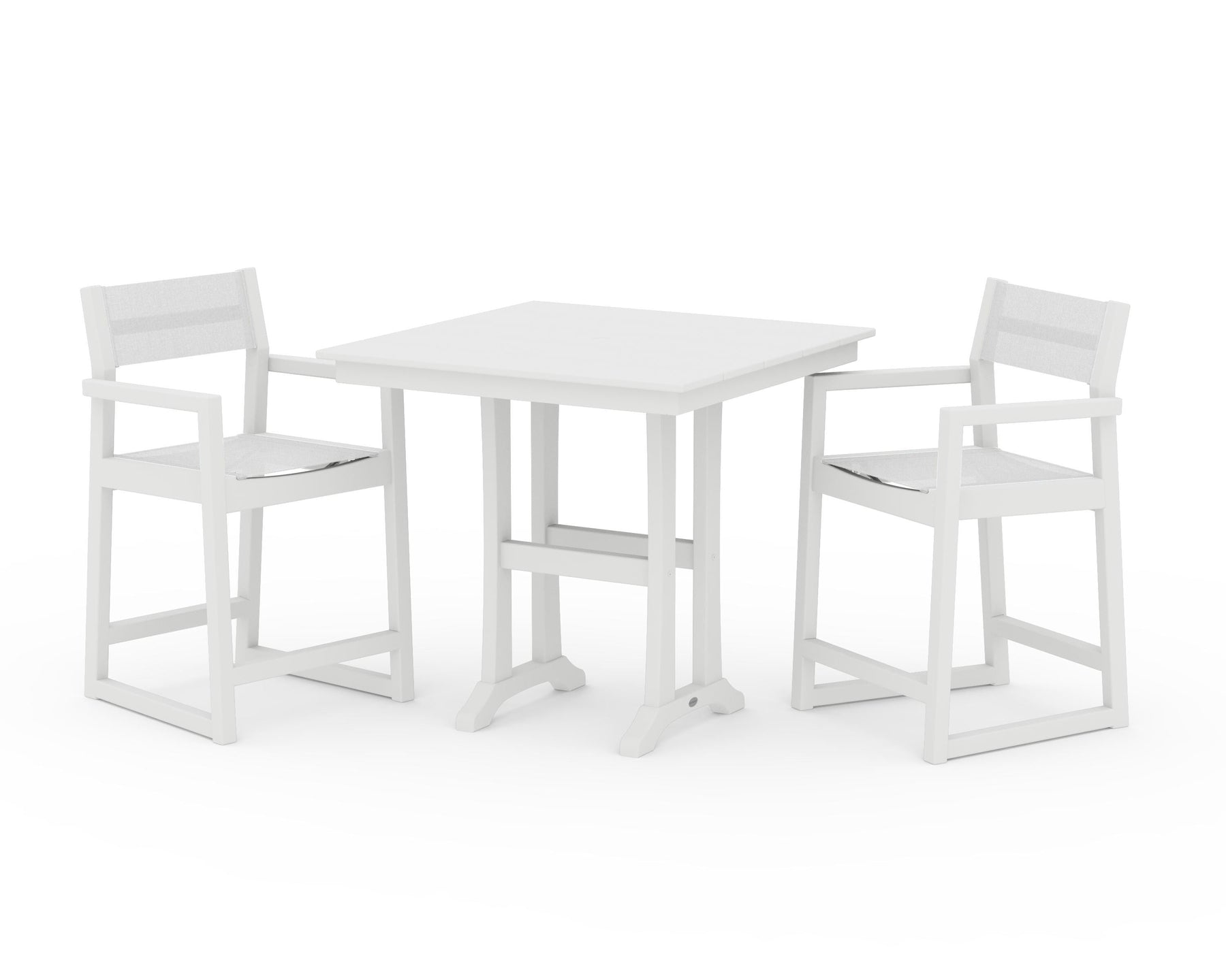 POLYWOOD® EDGE Sling Arm Chair 3-Piece Farmhouse Counter Set with Trestle Legs