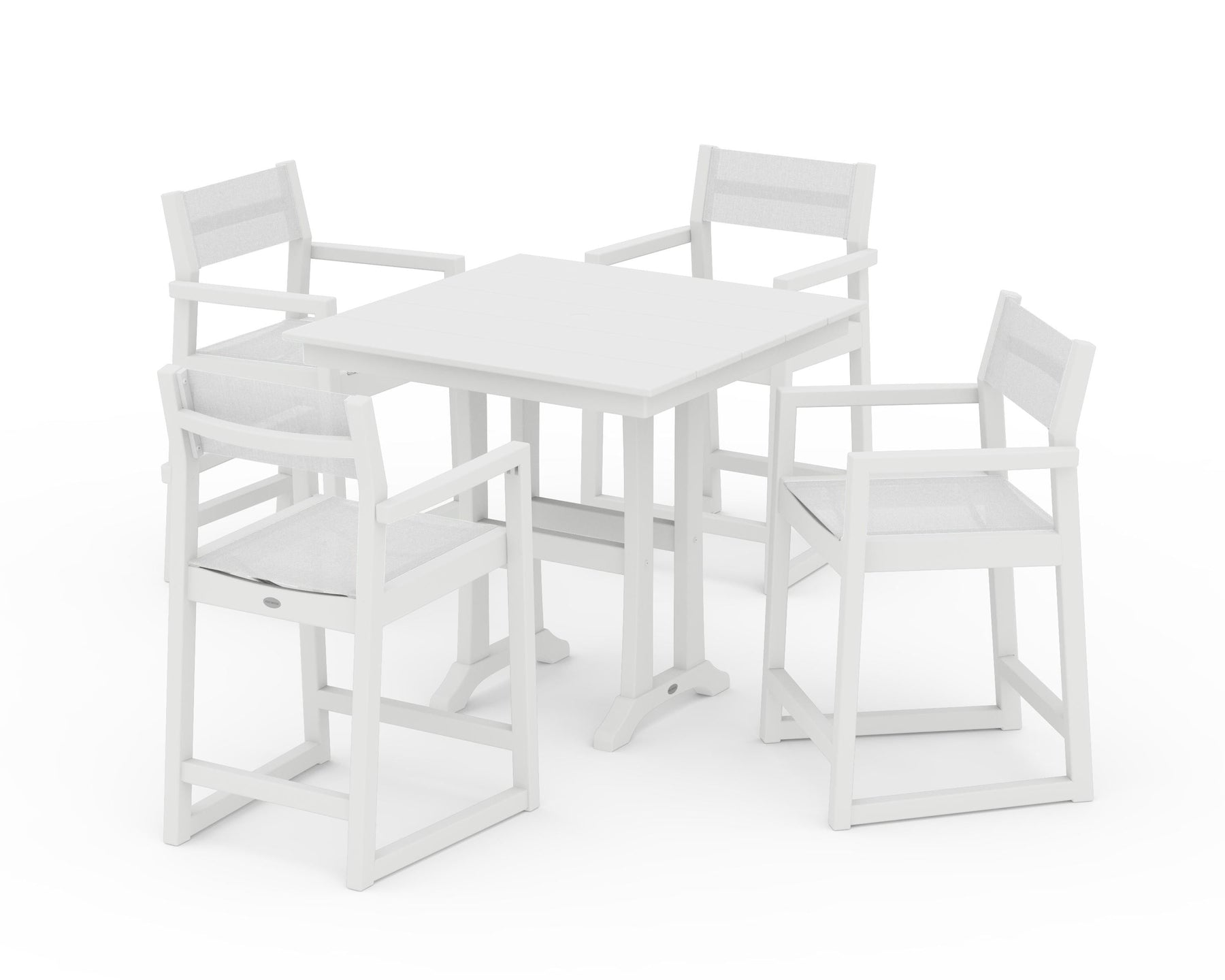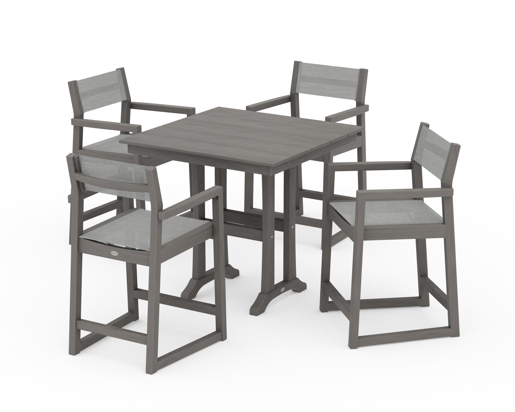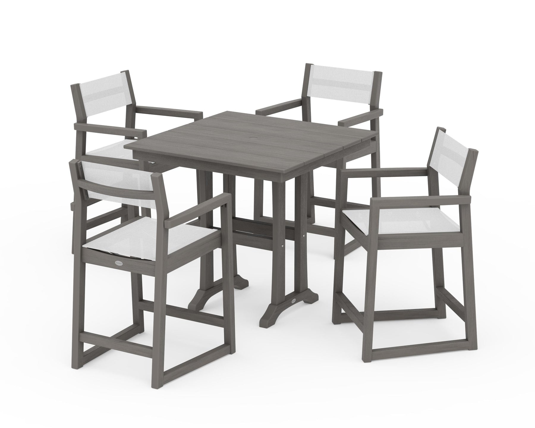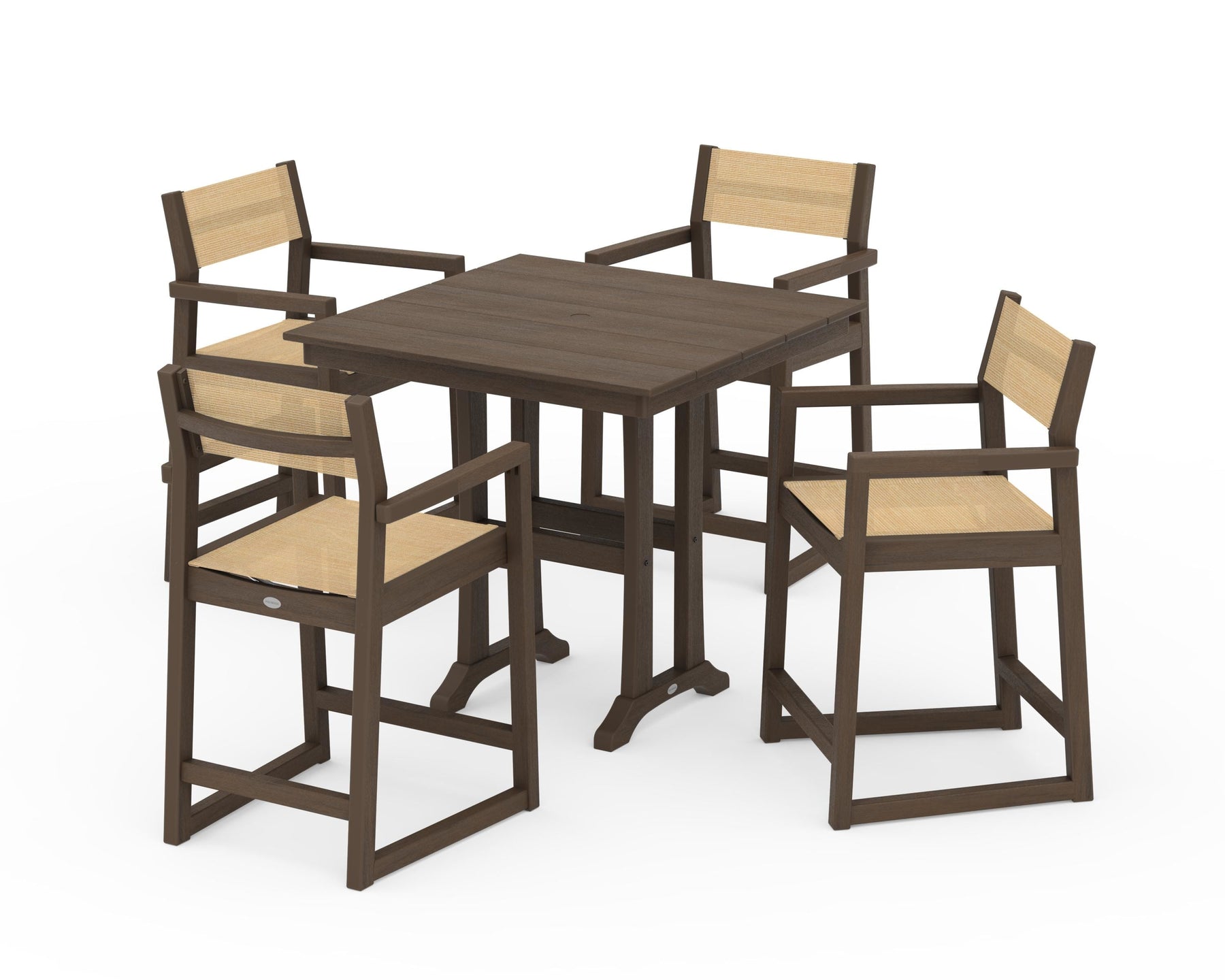 POLYWOOD® EDGE Sling Arm Chair 5-Piece Farmhouse Counter Set with Trestle Legs