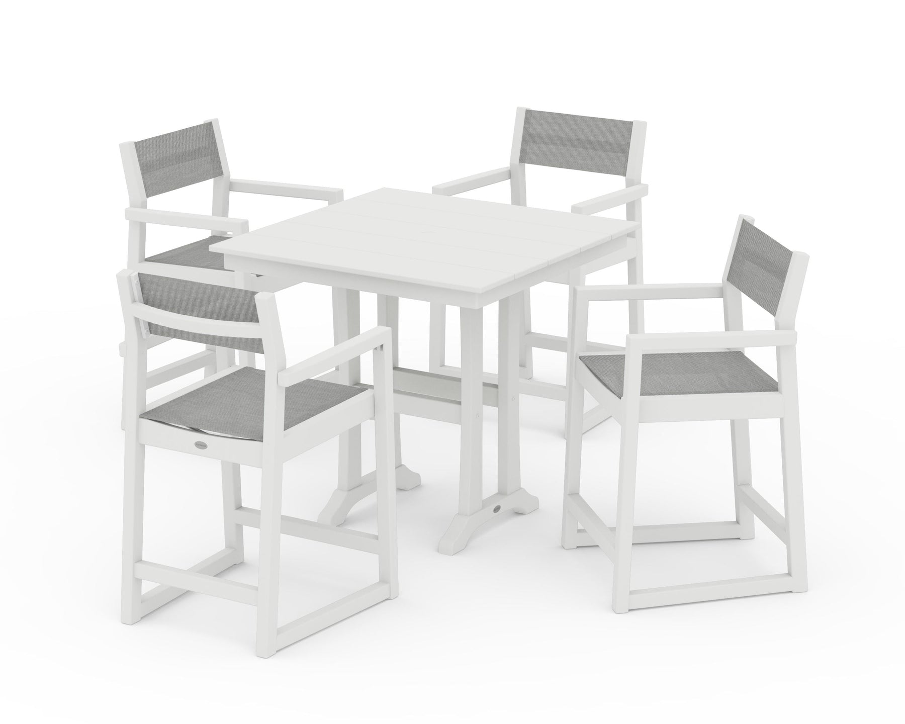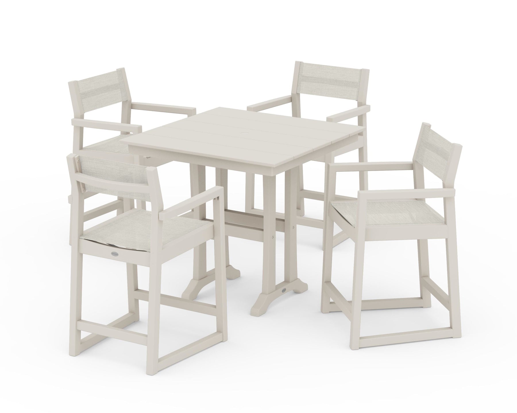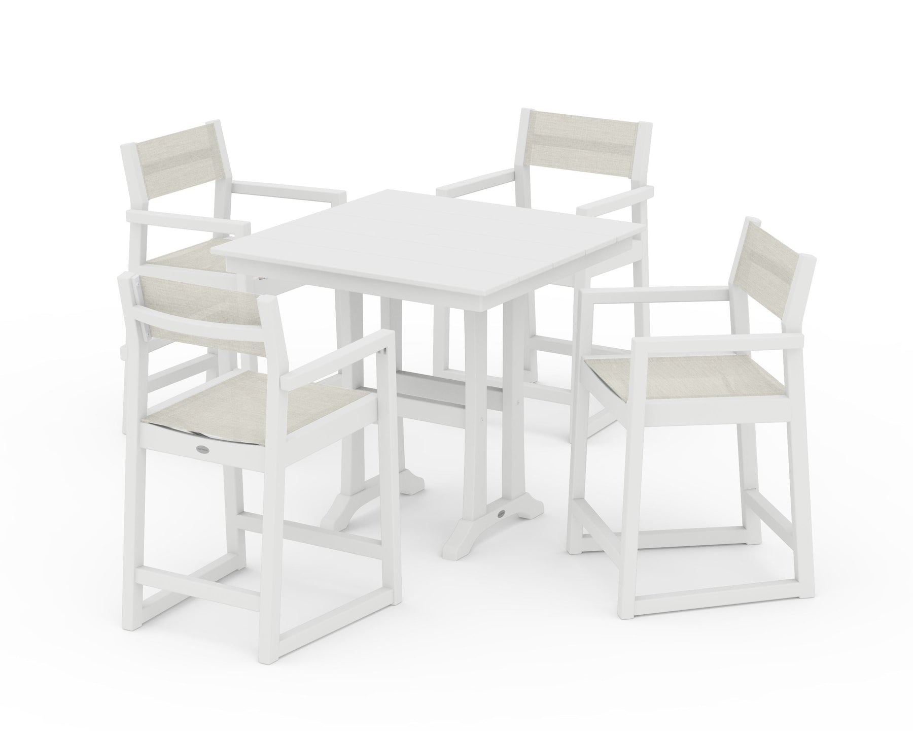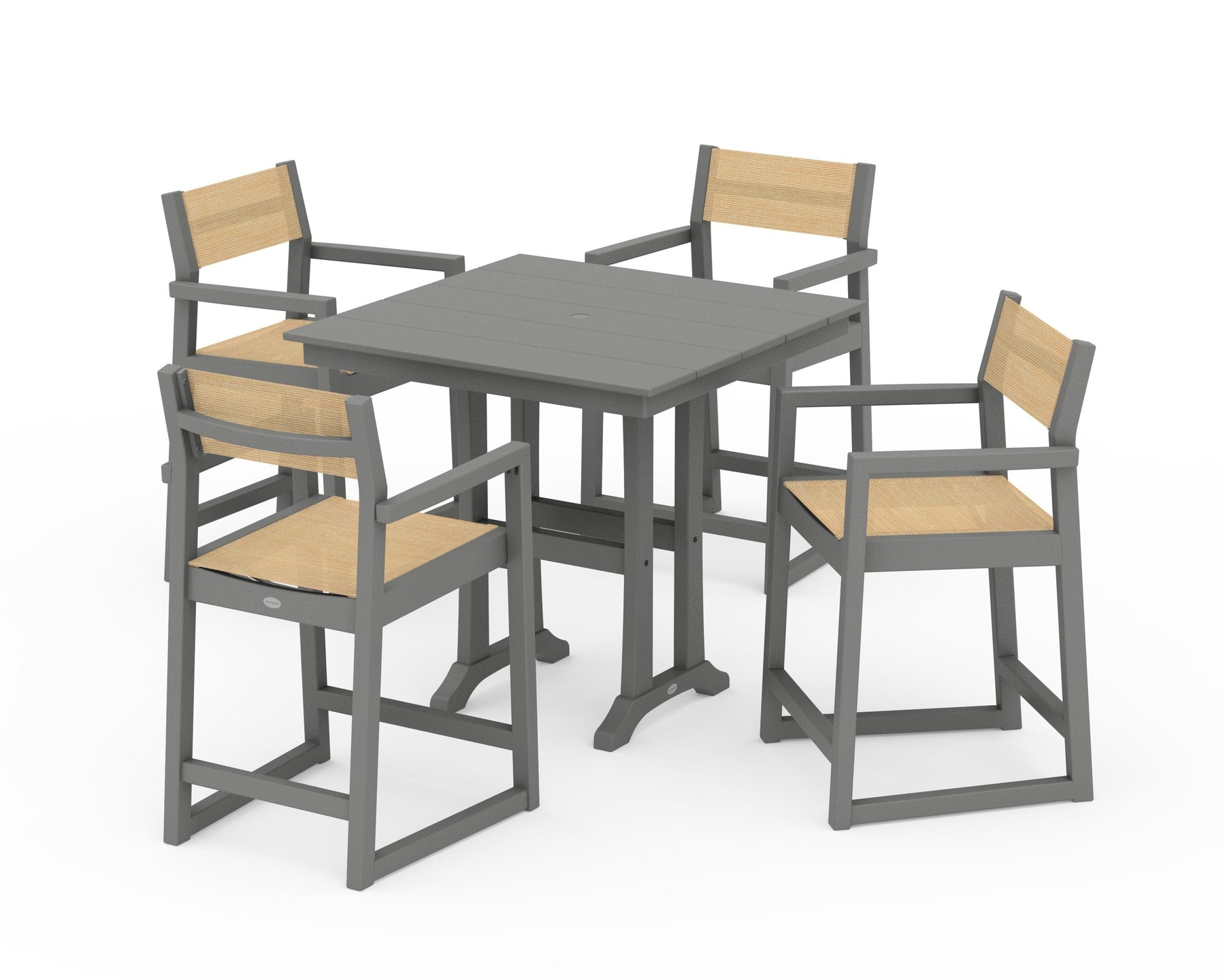 POLYWOOD® EDGE Sling Arm Chair 5-Piece Farmhouse Counter Set with Trestle Legs
