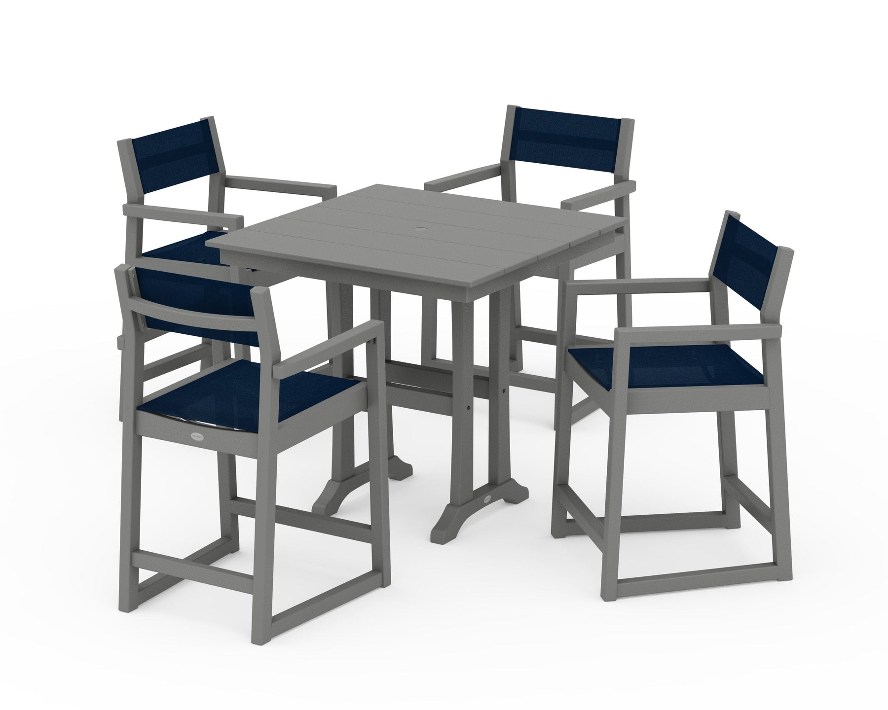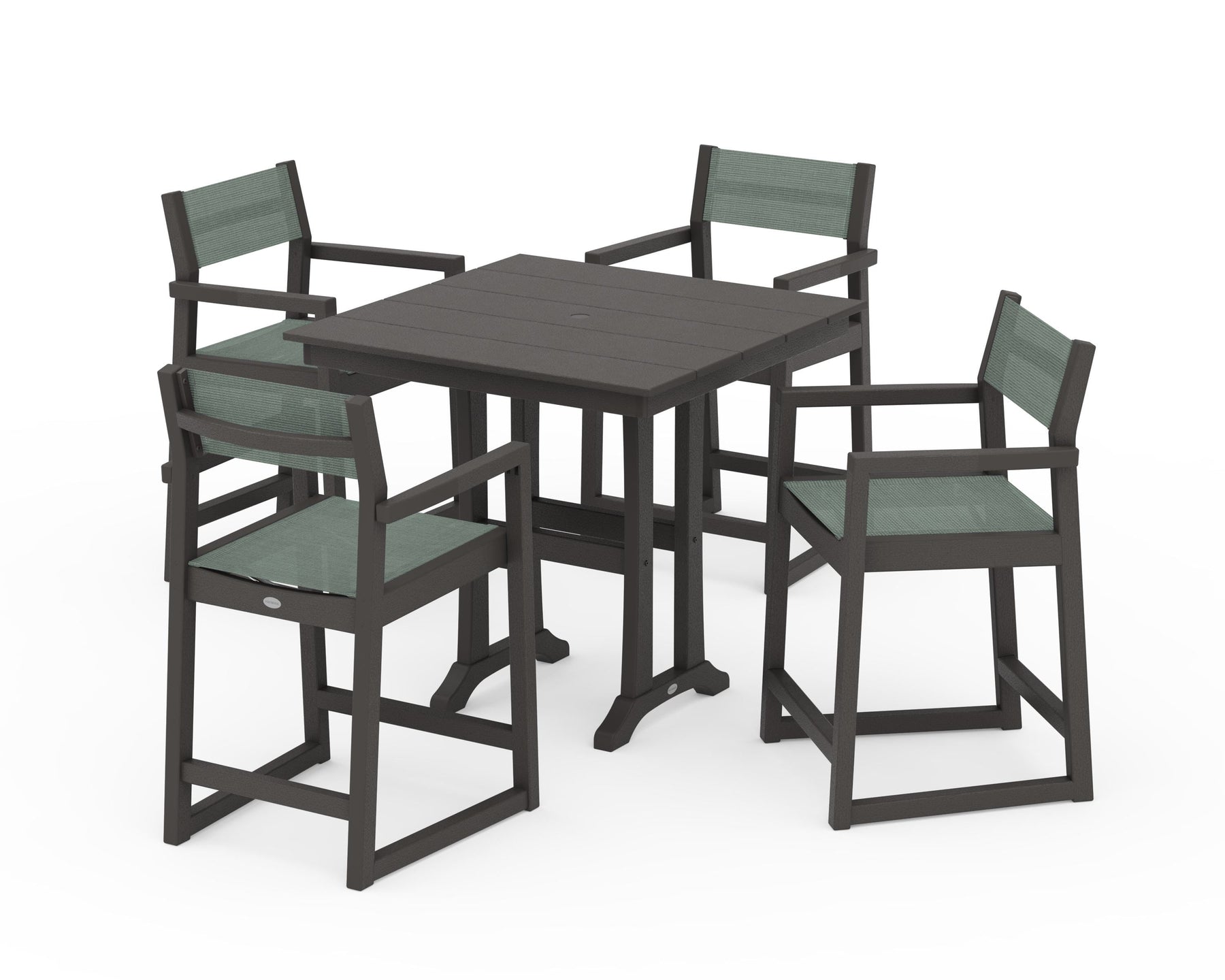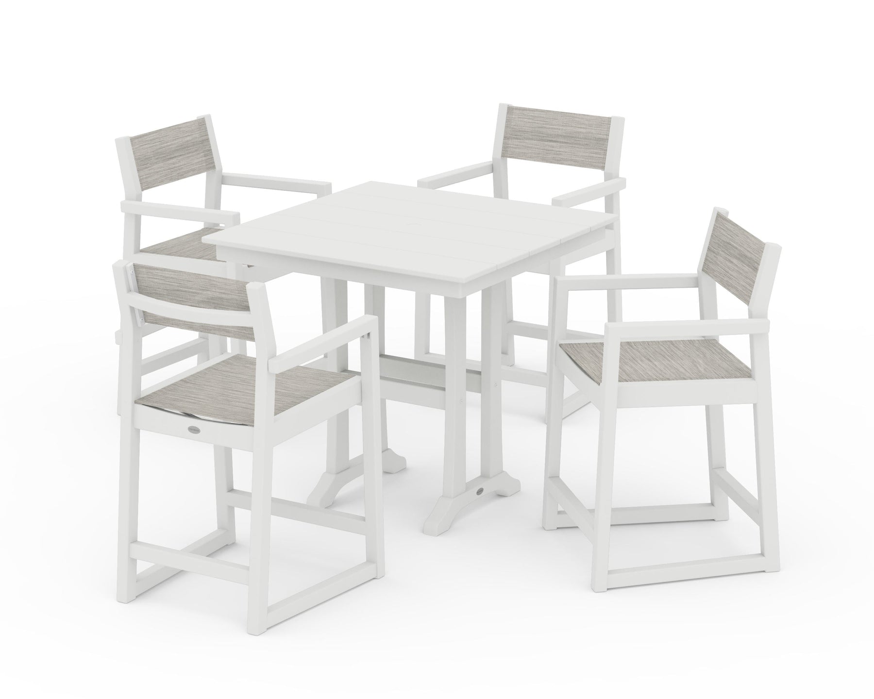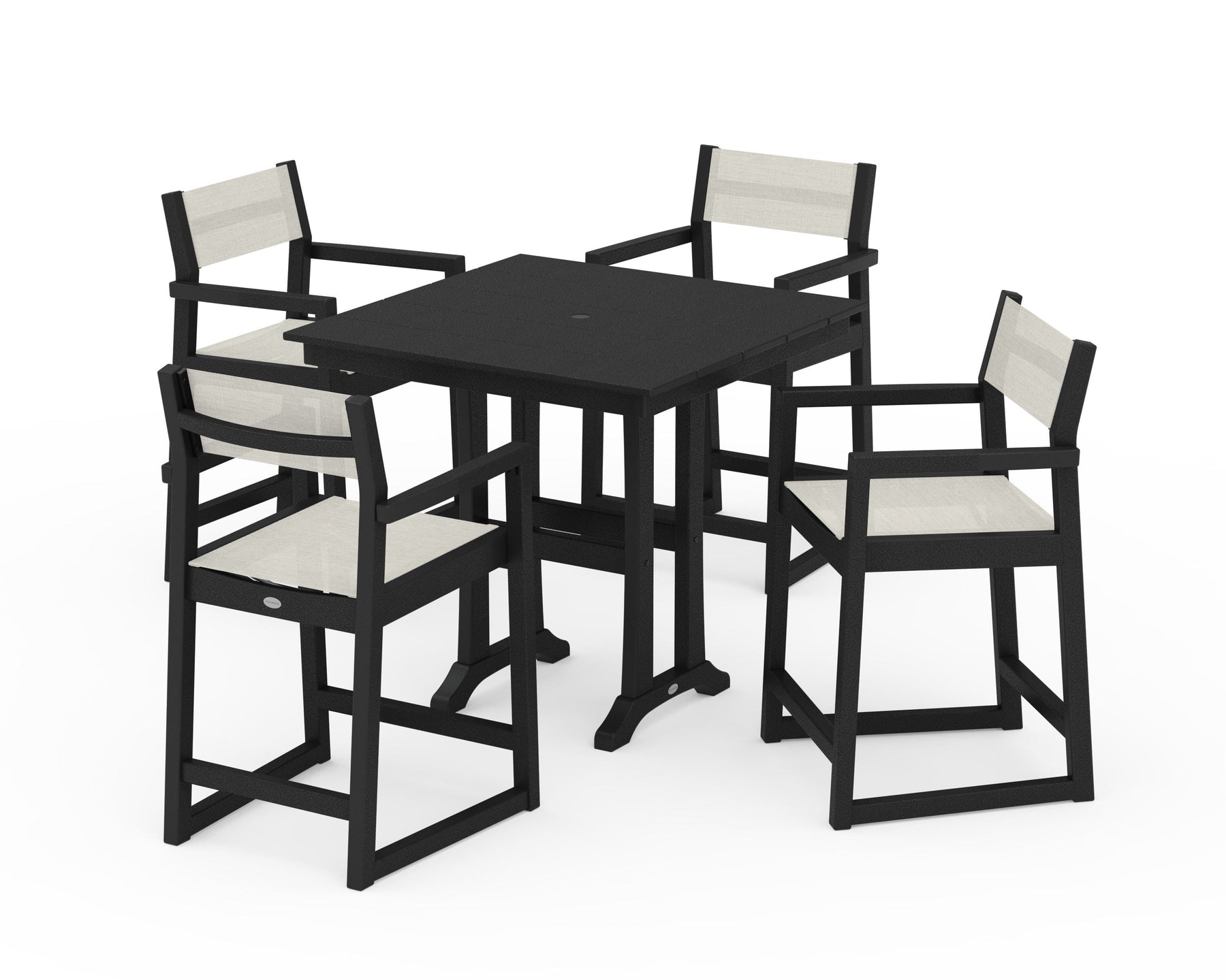POLYWOOD® EDGE Sling Arm Chair 5-Piece Farmhouse Counter Set with Trestle Legs