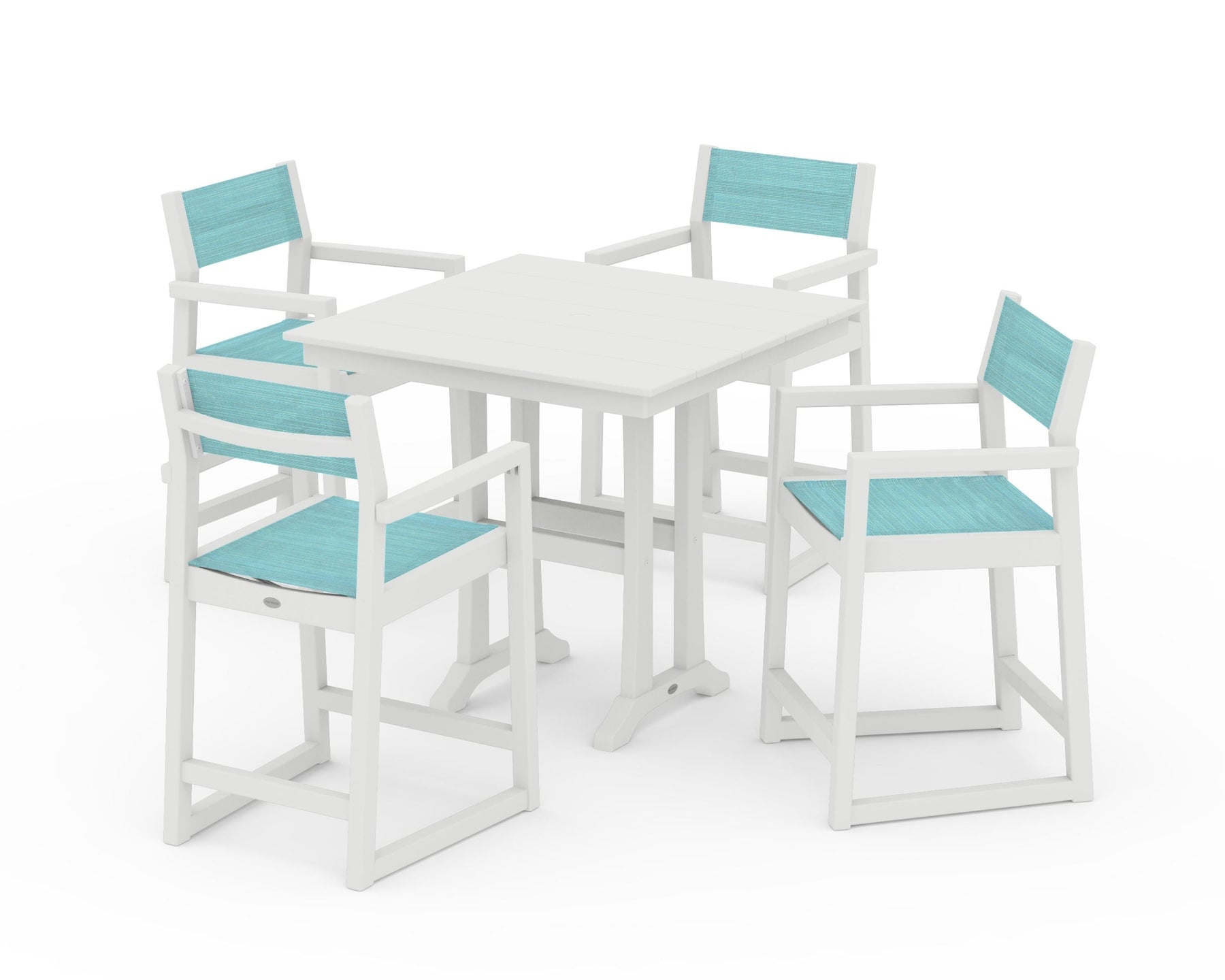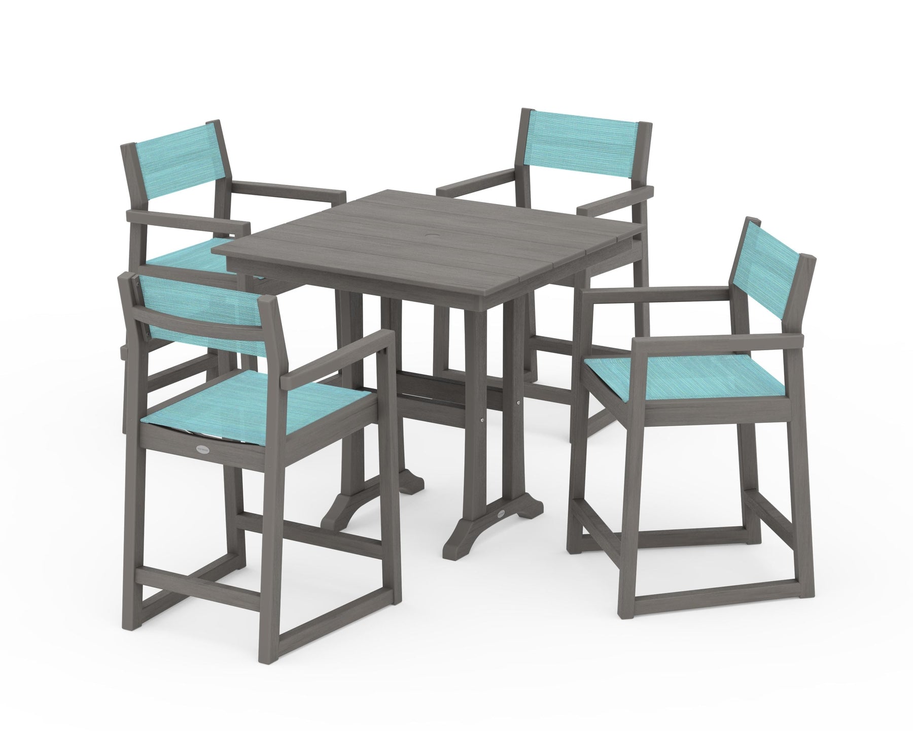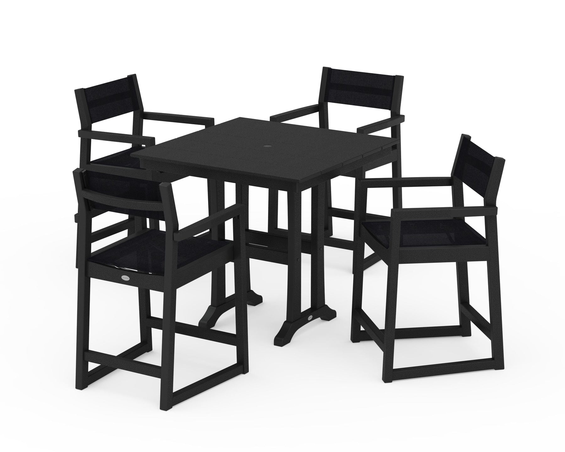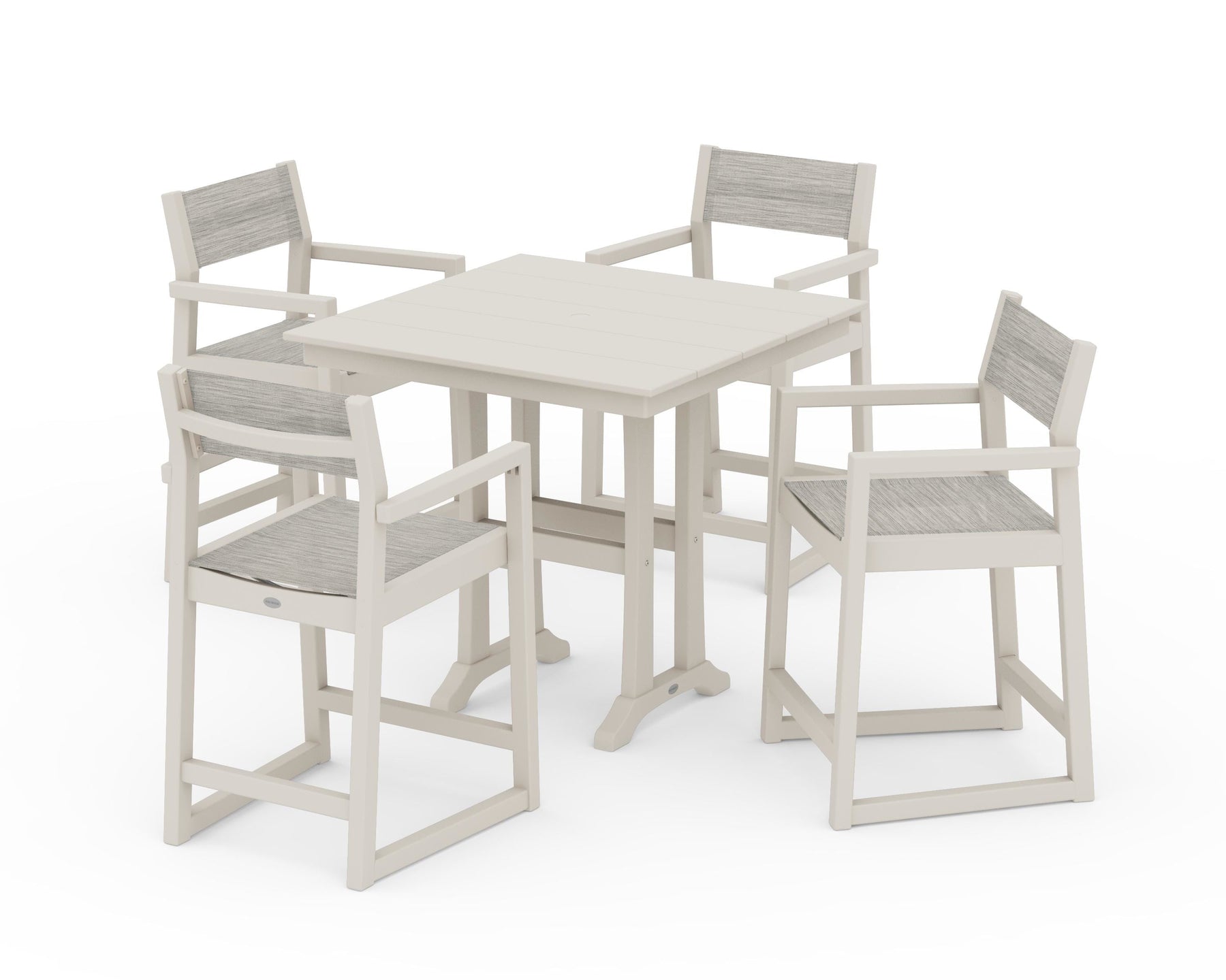 POLYWOOD® EDGE Sling Arm Chair 5-Piece Farmhouse Counter Set with Trestle Legs