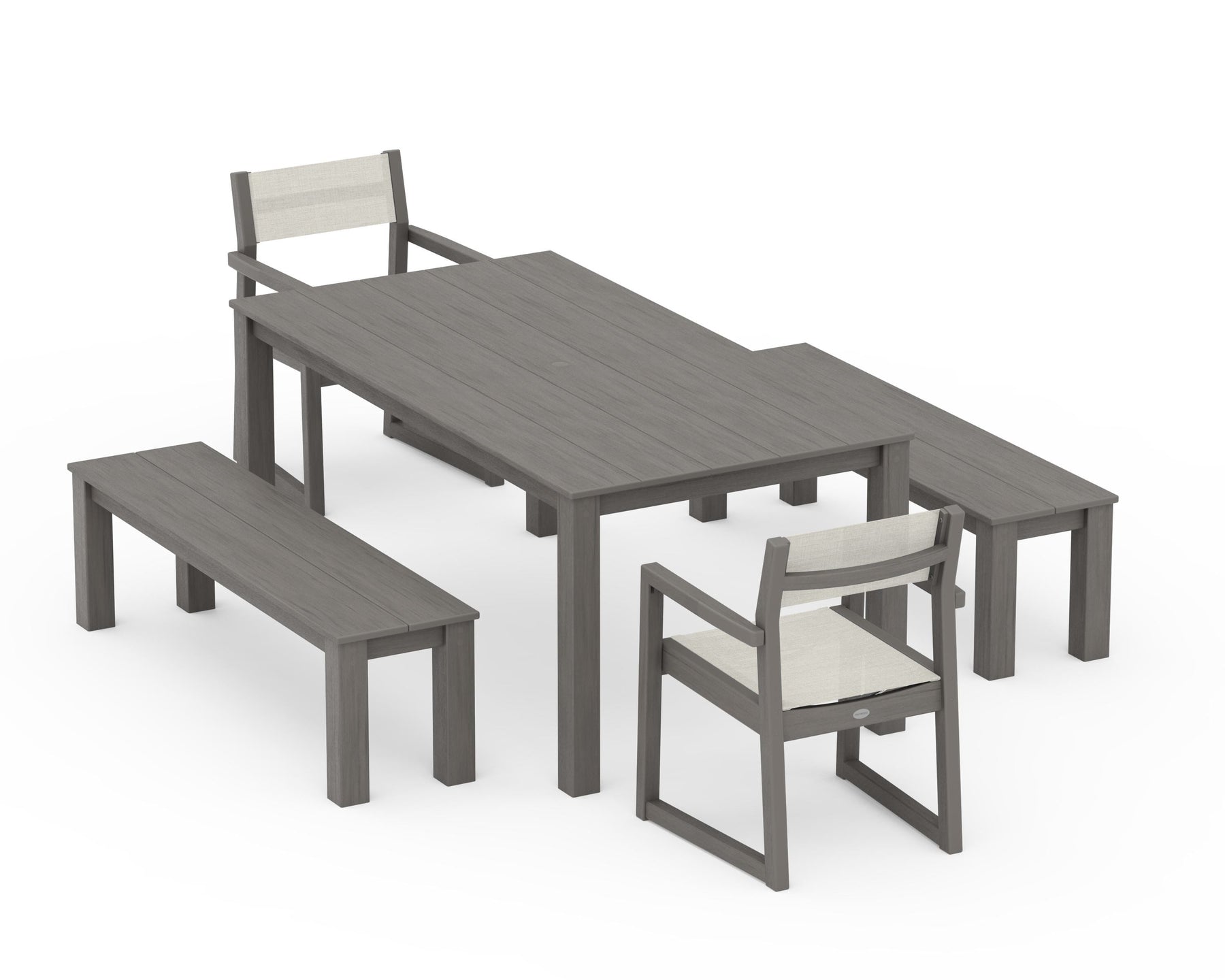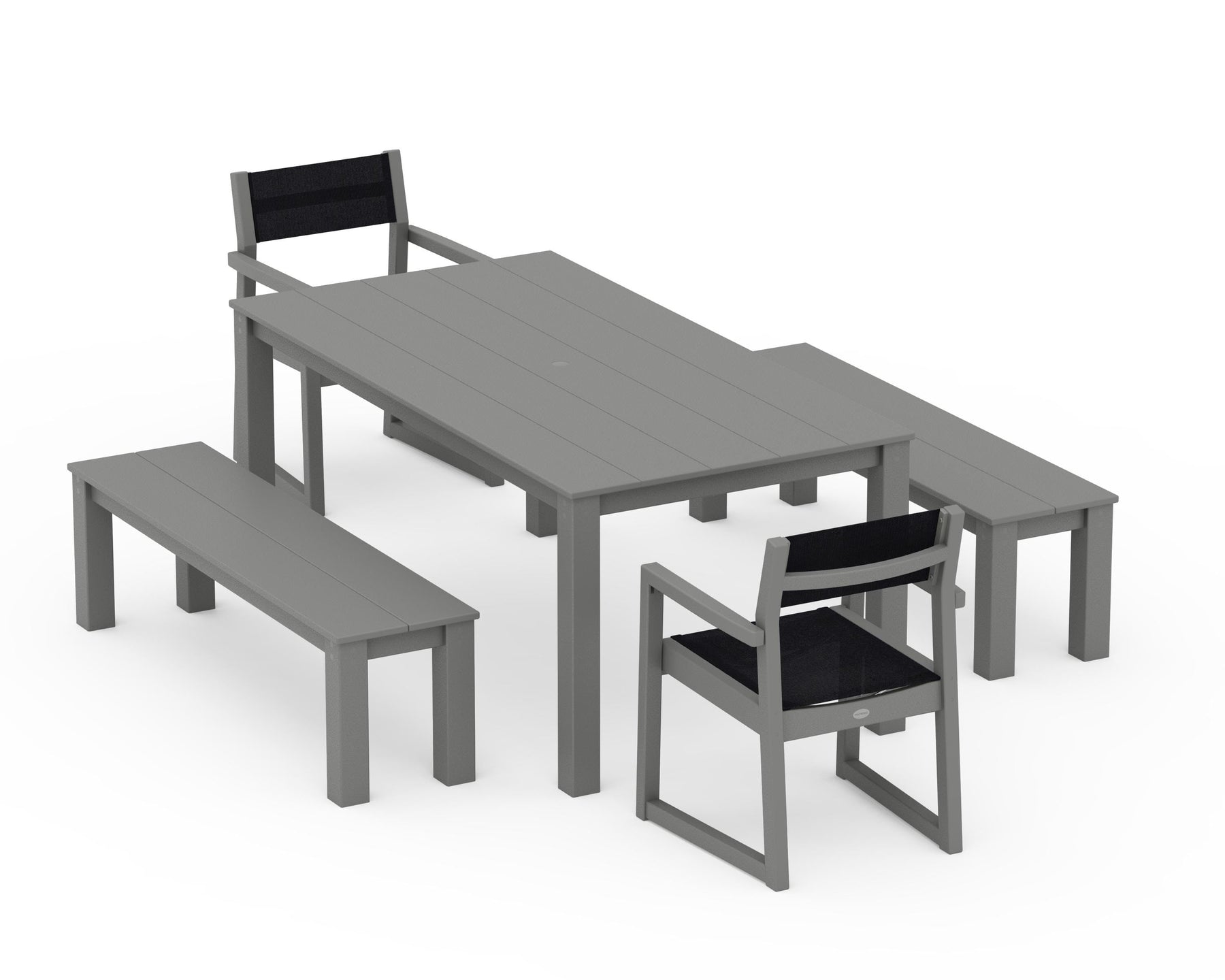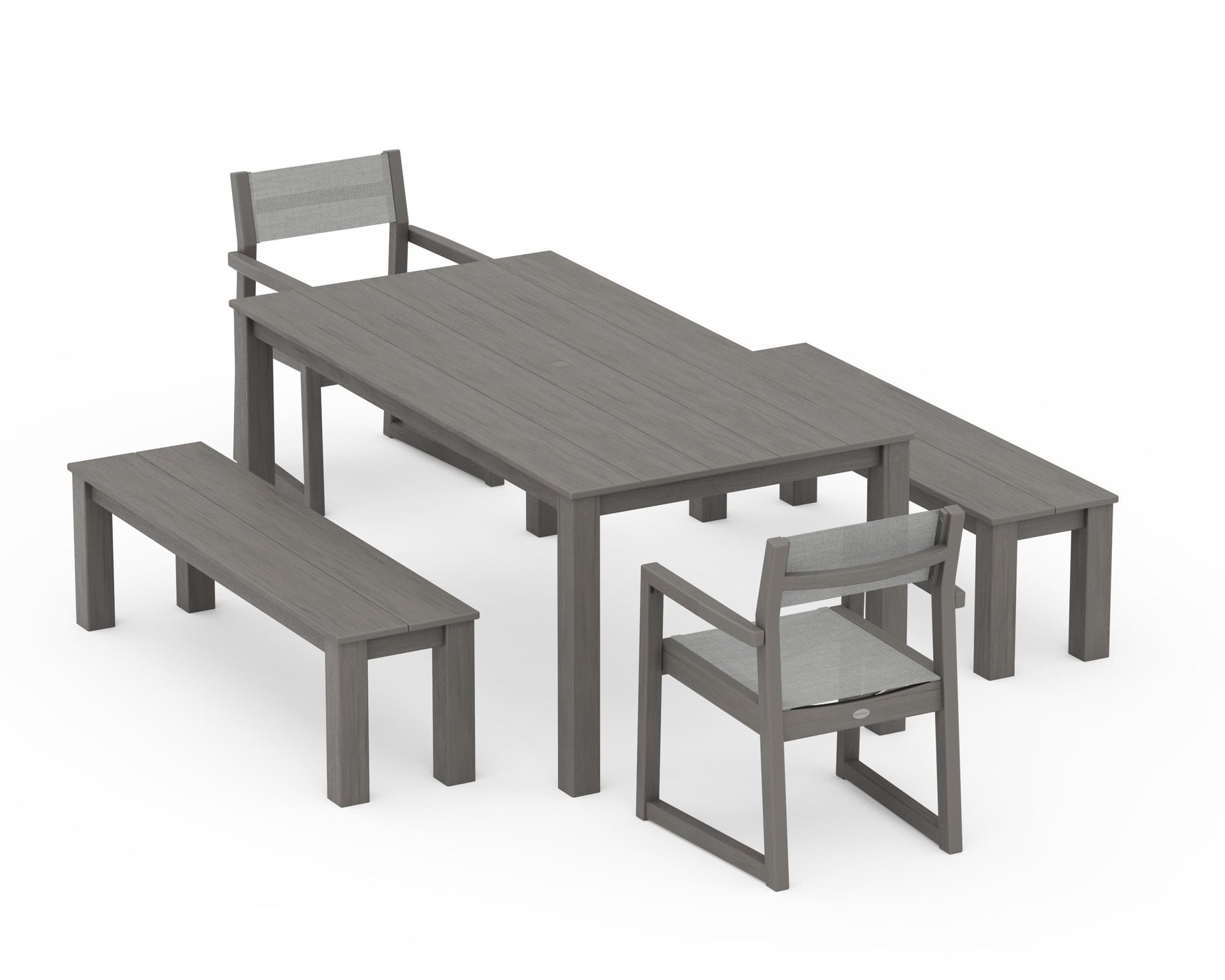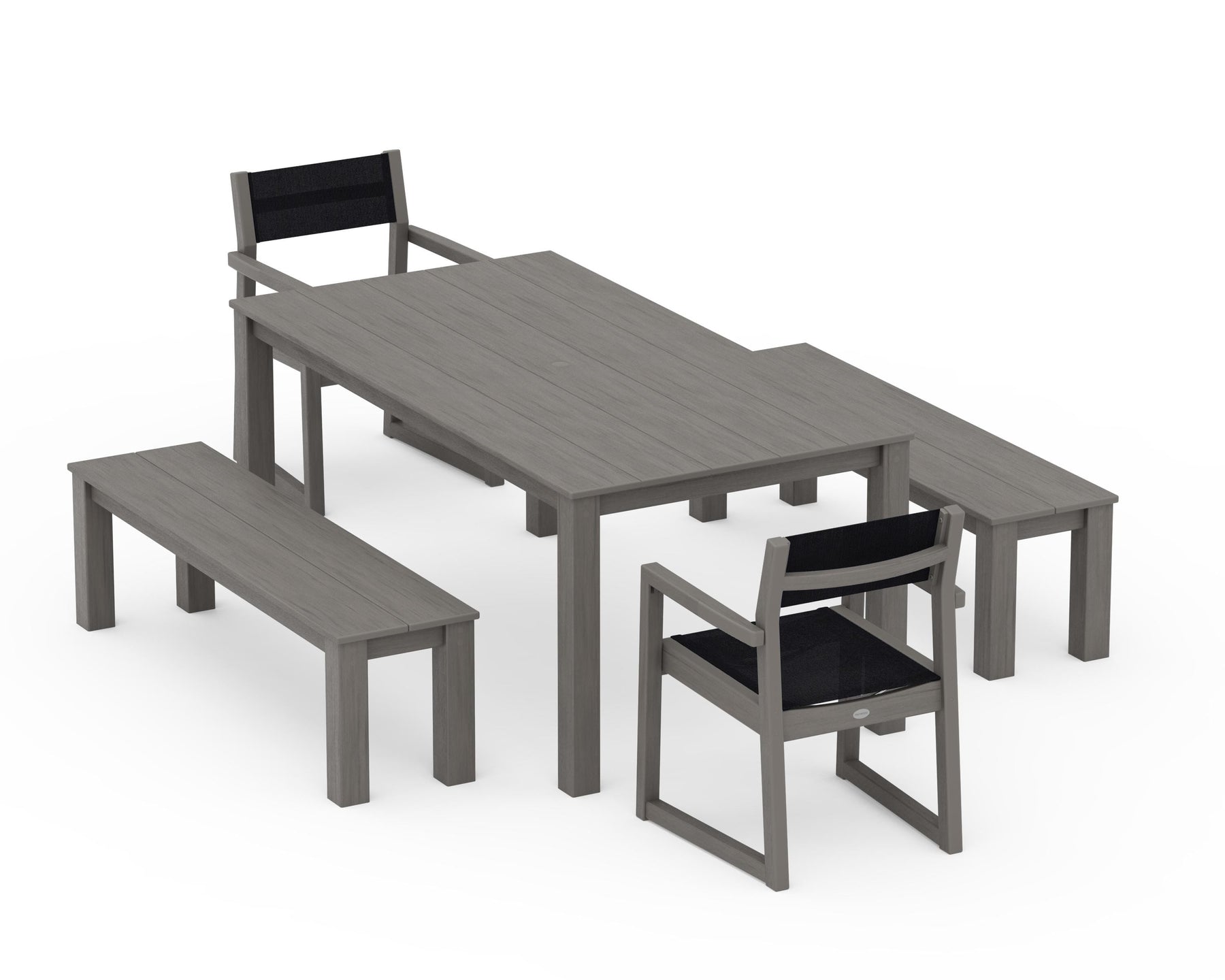 POLYWOOD® EDGE Sling Arm Chair 5-Piece Parsons Dining Set with Benches