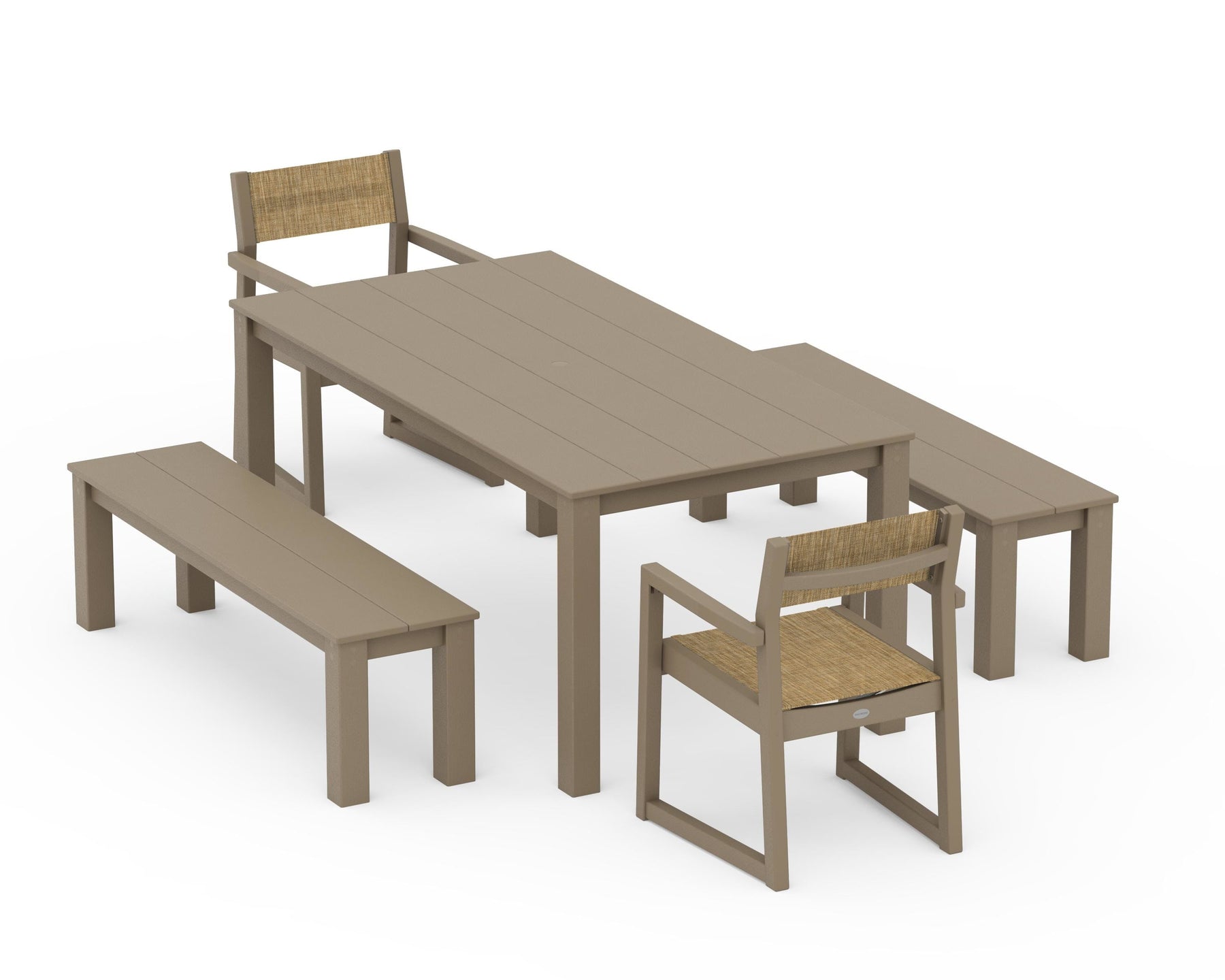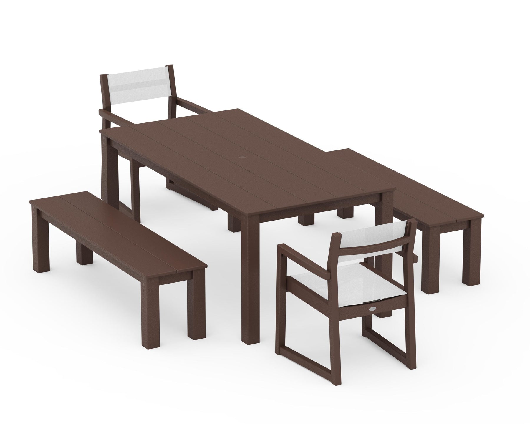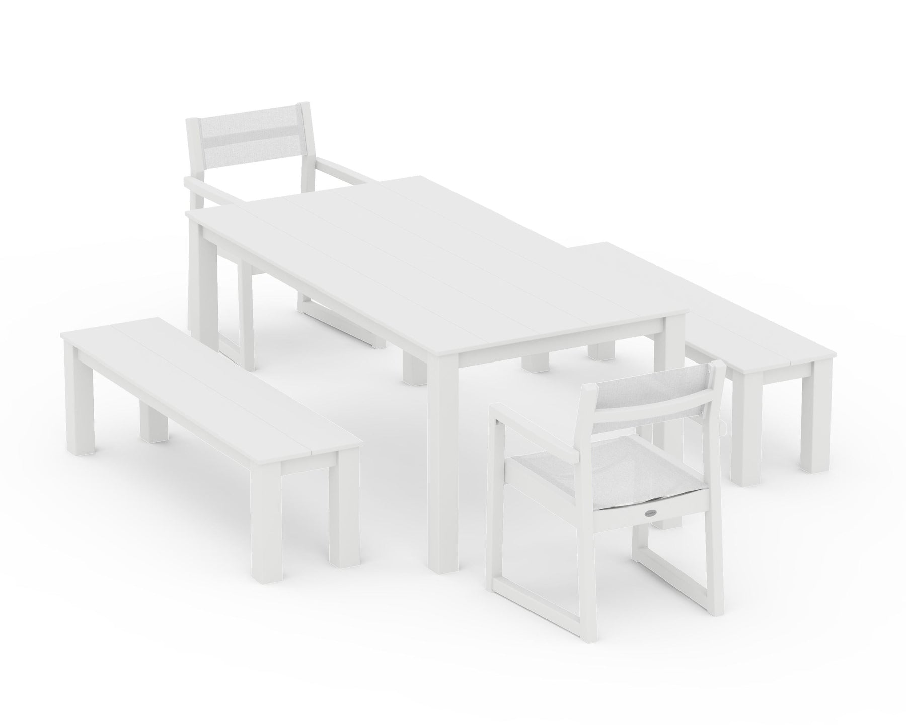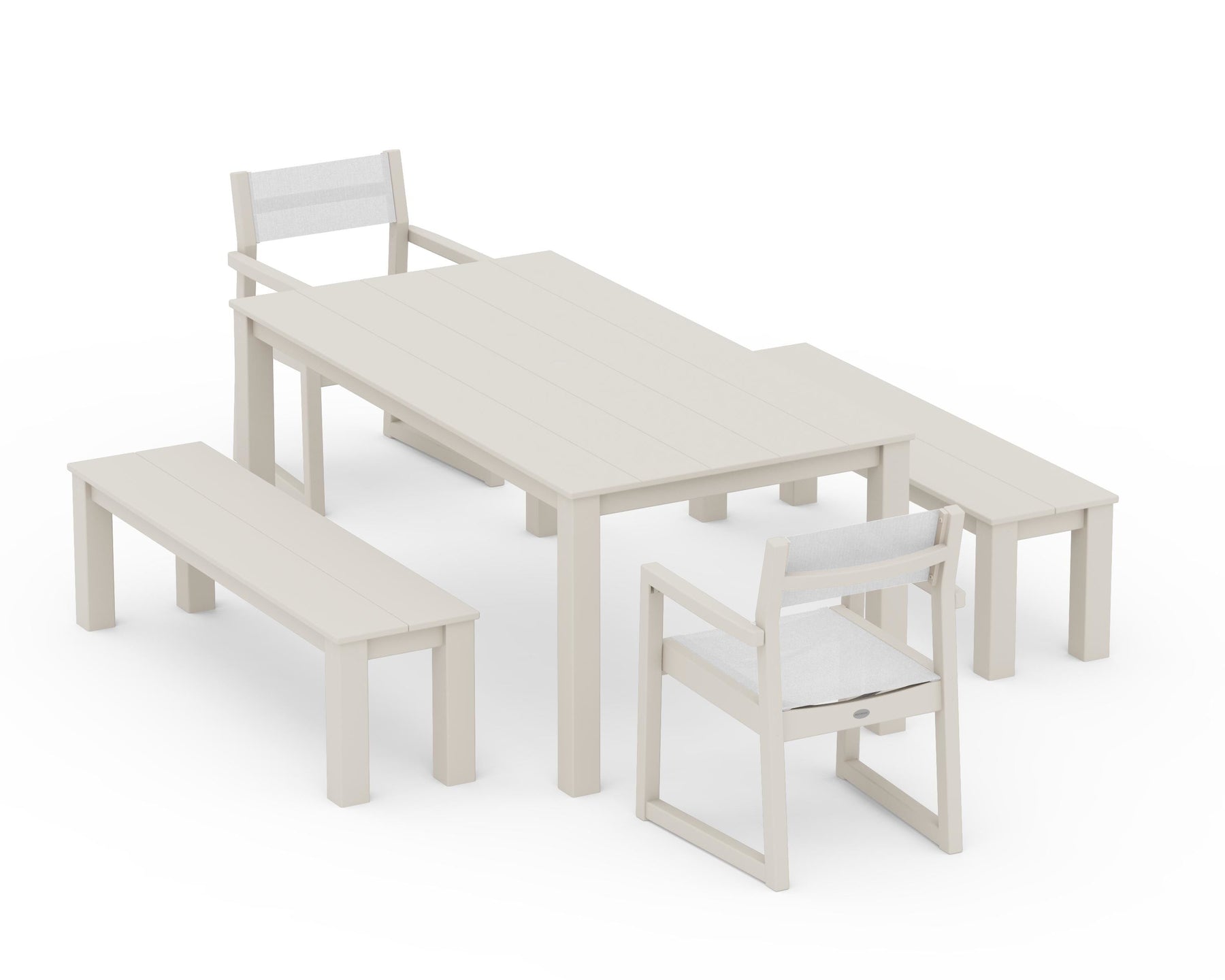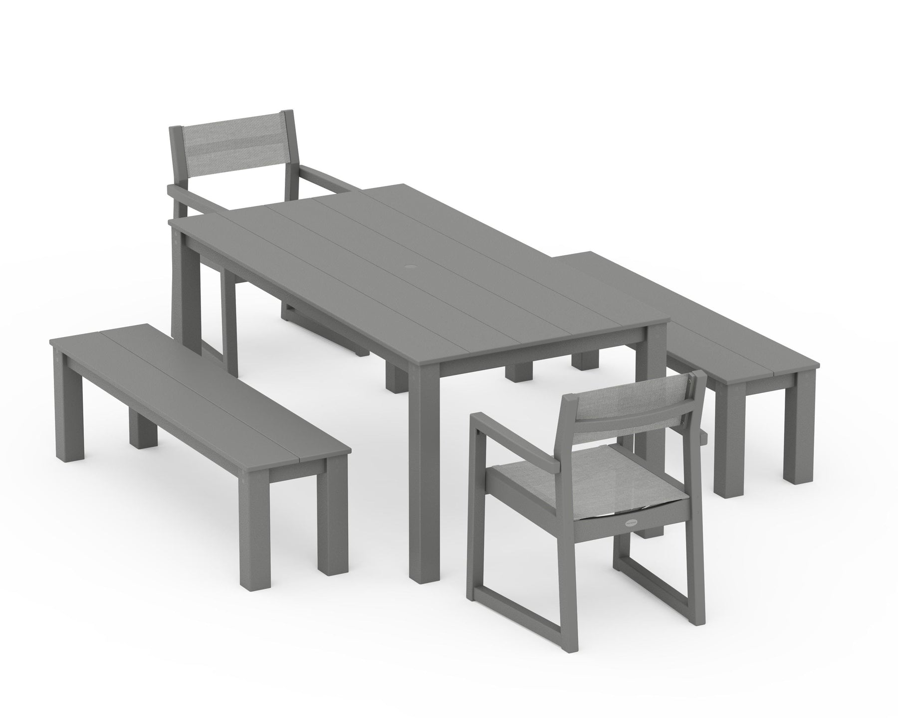 POLYWOOD® EDGE Sling Arm Chair 5-Piece Parsons Dining Set with Benches