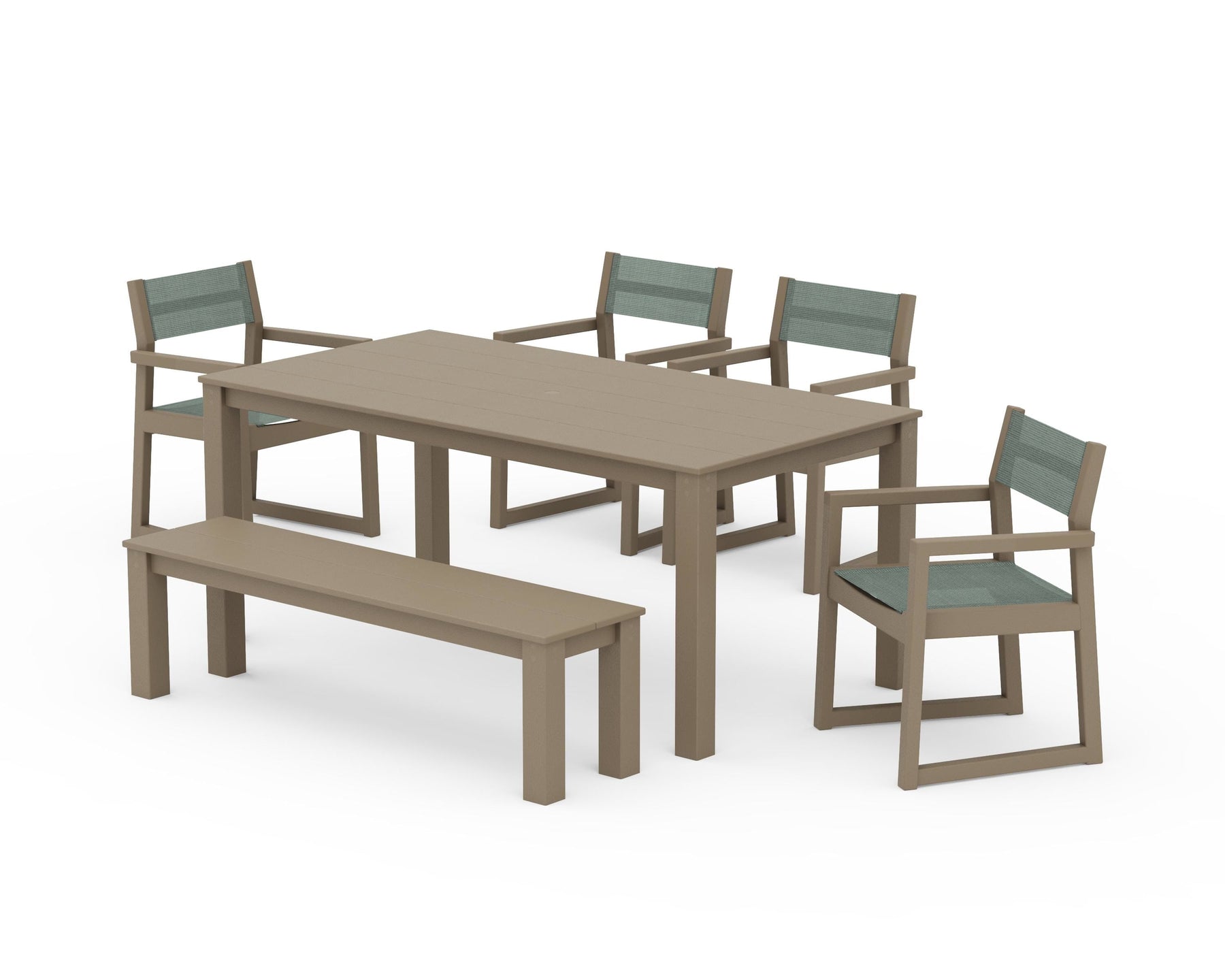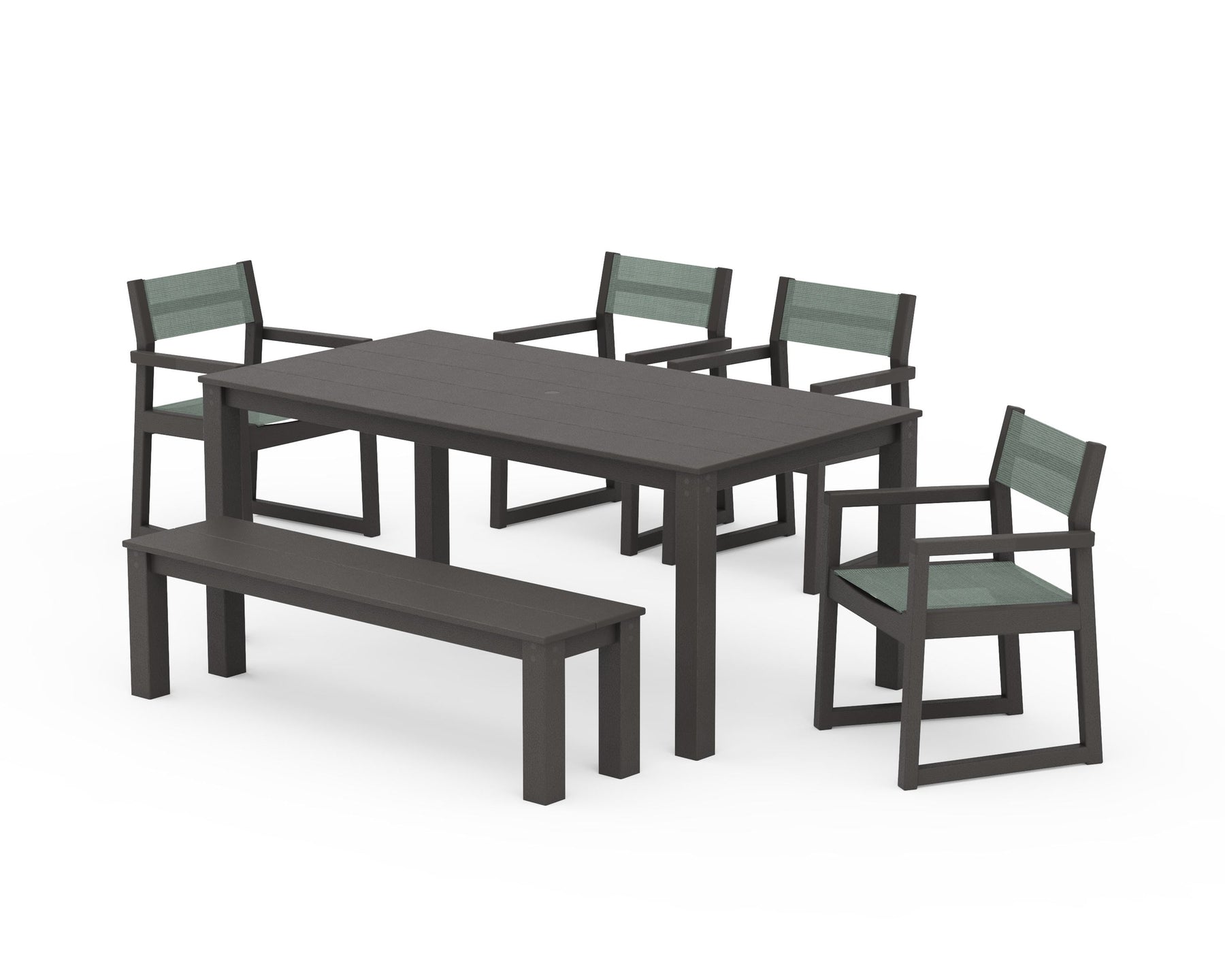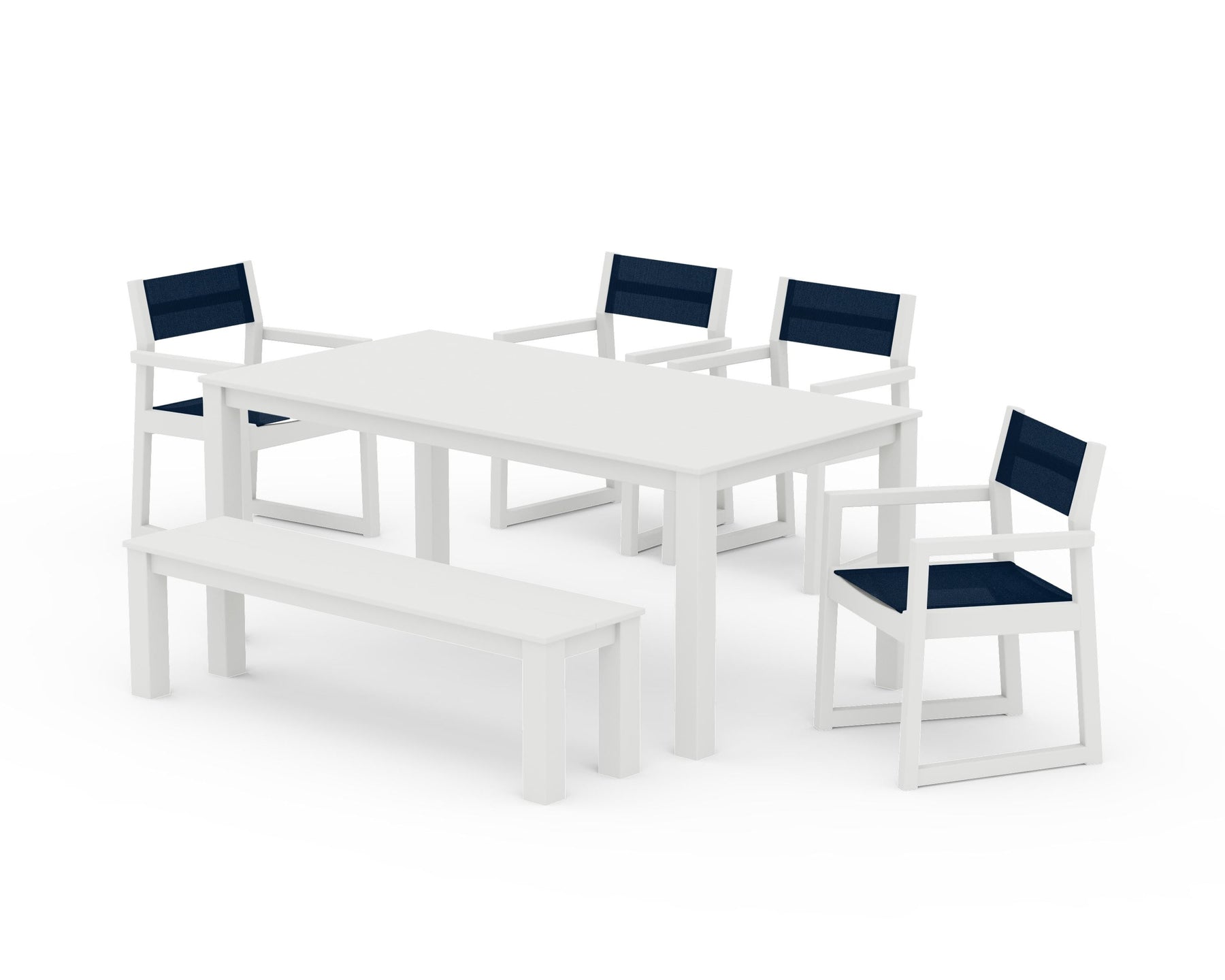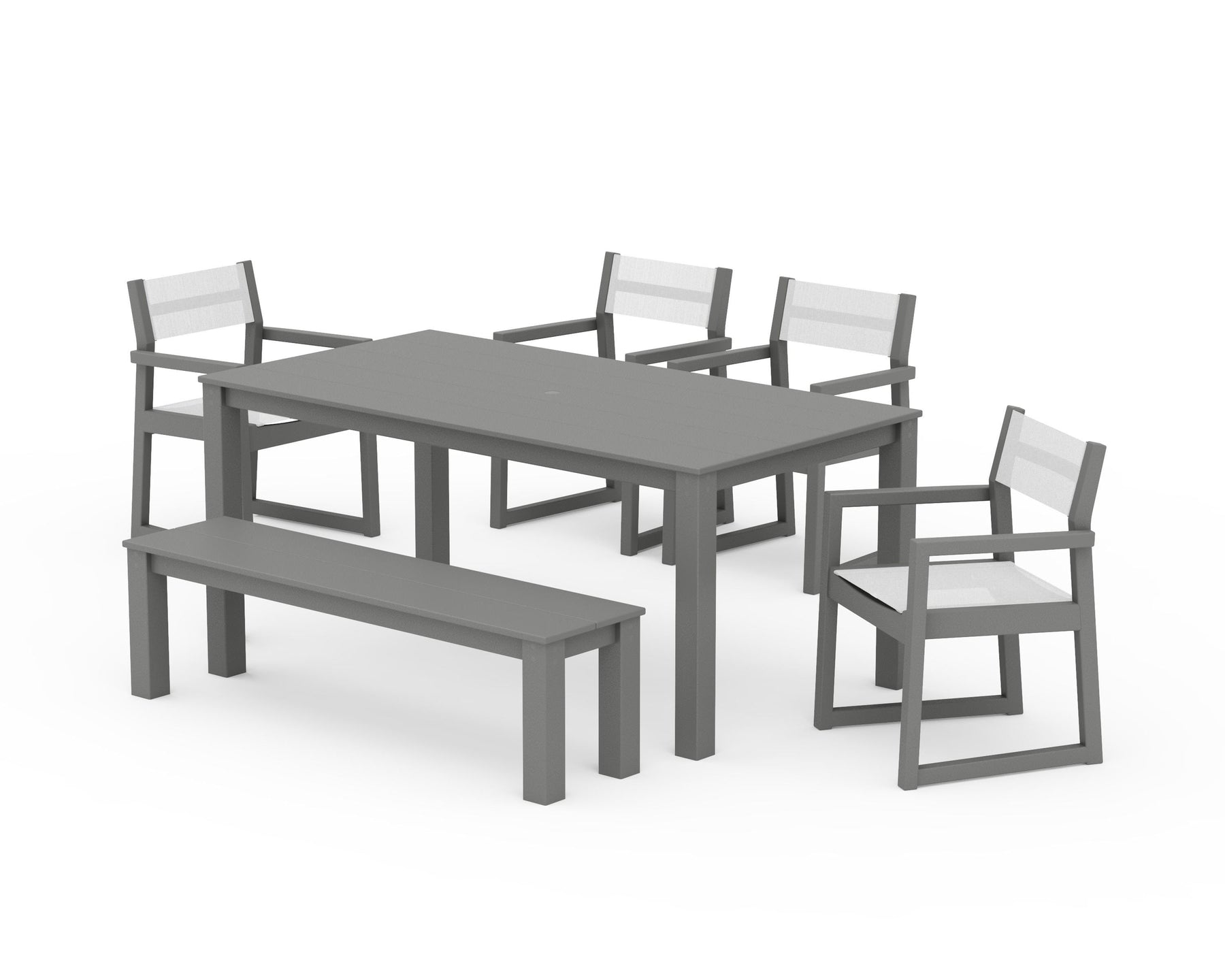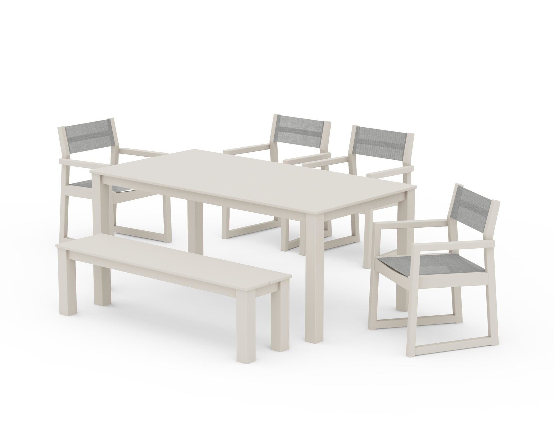 POLYWOOD® EDGE Sling Arm Chair 6-Piece Parsons Dining Set with Bench