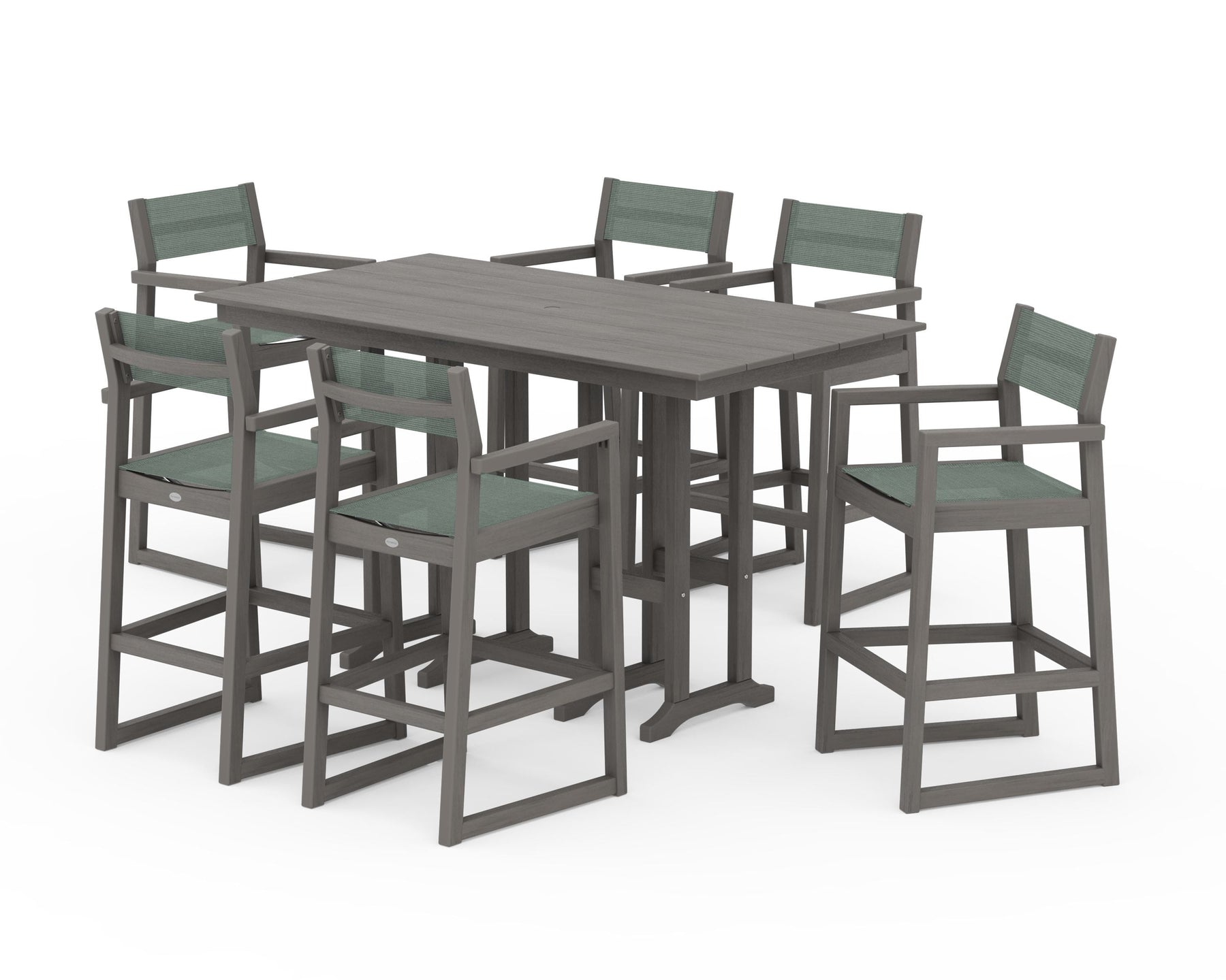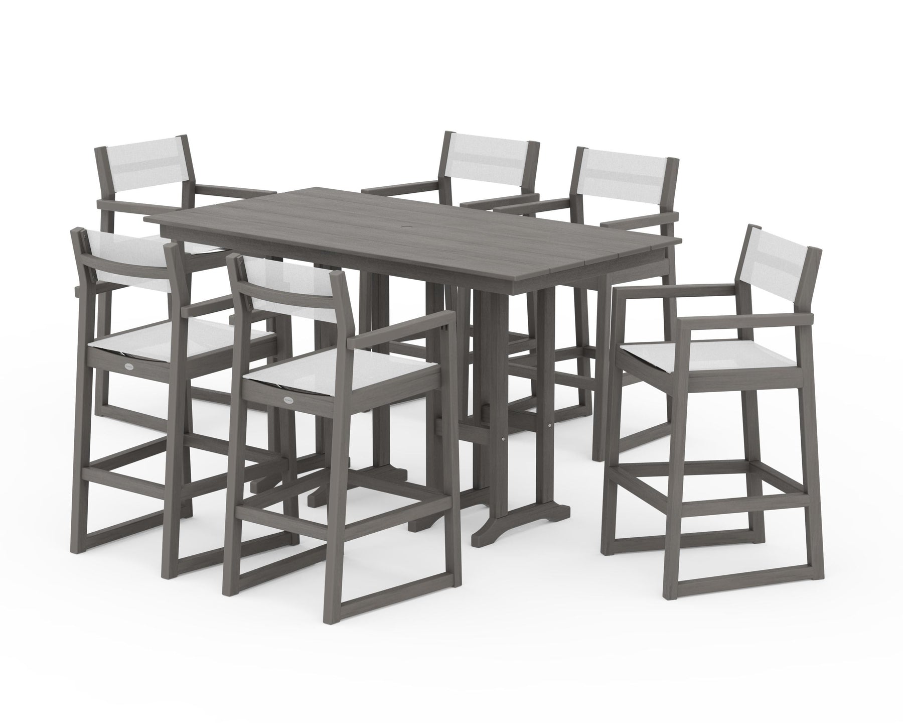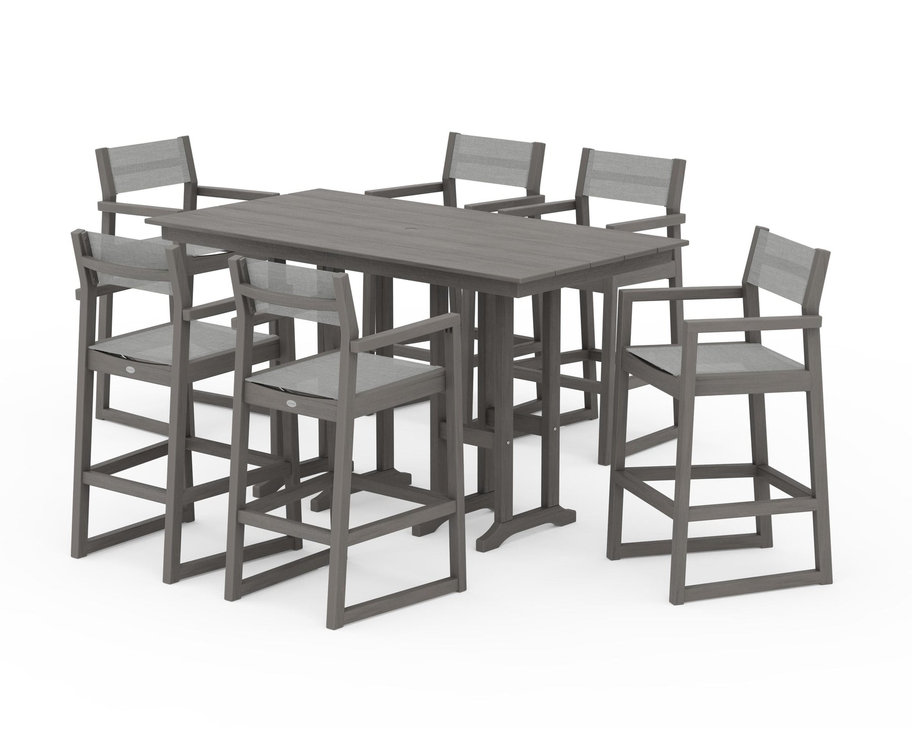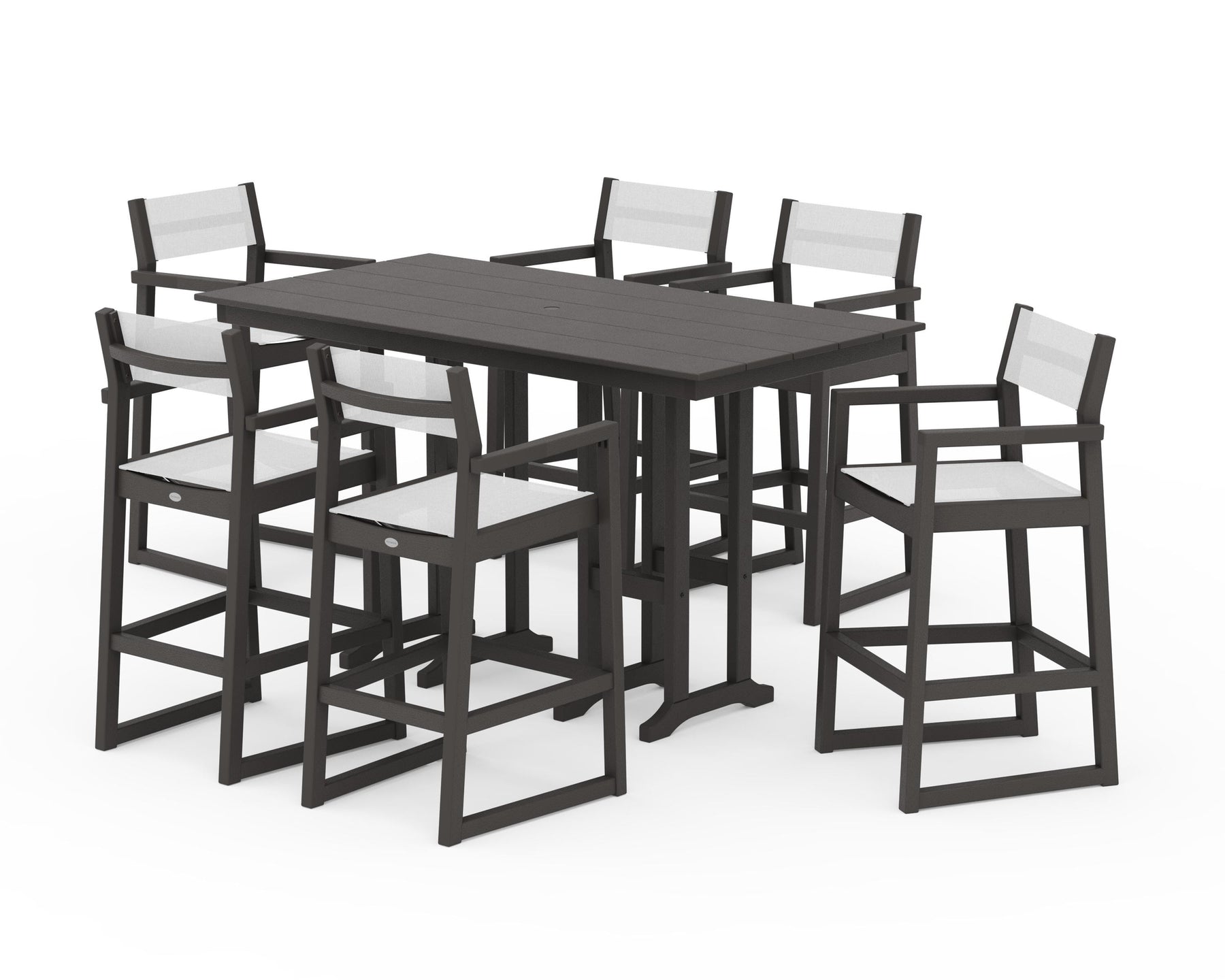 POLYWOOD® EDGE Sling Arm Chair 7-Piece Farmhouse Bar Set