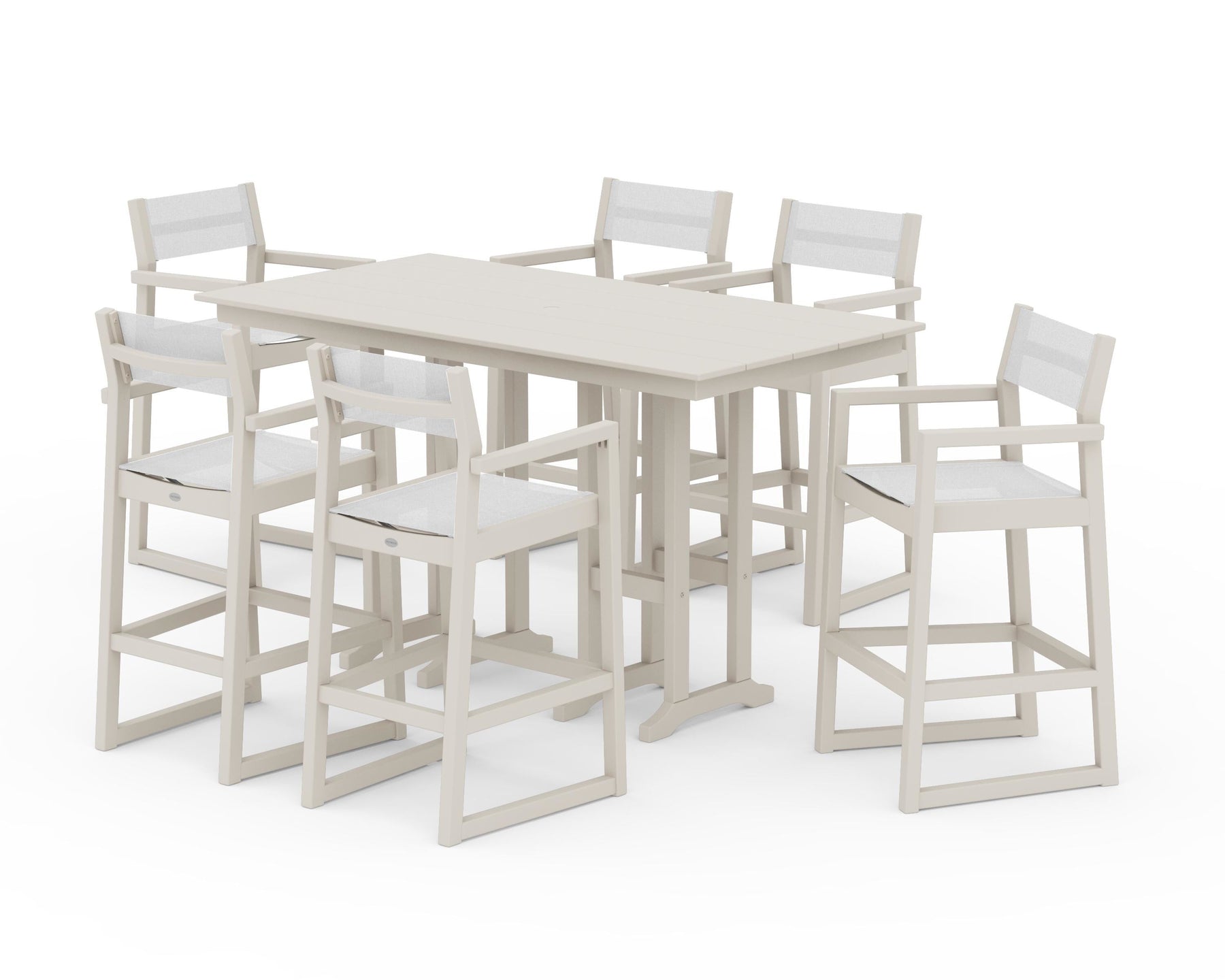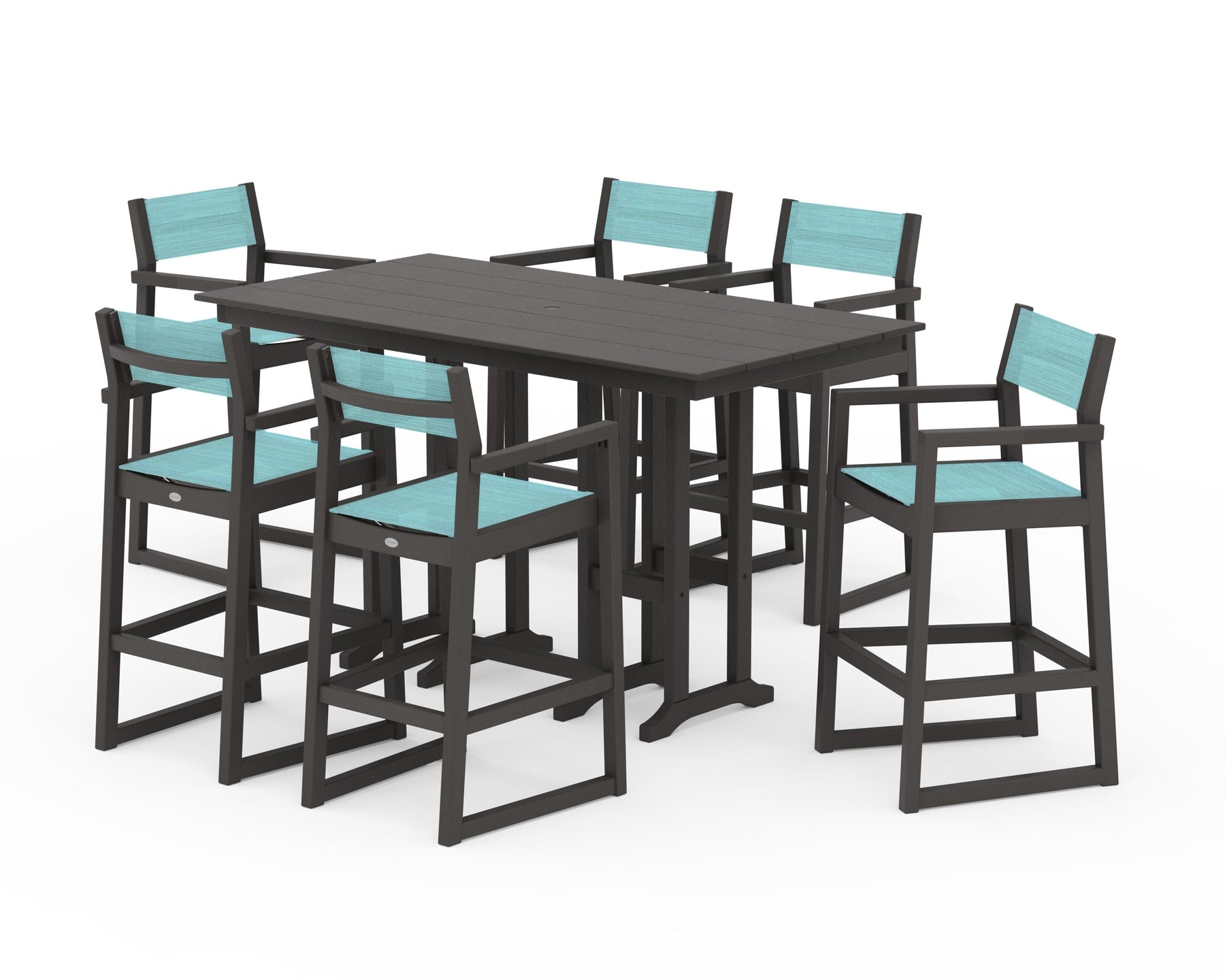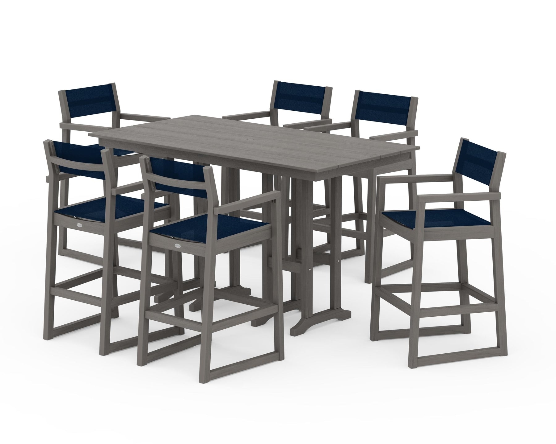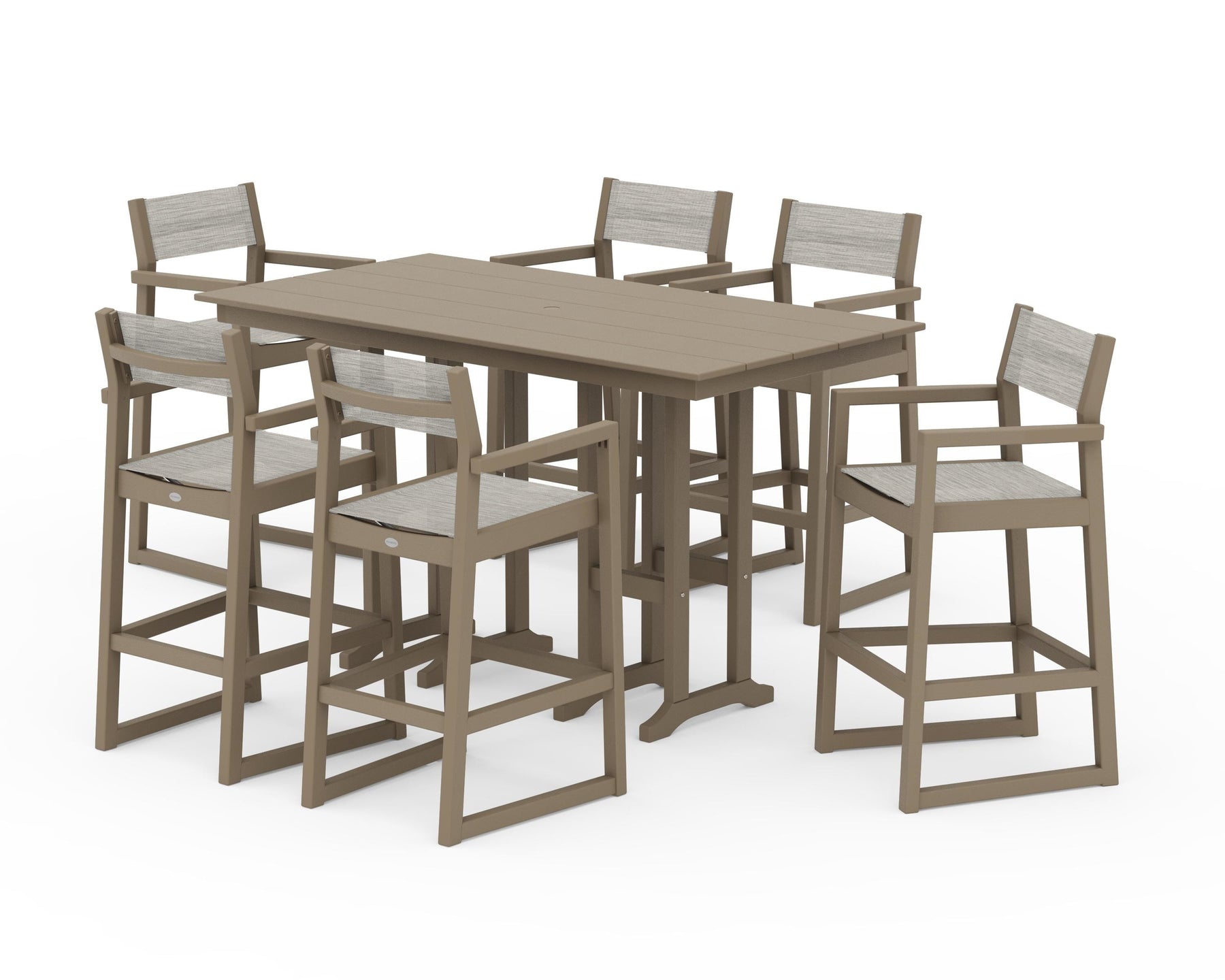 POLYWOOD® EDGE Sling Arm Chair 7-Piece Farmhouse Bar Set