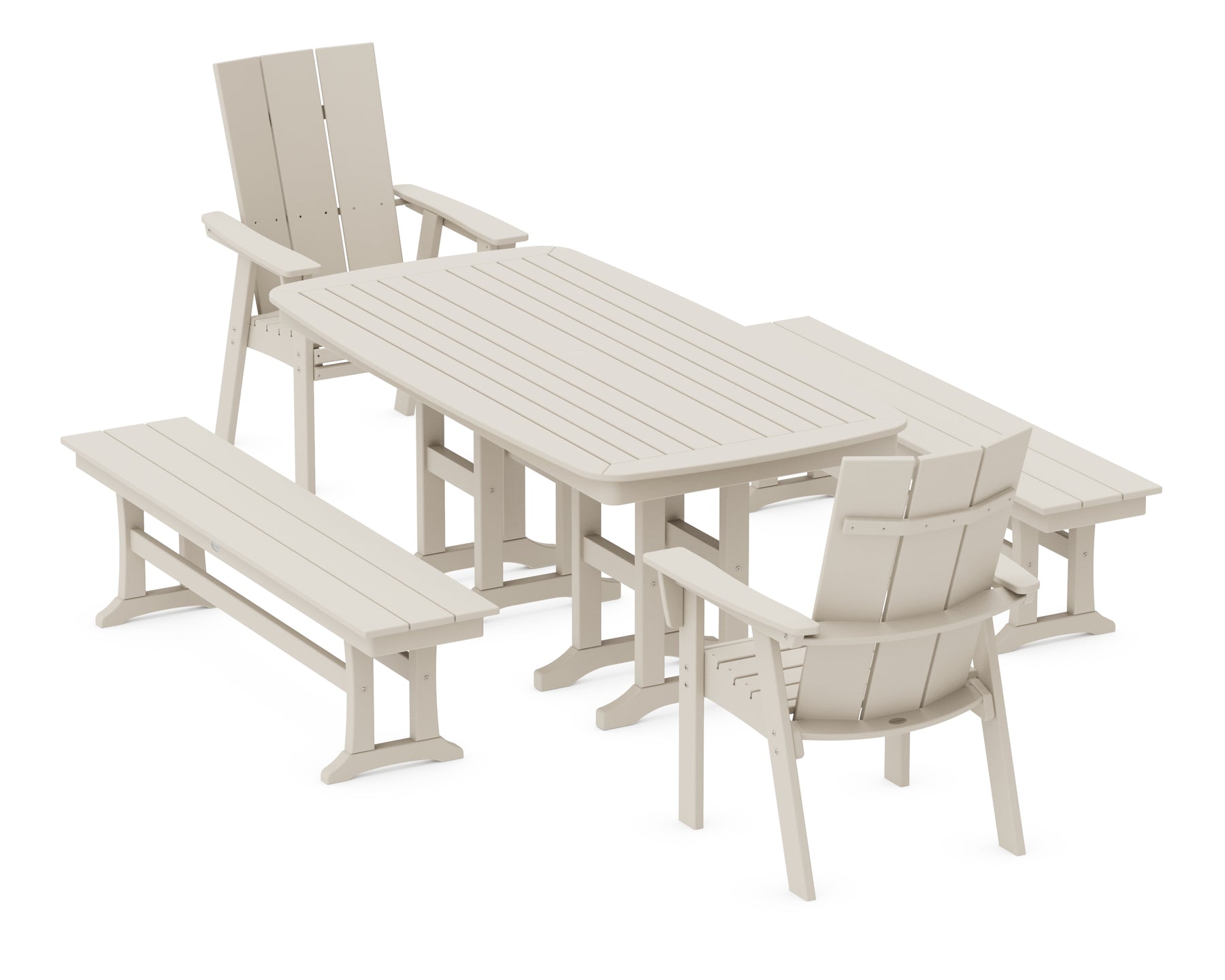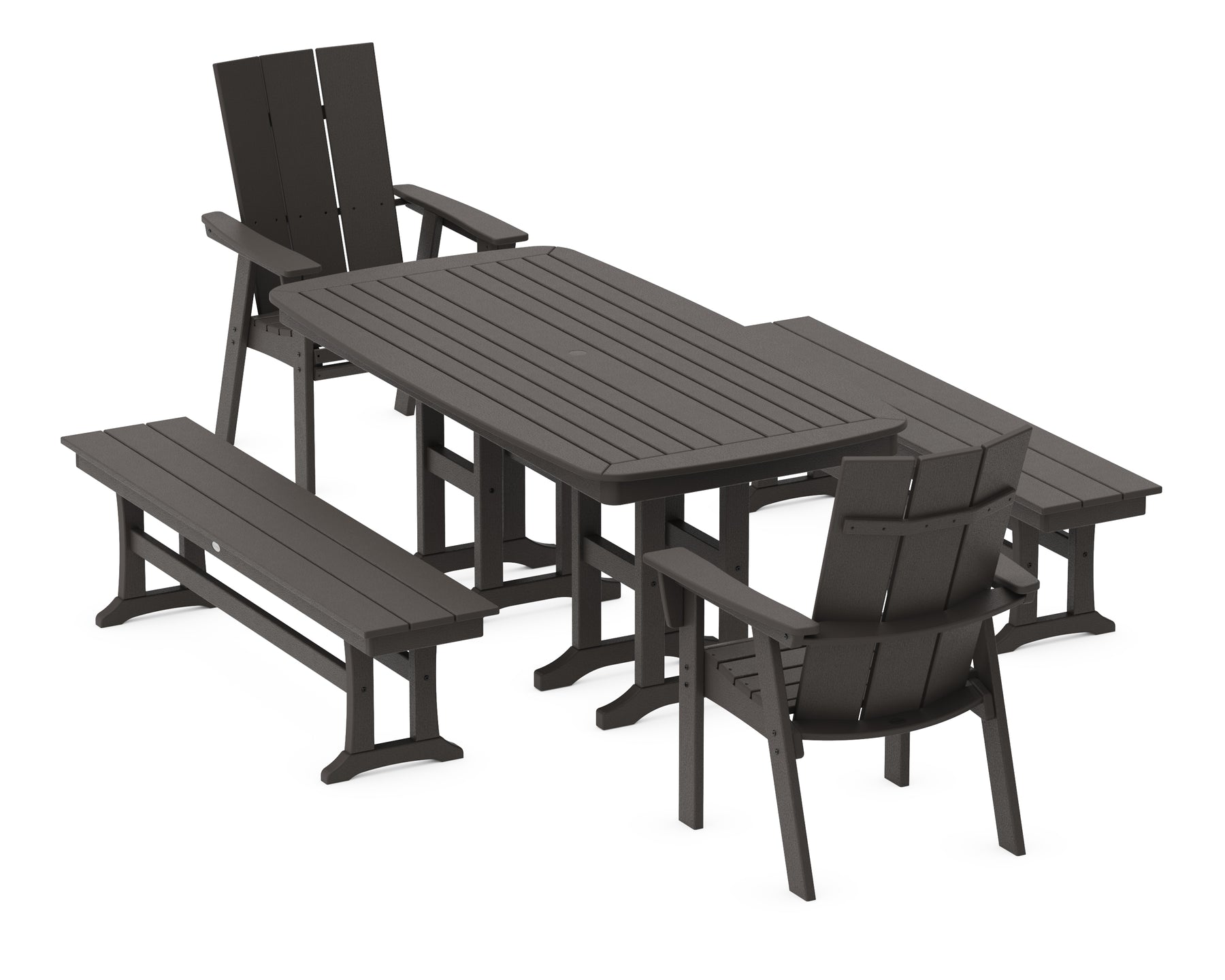 POLYWOOD® Modern Curveback Adirondack 5-Piece Dining Set with Benches
