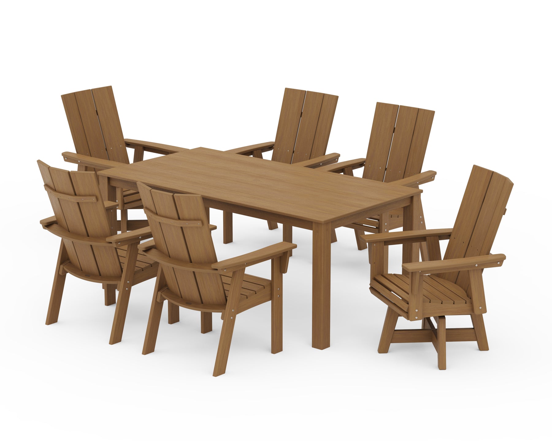 POLYWOOD® Modern Curveback Adirondack 7-Piece Parsons Swivel Dining Set