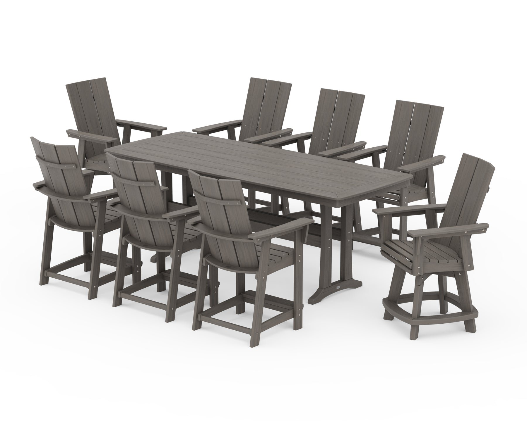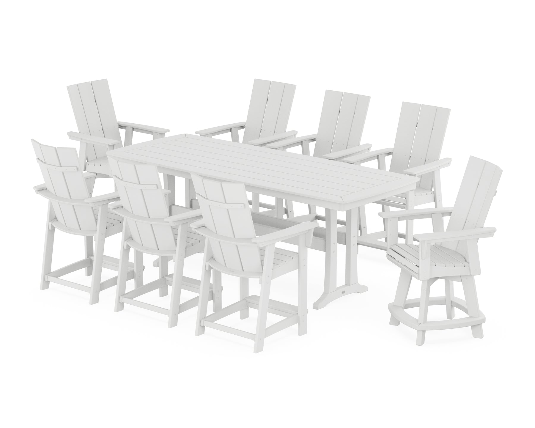 POLYWOOD® Modern Curveback Adirondack Swivel 9-Piece Counter Set with Trestle Legs