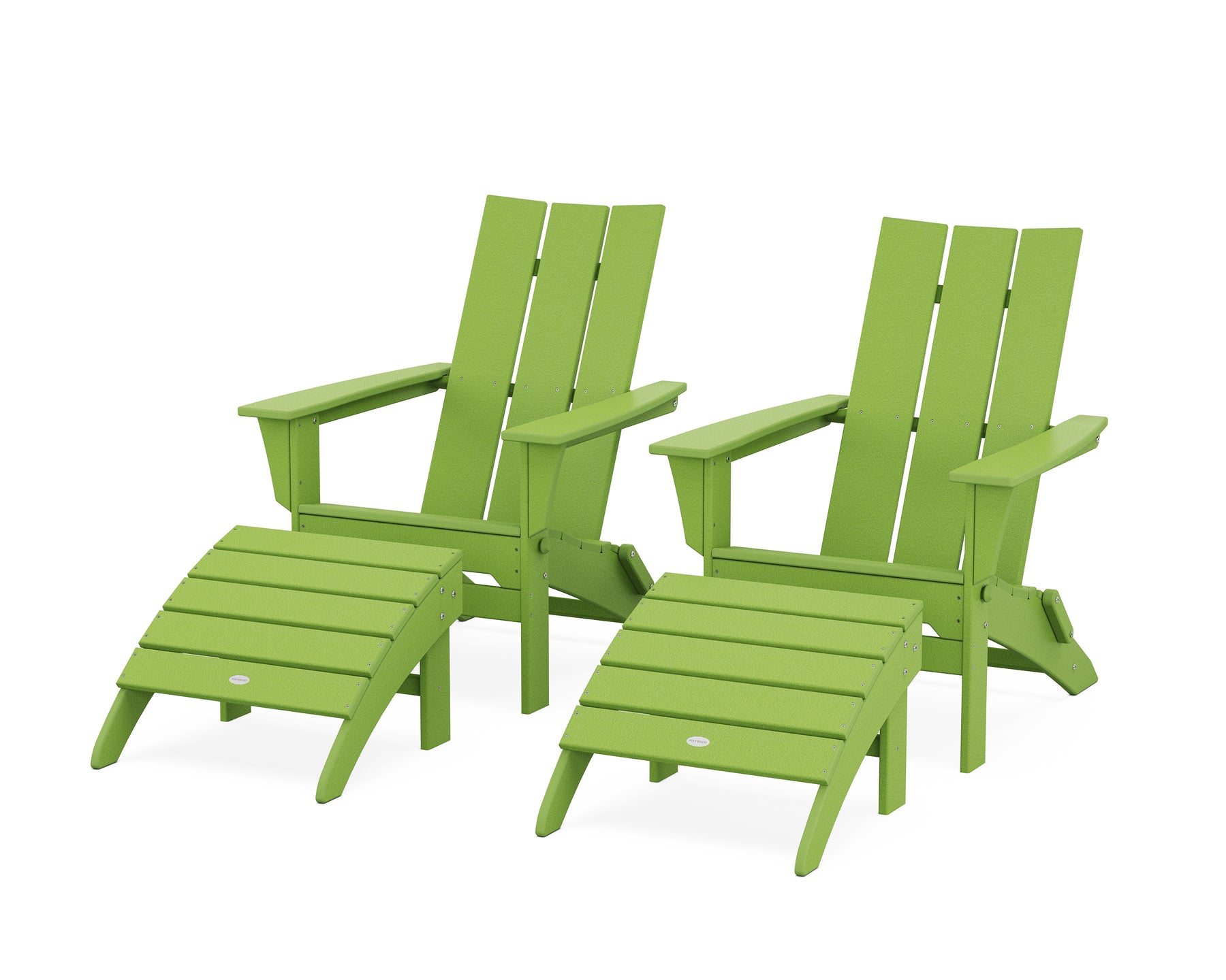 POLYWOOD® Modern Folding Adirondack Chair 4-Piece Set with Ottomans