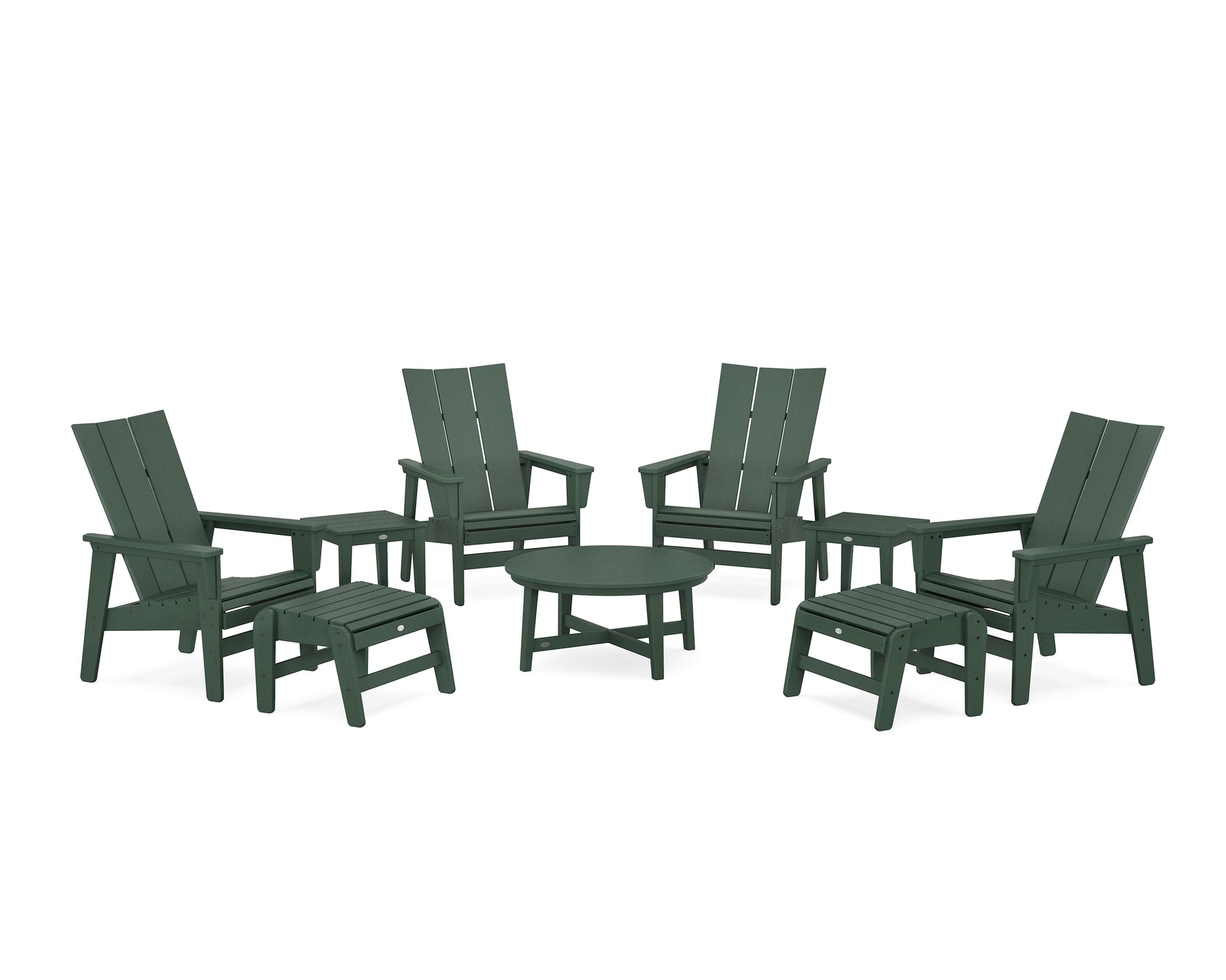 POLYWOOD® Modern Grand Upright Adirondack 9-Piece Conversation Set
