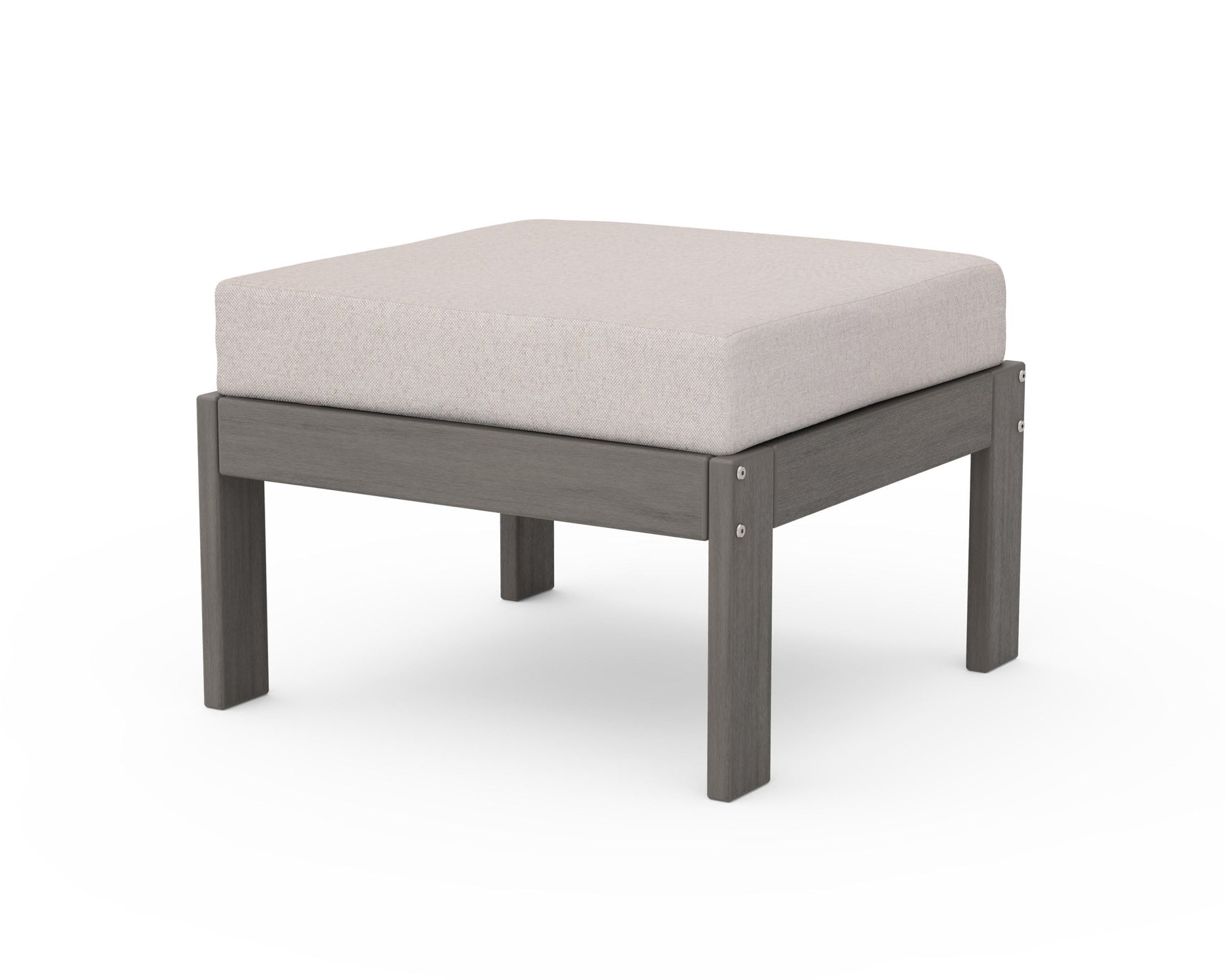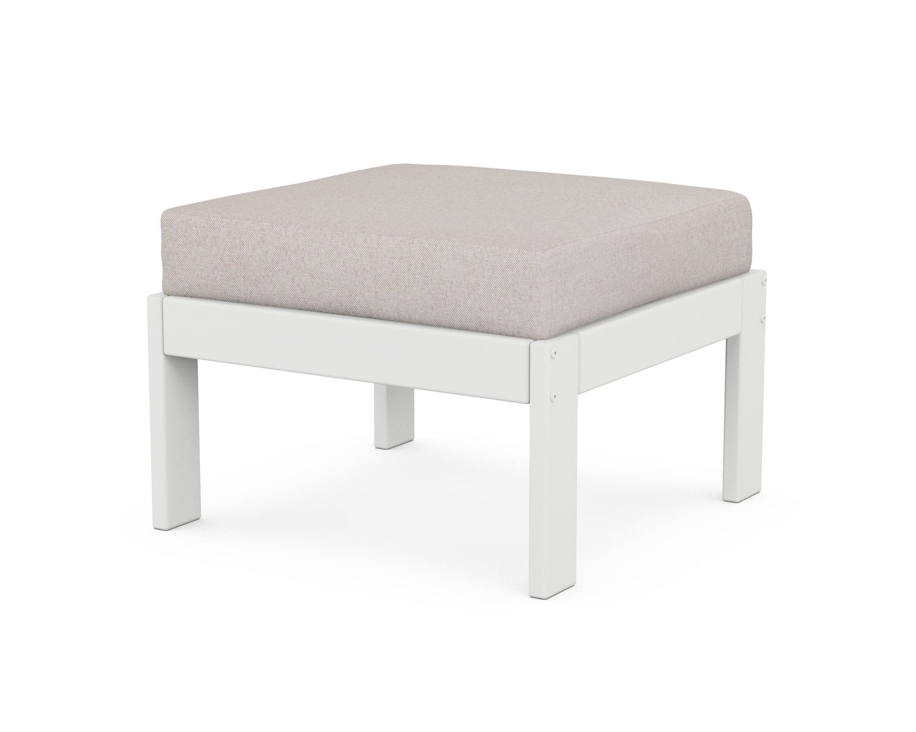 Get ready for head-to-toe comfort with the Vineyard Modular Ottoman. This all-weather ottoman features a supportive cushion that's covered in soft all-weather performance fabric that fits perfectly onto a durable frame that's constructed from genuine POLYWOOD lumber. This ottoman can be part of a deep seating sectional when you connect it with coordinating deep seating pieces from the Vineyard Collection.