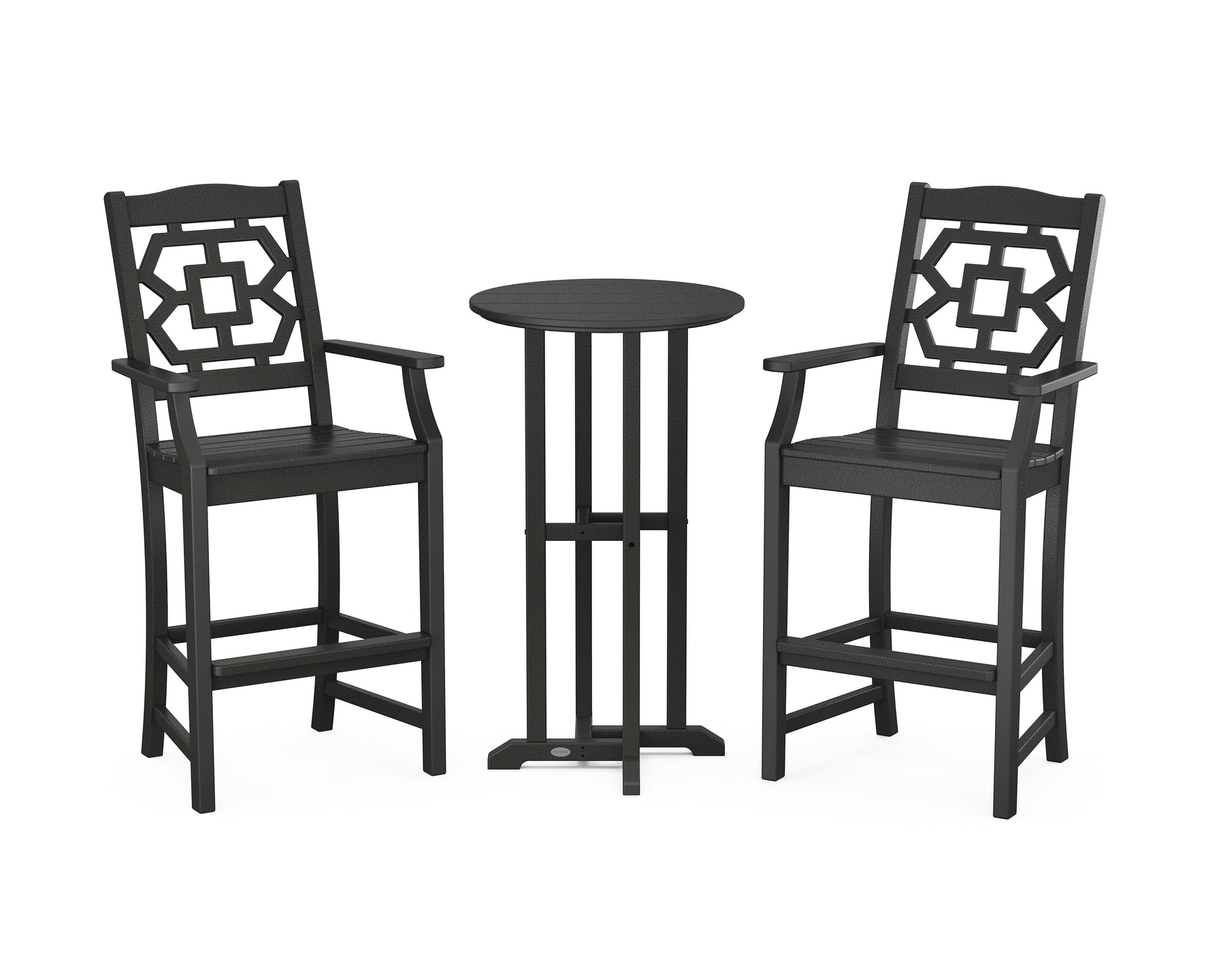 • Set includes (2) Chinoiserie Bar Arm Chairs and (1) 24" Round Farmhouse Bar Bistro Table