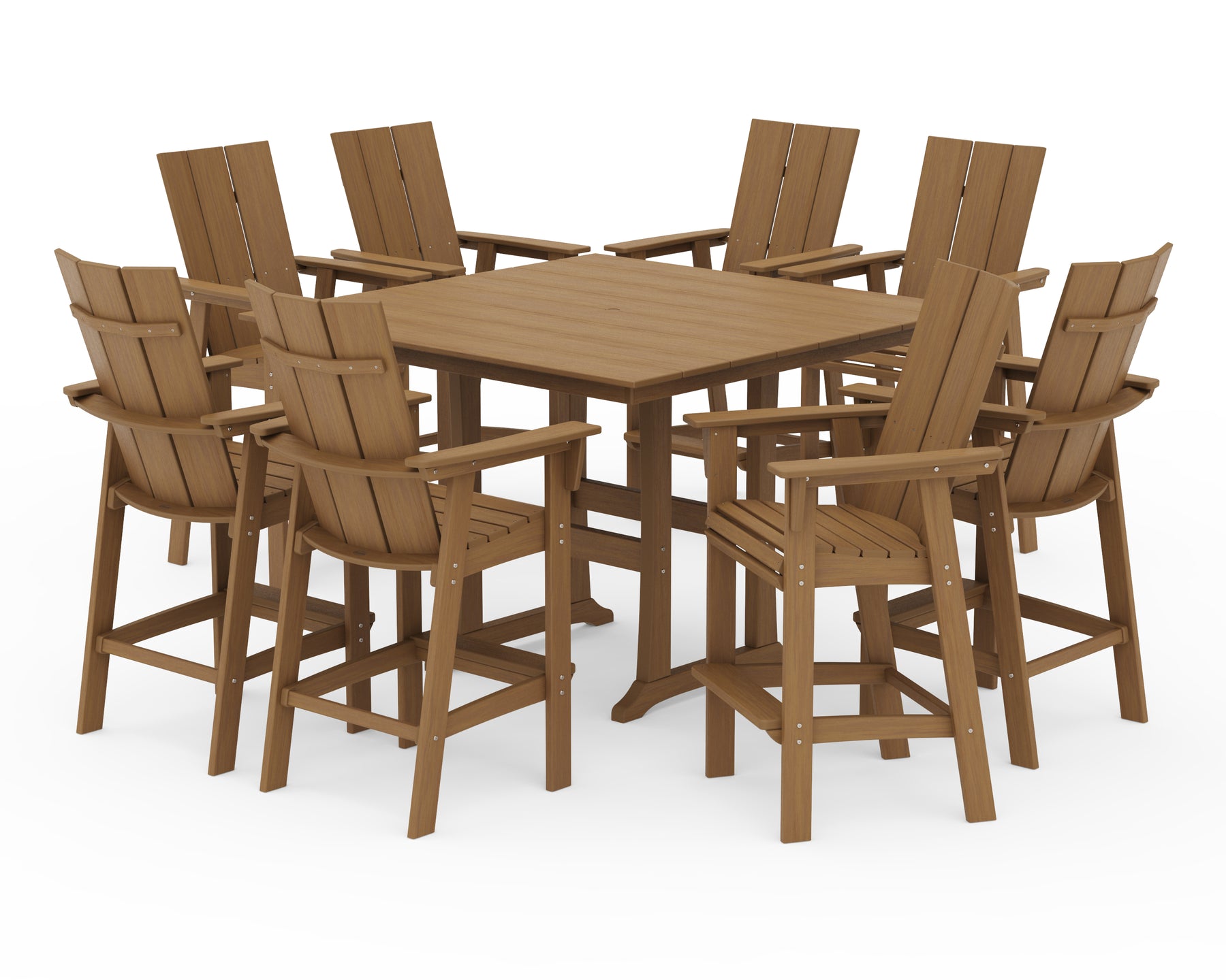 POLYWOOD® Modern Curveback Adirondack 9-Piece Farmhouse Trestle Bar Set