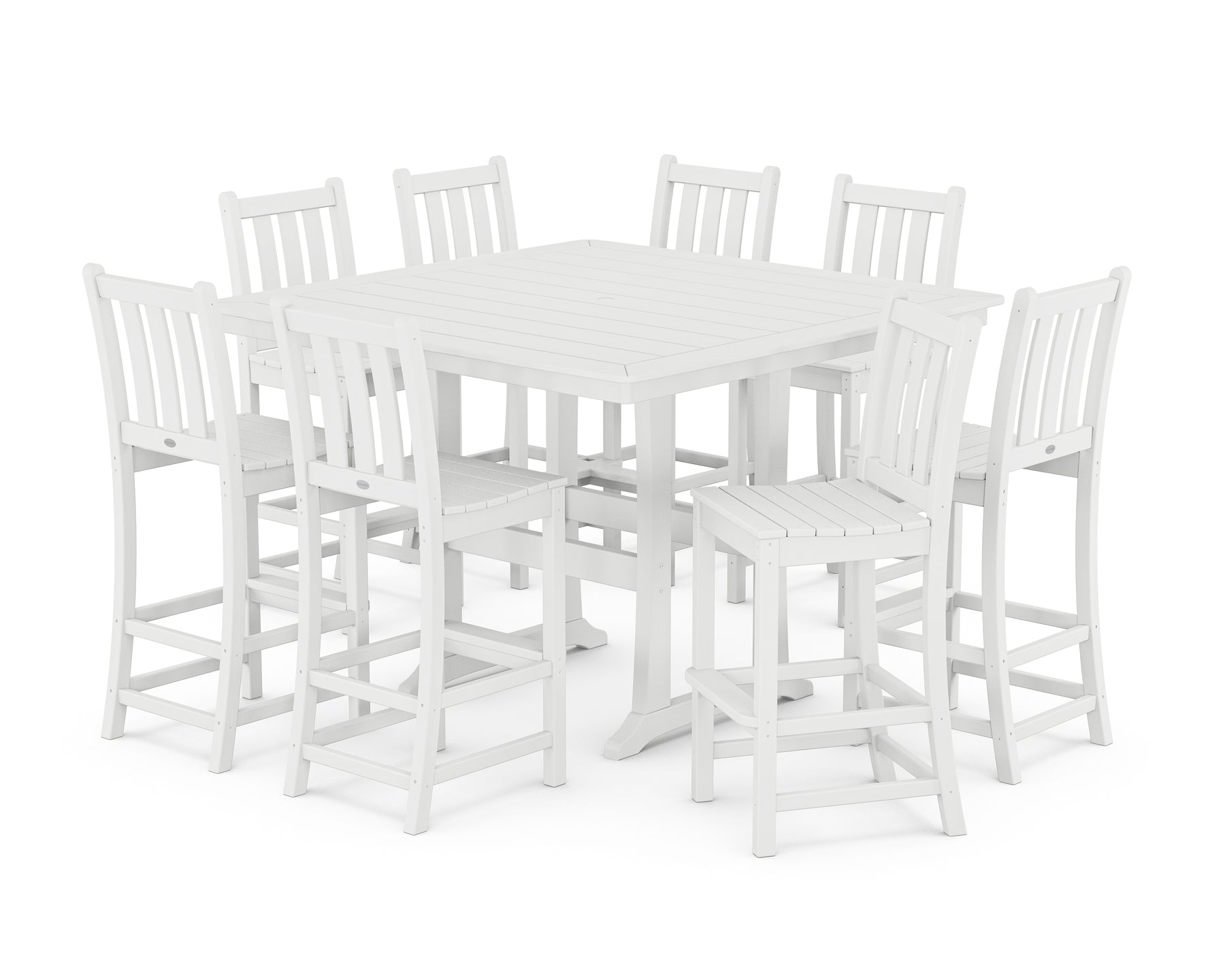 POLYWOOD® Traditional Garden 9-Piece Nautical Trestle Bar Set