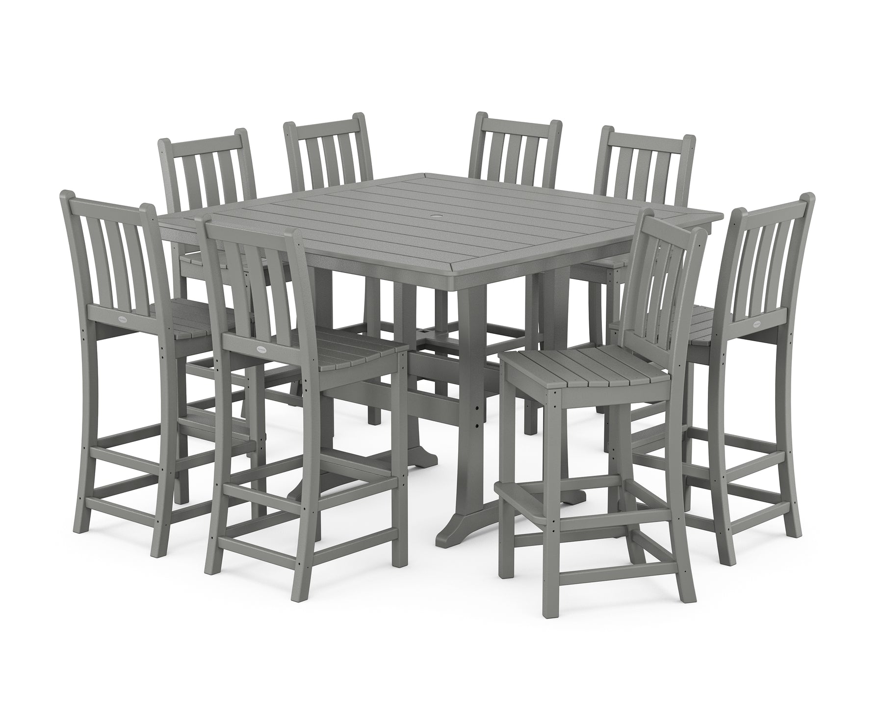 • Includes (8) Traditional Garden Bar Side Chairs and (1) Nautical Trestle 59" Bar Table