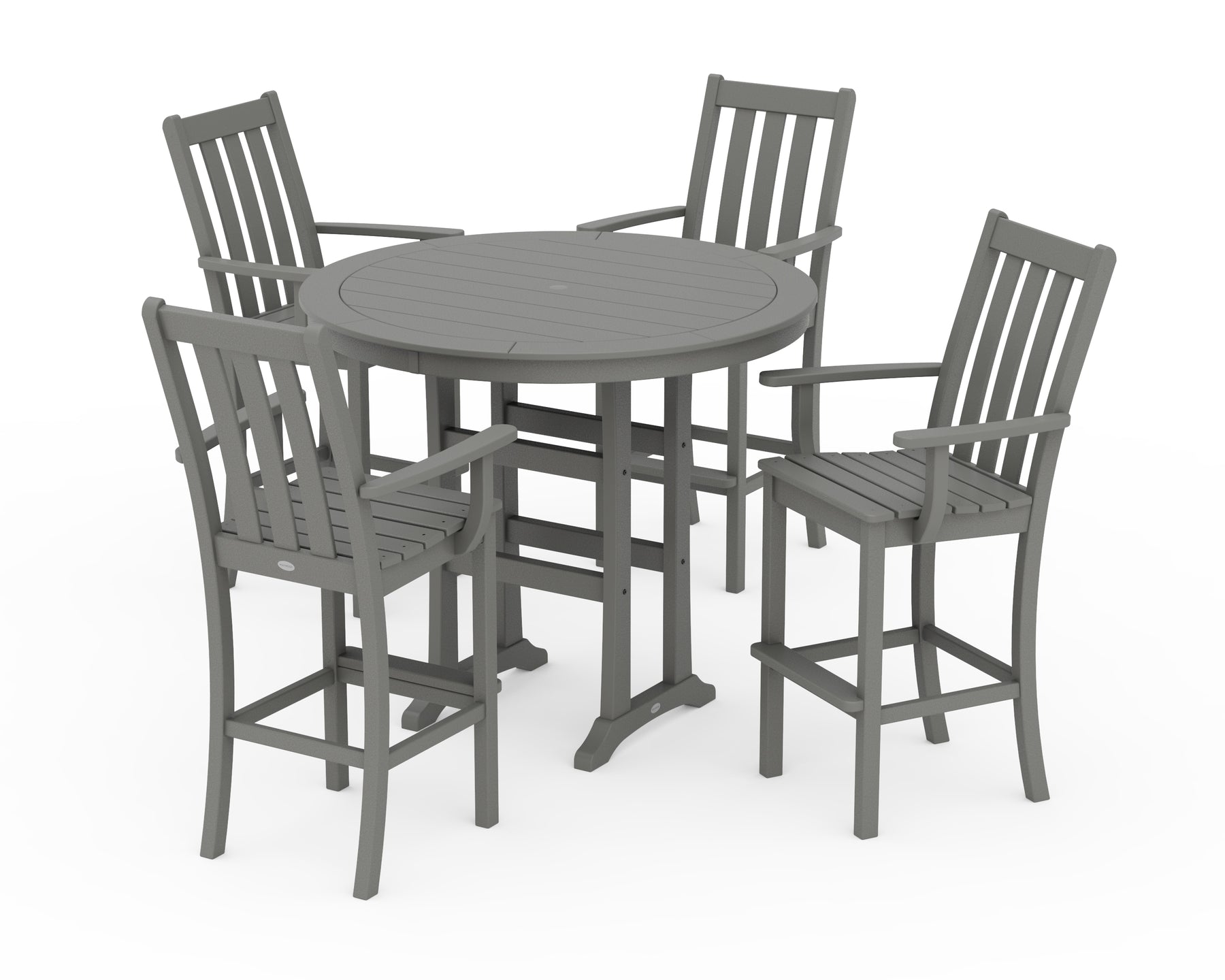 • Set includes (4) Vineyard Bar Arm Chairs and (1) Nautical Trestle 48" Round Bar Table
