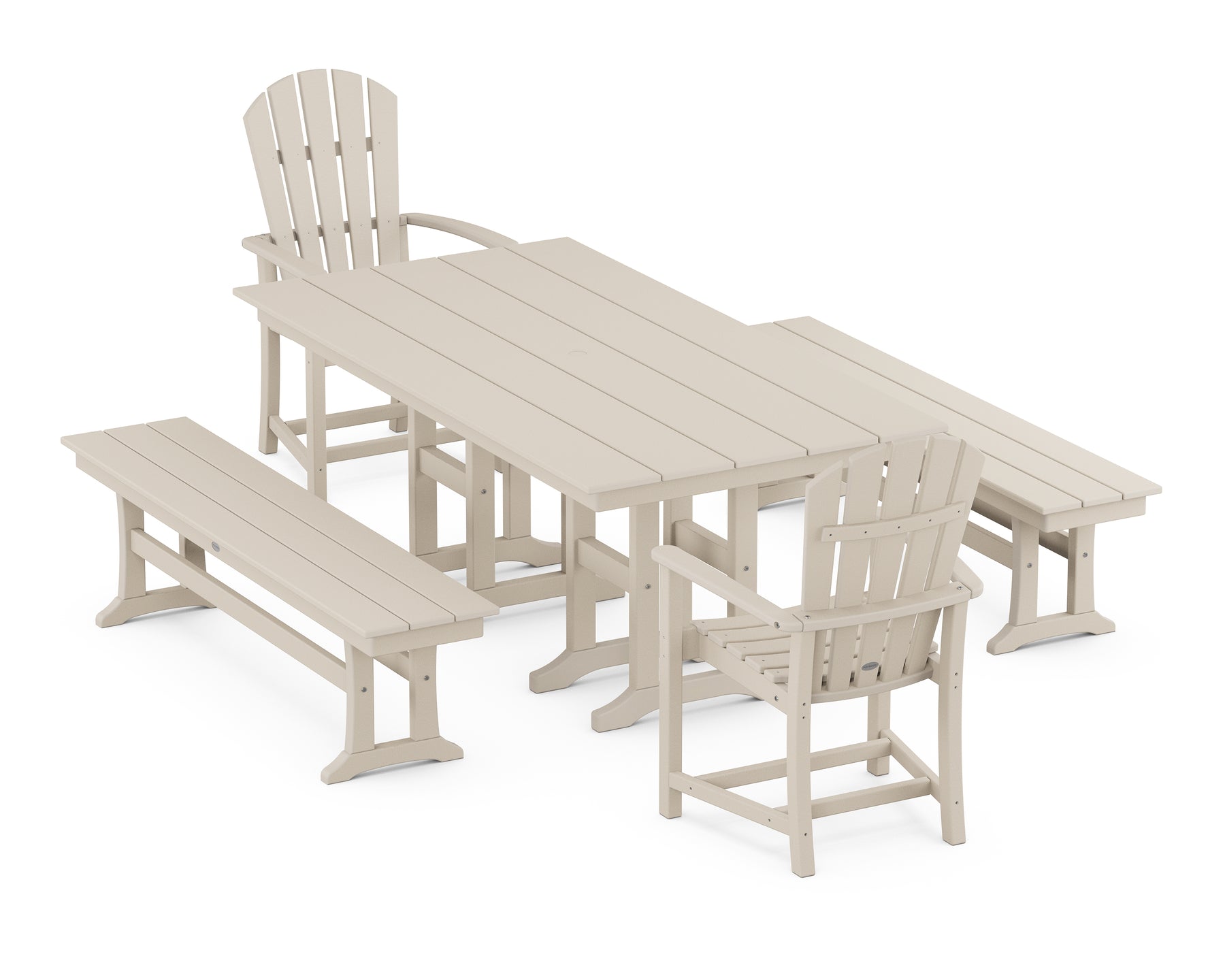 POLYWOOD® Palm Coast 5-Piece Farmhouse Dining Set with Benches
