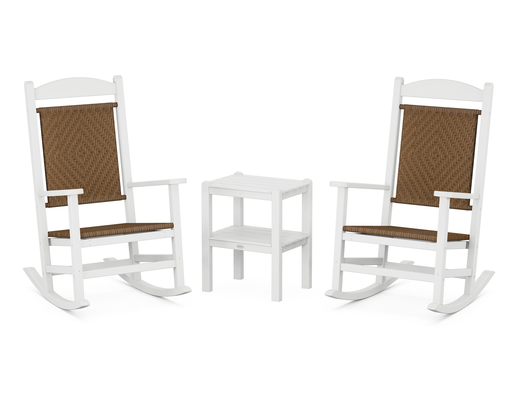 • Set includes (2) Presidential Woven Rockers and (1) Two Shelf Side Table
