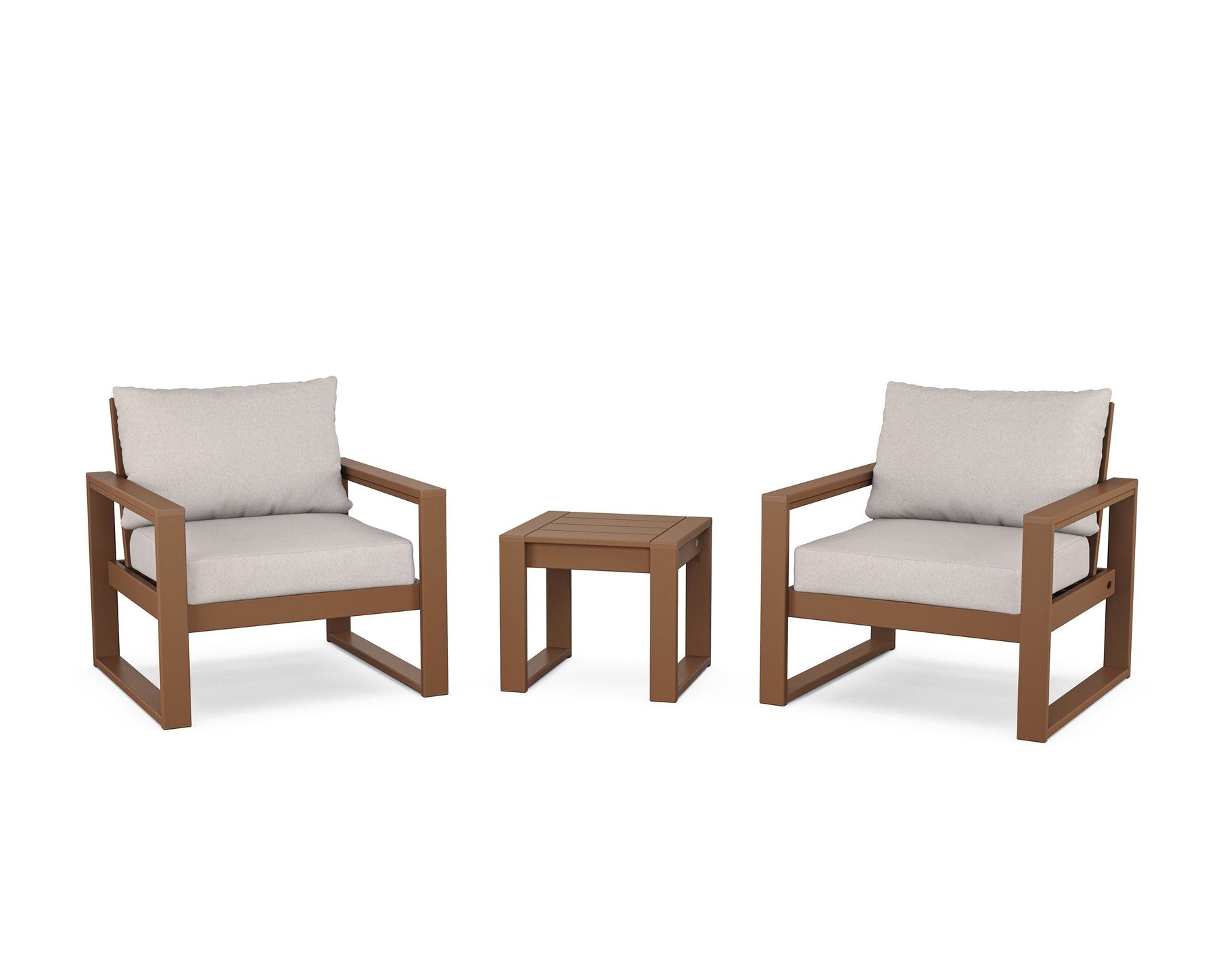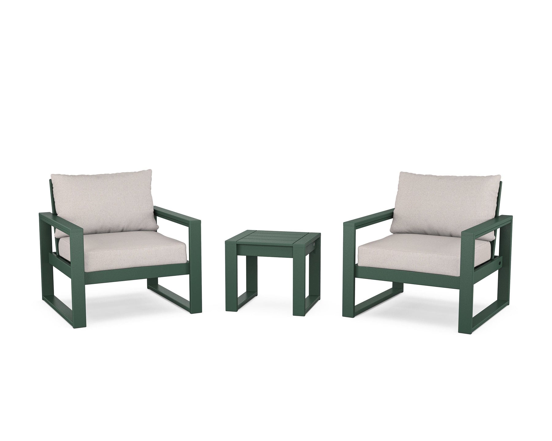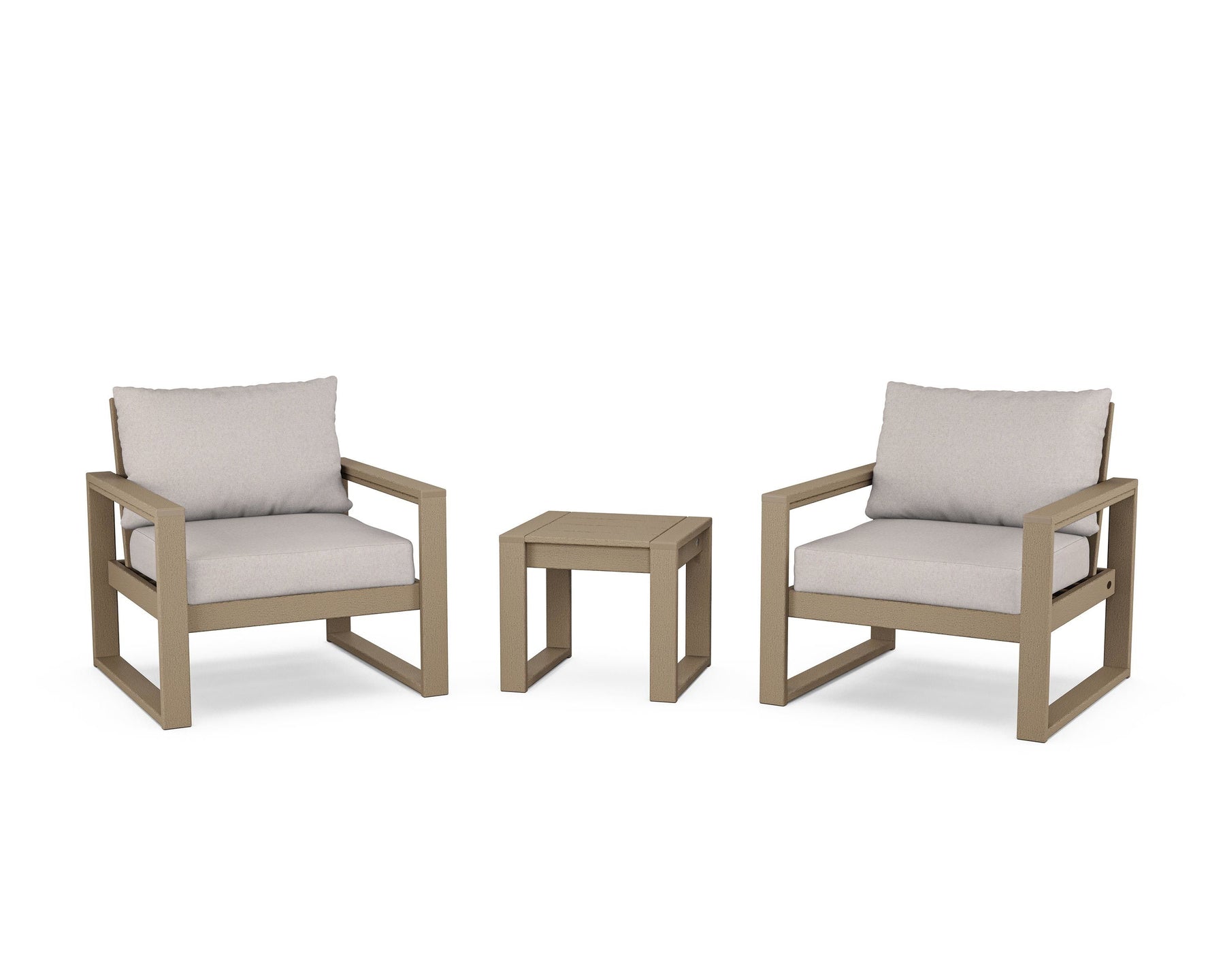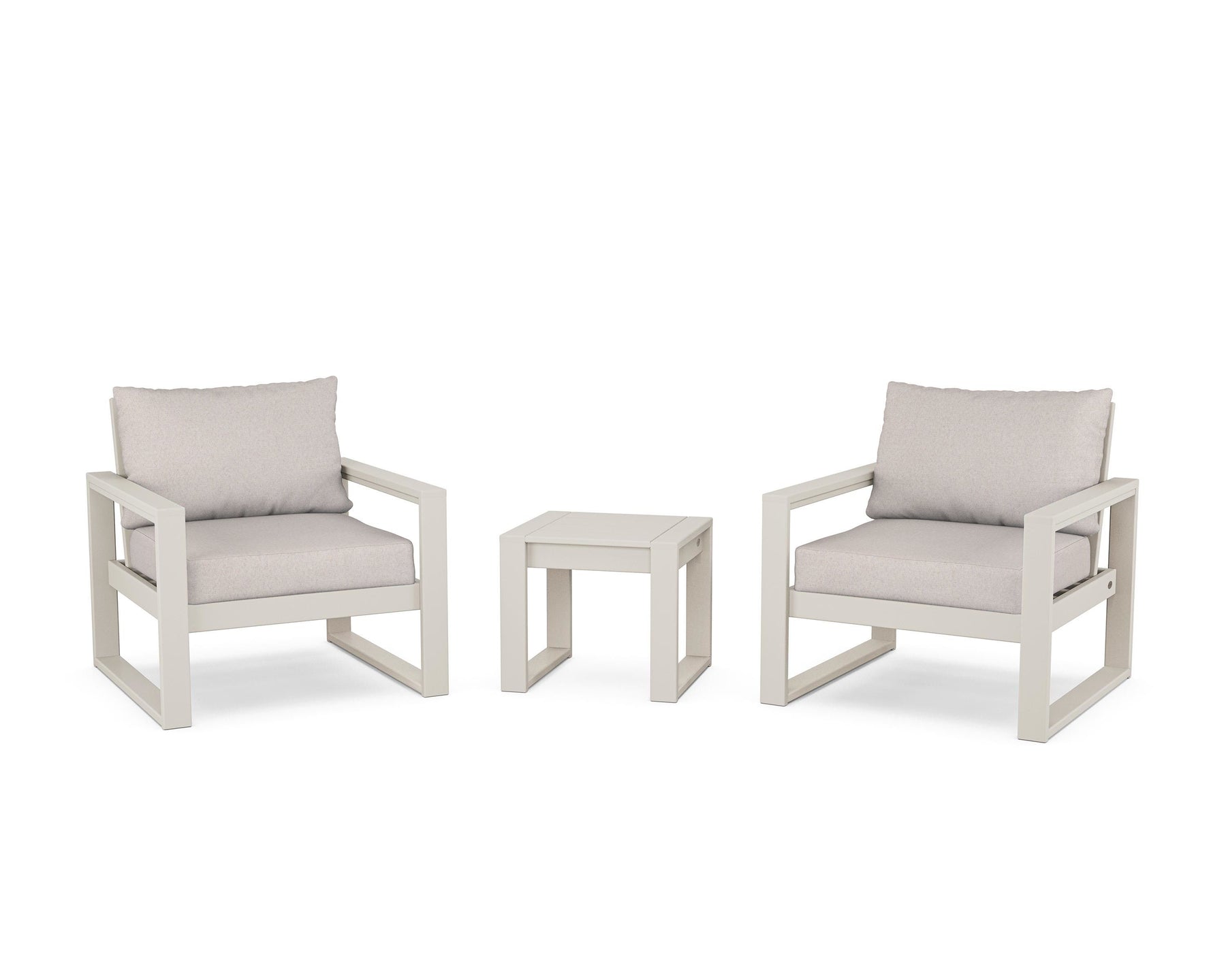 • Designed with the modern home in mind, our EDGE Sectional 3-Piece Deep Seating Set takes shape in clean lines that keep a low profile. The duo of lounge chairs bookends a complementing end table—a chic accessory to keep a couple of cold brews or cocktails close. Invite family to settle into the plush cushions, tailored in your choice of all-weather performance fabric, and lounge like you mean it.