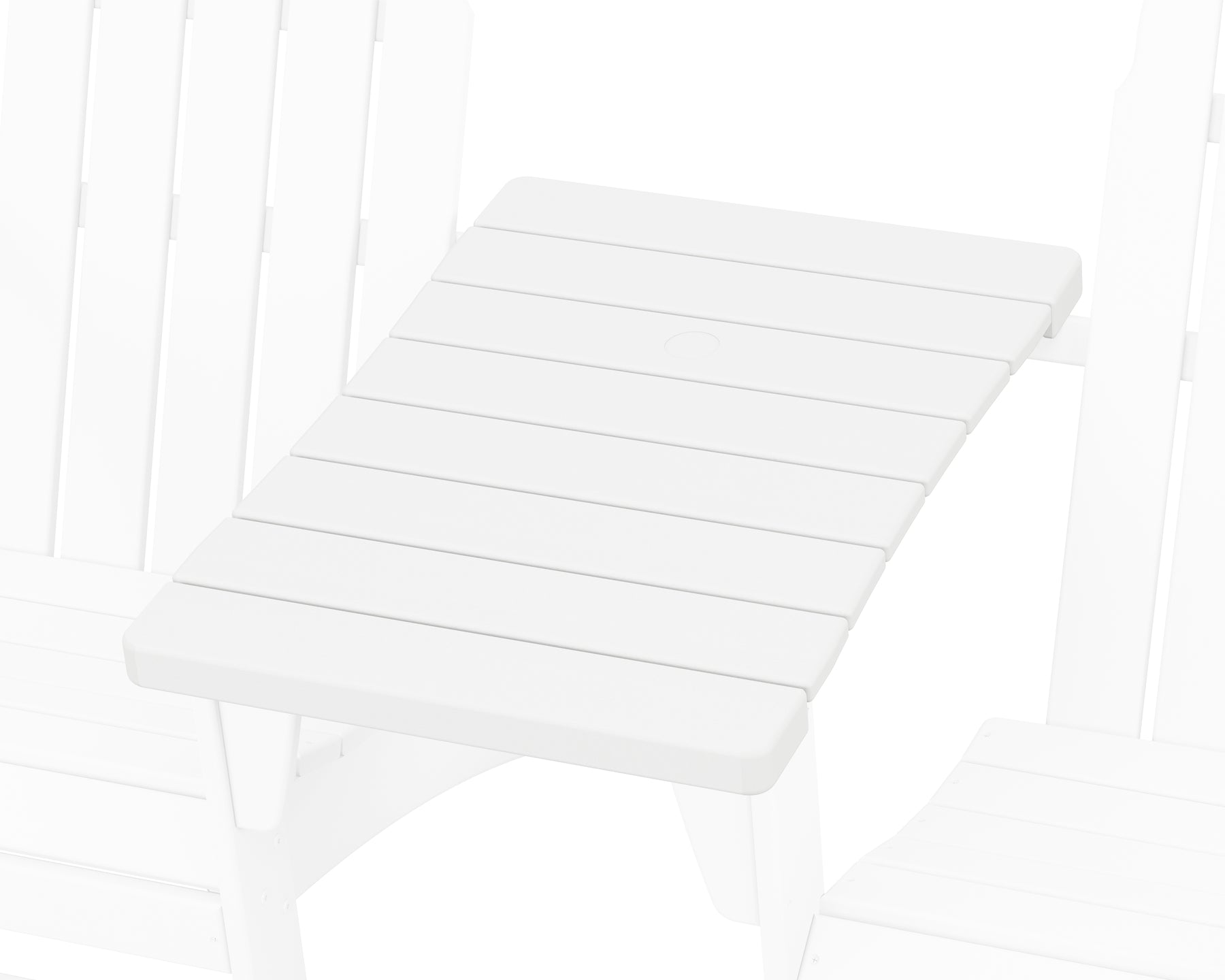 The all-weather 400 Series Straight Adirondack Connecting Table is just the right size for magazines and a bowl of snacks, and it easily attaches to the arms of two POLYWOOD Adirondack chairs. To make this connecting table even more appealing, we've included an umbrella hole so you have the option to sit in the sun or shade.