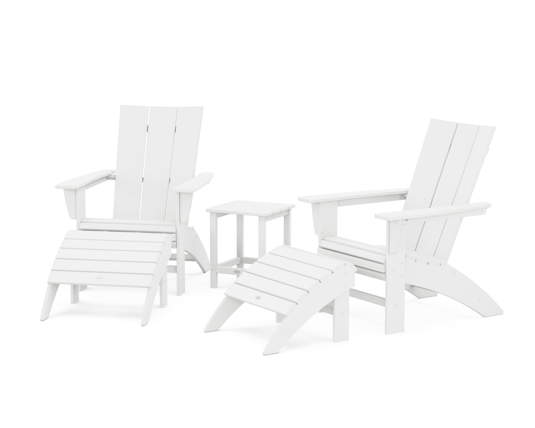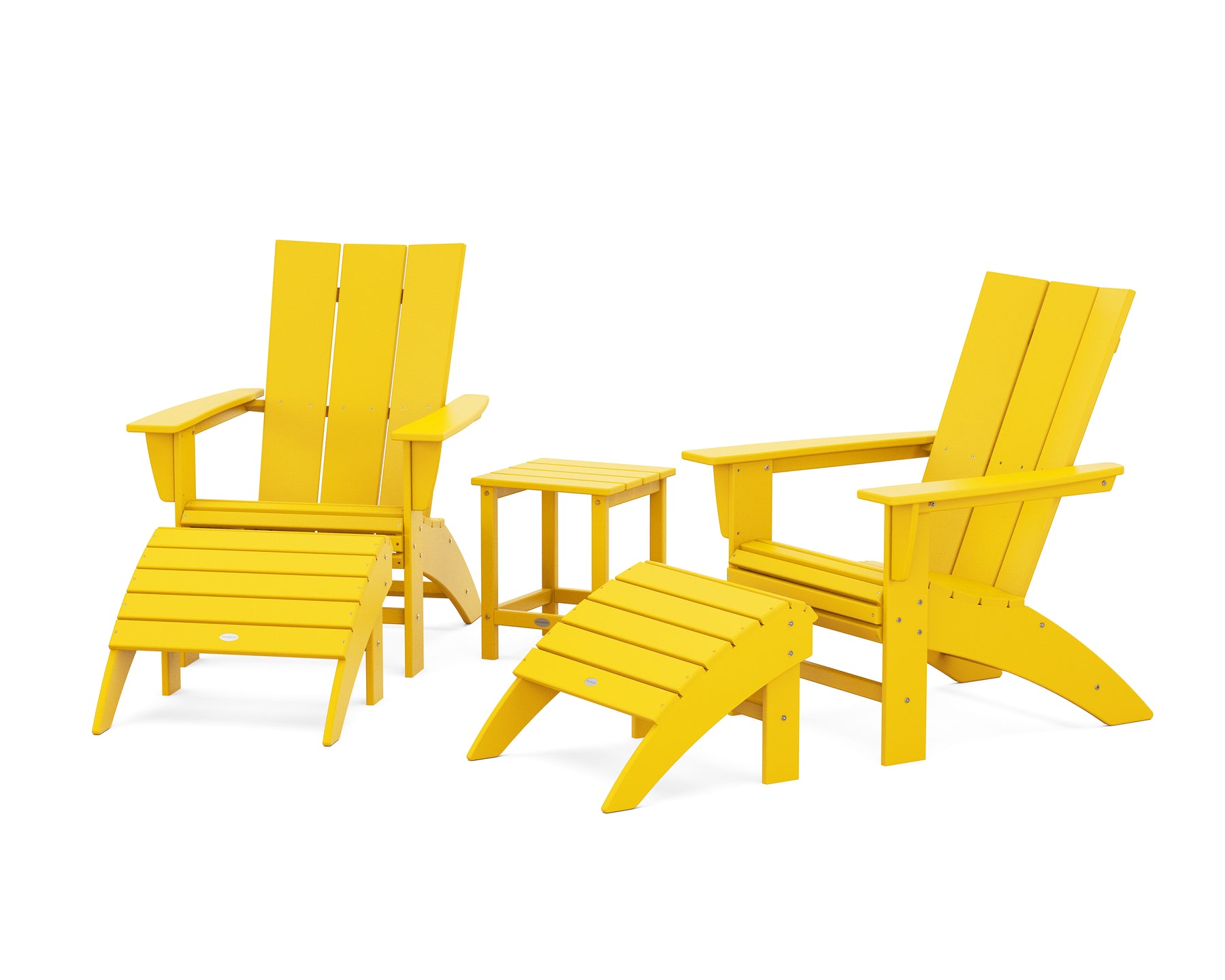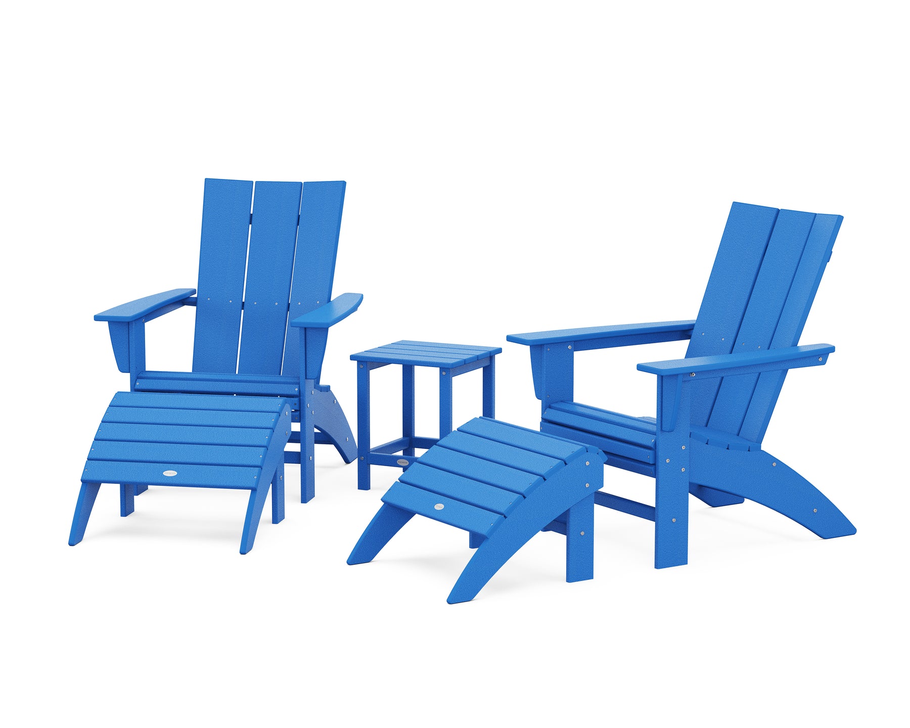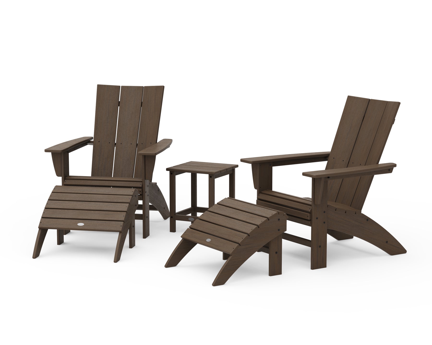 POLYWOOD® Modern Curveback Adirondack Chair 5-Piece Set with Ottomans and 18" Side Table